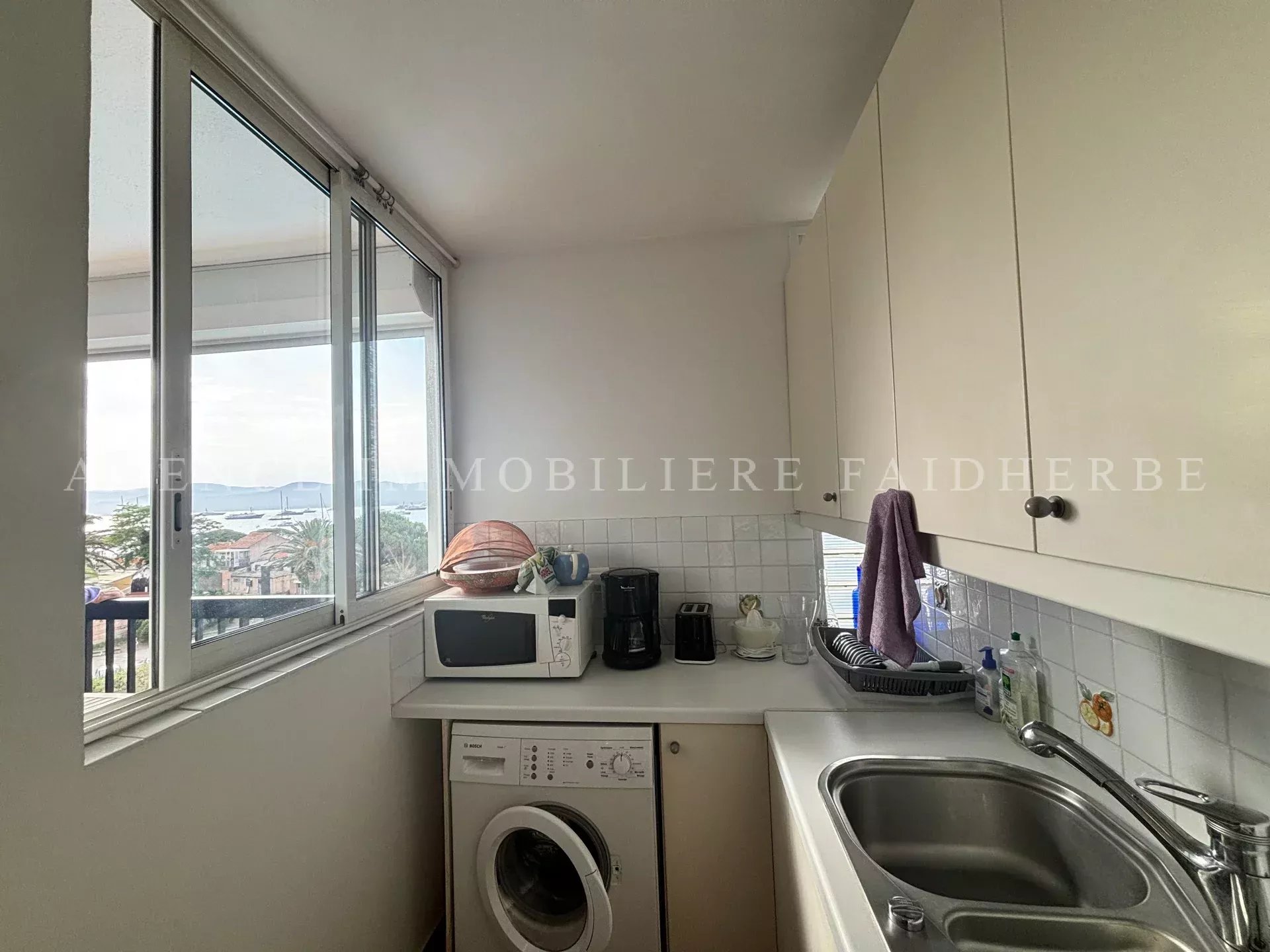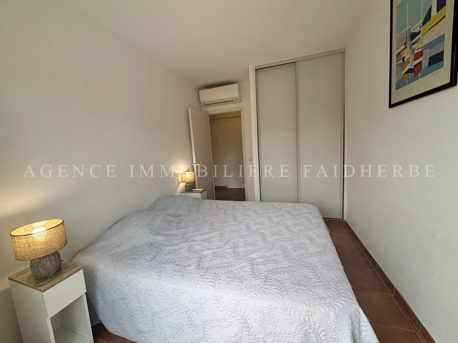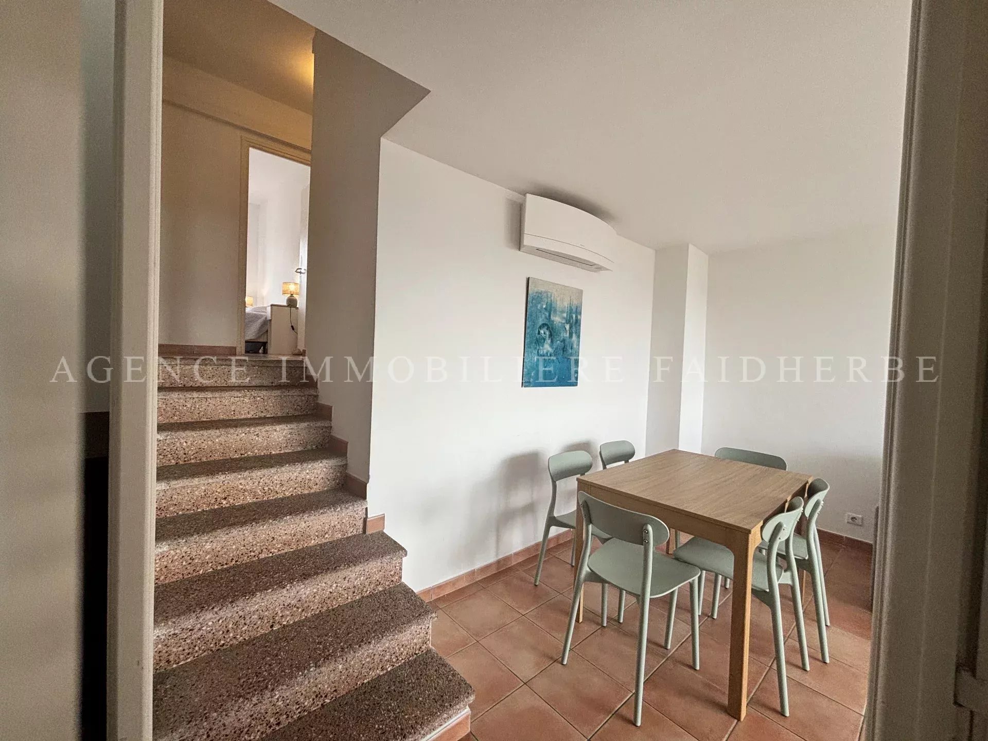 In una residenza vicina al centro, questo appartamento su due livelli è situato all'ultimo piano di una residenza con piscina, accessibile tramite ascensore. È composto da due camere con terrazza, un bagno con doccia e un pianerottolo con armadi a muro. Al primo livello, troverete una cucina attrezzata, così come un soggiorno/sala da pranzo che si apre su una terrazza con vista mare. L'appartamento è dotato di aria condizionata. È disponibile anche un parcheggio esterno, accessibile con un contrassegno numerato. Tariffe: - Luglio e agosto: 2500 € / settimana - Settembre: 2000 € / settimana Spese: - Spese di pulizia a fine soggiorno: 120 € - Biancheria: 30 € / camera / settimana - Tassa di soggiorno: 6,91 € al giorno per adulto