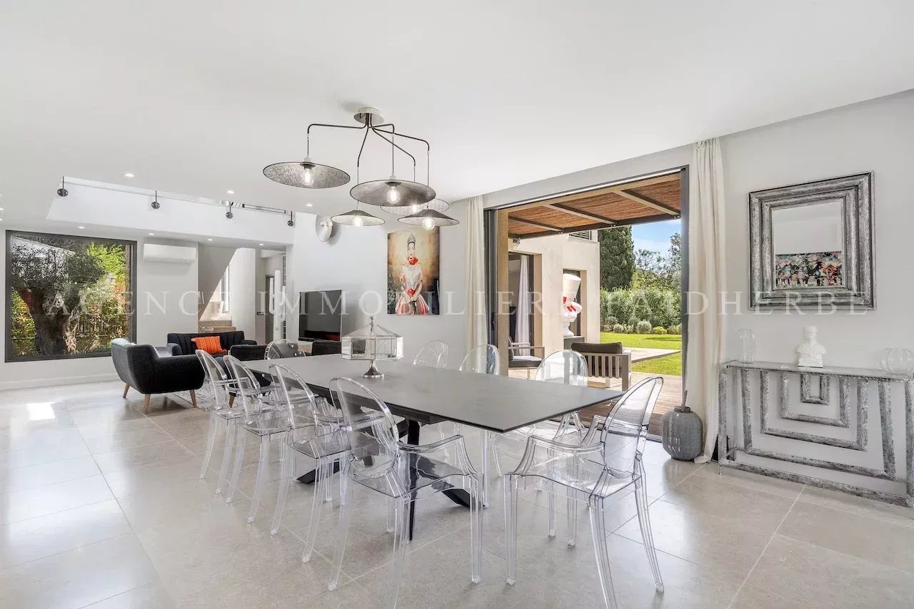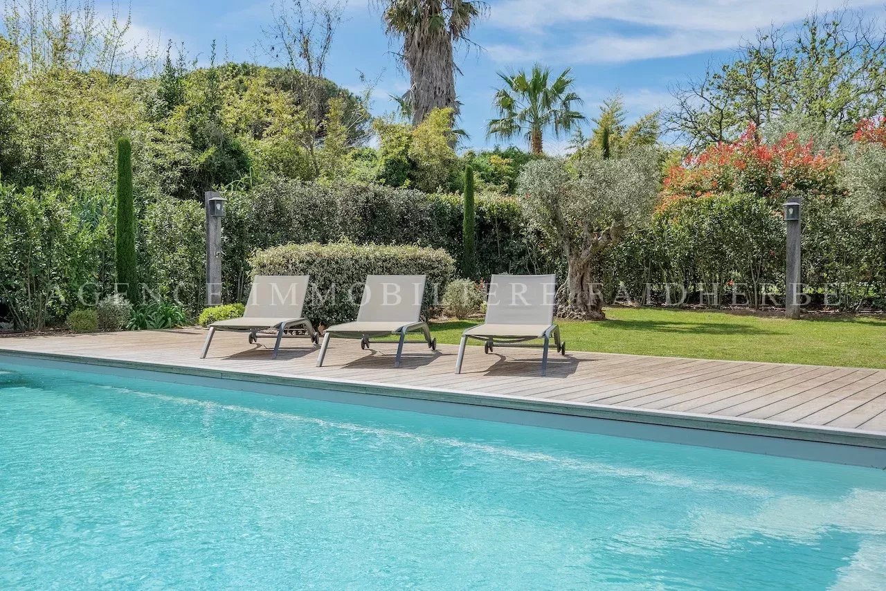 Villa nuova di circa 200 m² su un terreno di circa 2.000 m², situata sulla Route des Salins a Saint-Tropez, composta da: 5 splendide camere da letto 4 bagni con doccia e 1 bagno con vasca Un ampio soggiorno con zona pranzo e angolo TV, cucina attrezzata a vista con accesso diretto alla grande terrazza Giardino e piscina riscaldata (4x9 m) Servizi: Aria condizionata, WIFI, allarme Tassa di soggiorno: €6,91/giorno/adulto Pulizia: €30/ora