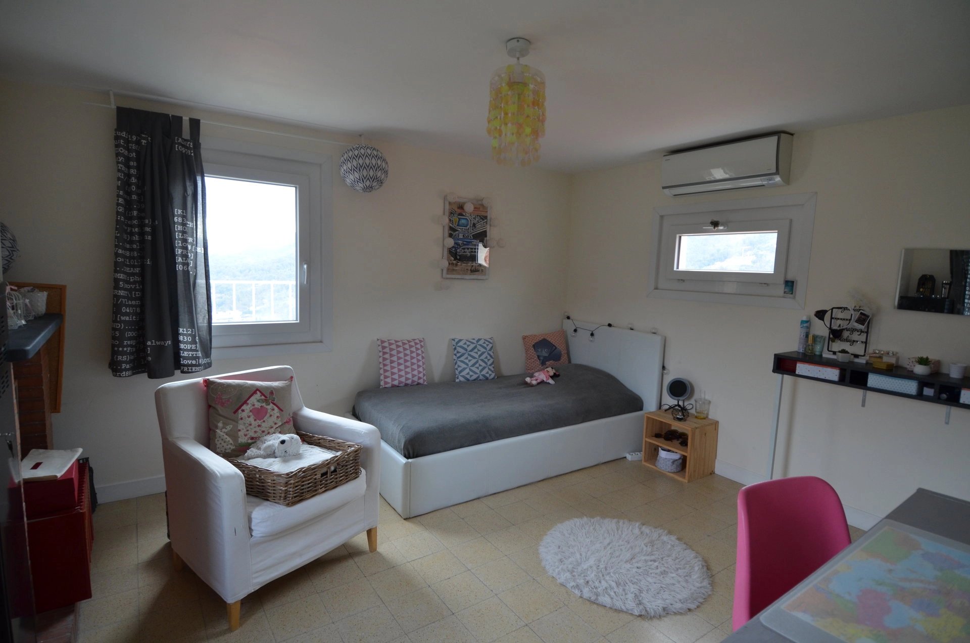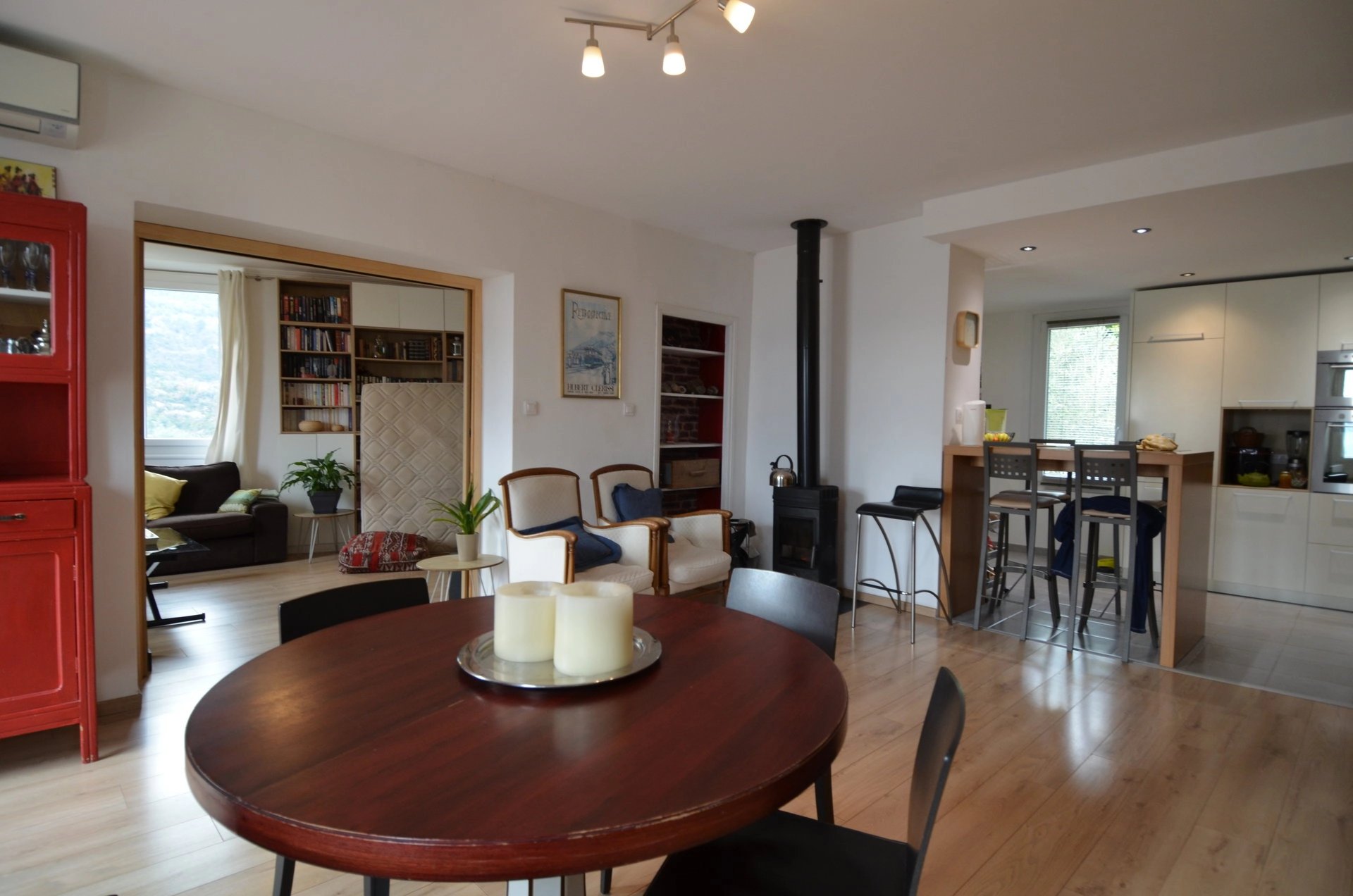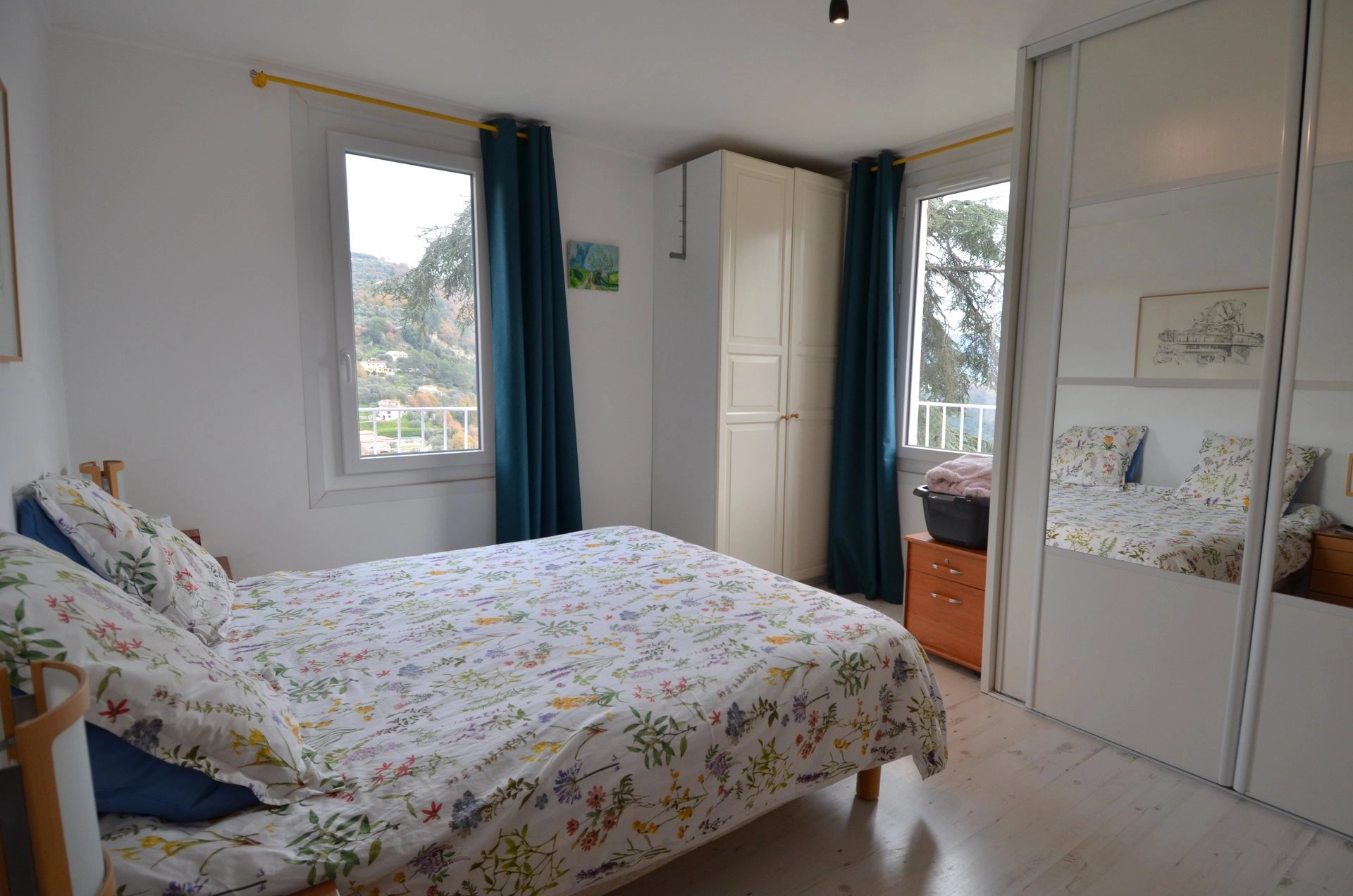 Spacieux appartement 4/5 pièces de 124m² sur 3 niveaux situé au dessus du vieux village de Contes, au calme avec une superbe vue dégagée sans vis-à-vis.