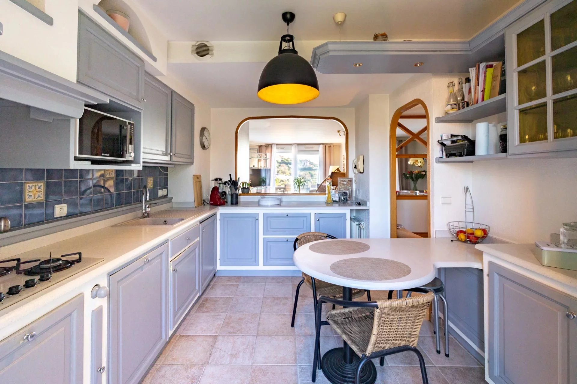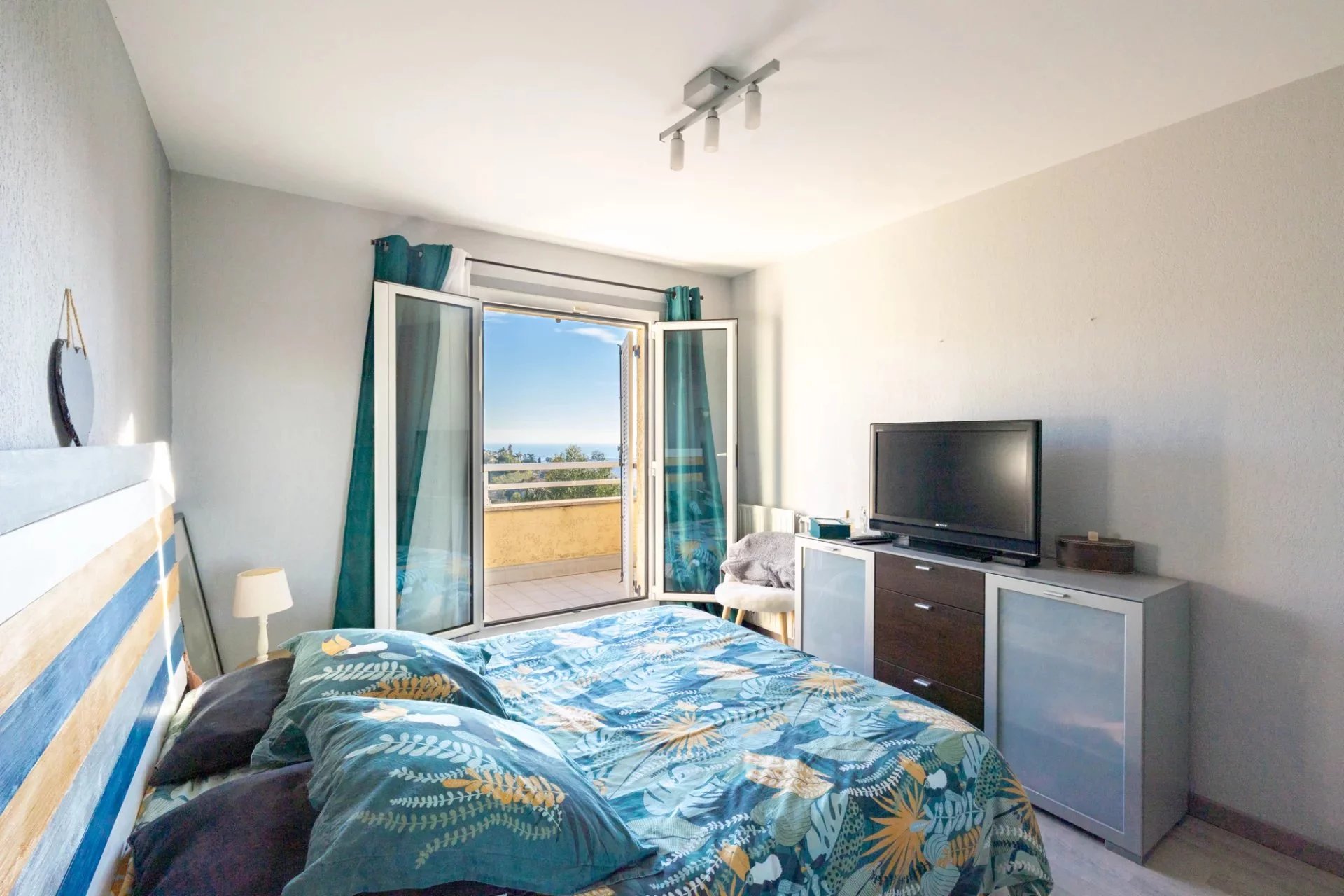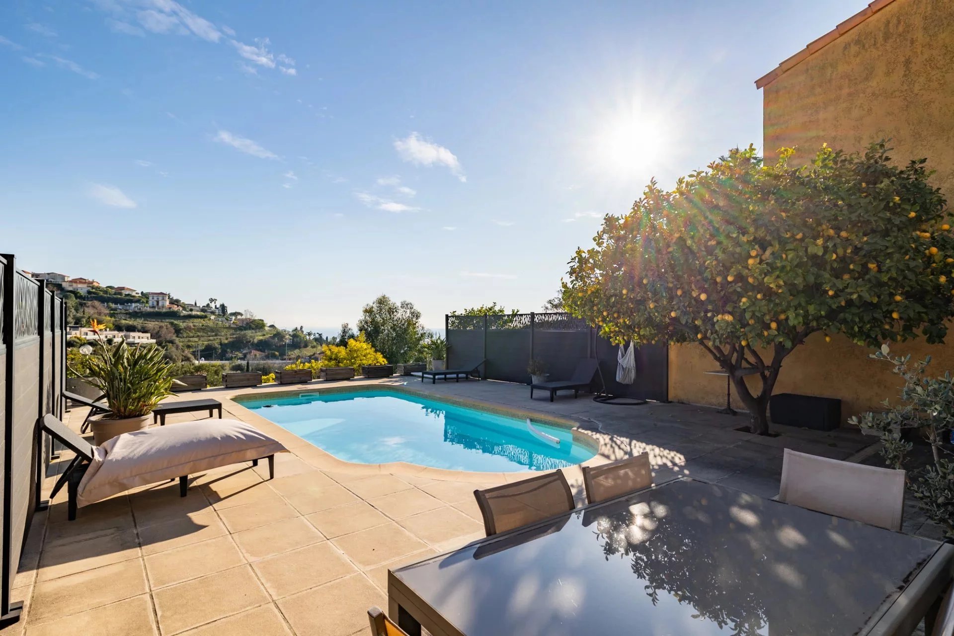 maison jumelée, Nice Saint-Antoine de Ginestière, 96 m², 3 ch, vue mer, 830000 euros A vendre, dans un domaine sécurisé, au sein du quartier résidentiel et prisé de Saint Antoine de Ginestière à l'ouest de Nice, cette charmante maison discrètement jumelée, vous séduira grâce à ses nombreux atouts: Sa piscine individuelle avec sa grande terrasse, sa belle vue mer jusqu'au Cap d'Antibes, son calme, ses nombreux stationnements. L'entrée de la maison se fait par un jardin agrémenté d'un bel olivier. En excellent état, elle est composée de: * Au Rez-de-jardin : une entrée, un cellier, un salon / salle à manger avec cheminée, une cuisine 'semi-américaine', un WC indépendant. * Au 1 er étage : un dégagement, 3 chambres, une salle de douche, une salle de bains, une terrasse. Coté stationnements: un grand garage fermé de 18 m² et une belle hauteur sous plafond, 2 places de stationnement privatifs extérieurs, 2 'places visiteurs'.