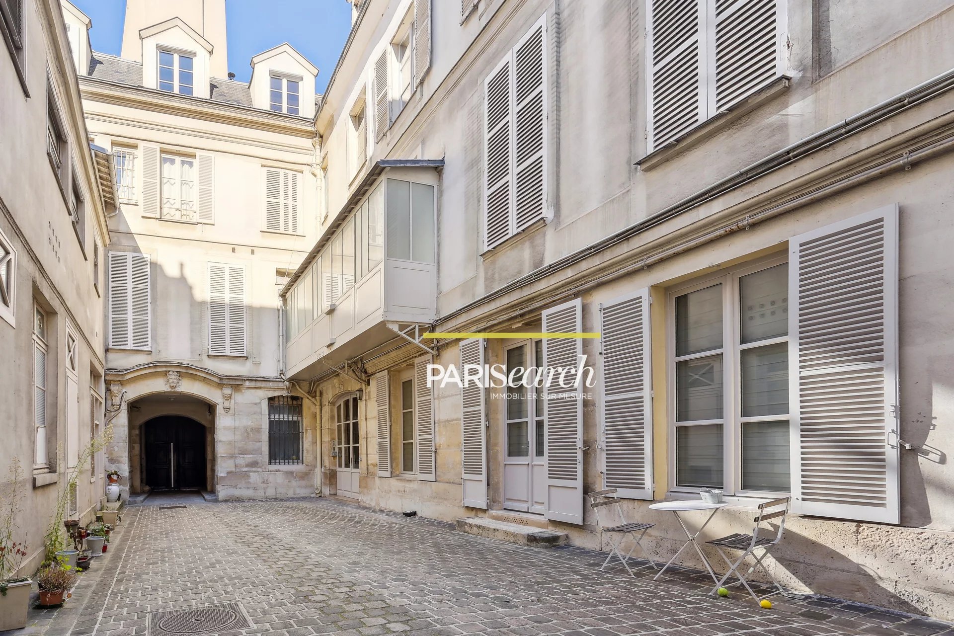 Dans un bel immeuble édifié au 16ème siècle de la Place des Vosges, un appartement situé au 3ème et dernier étage avec de beaux volumes et une belle hauteur sous plafond (3m de hauteur), d'une superficie de 129,66m2 au sol, (125,52m2 Loi Carrez) avec une vue exceptionnelle et dégagée sur le Square Louis XIII.