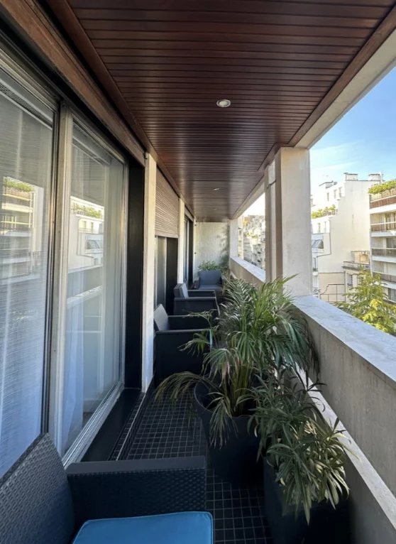 Paris 16-Trocadero-Dans un immeuble récent, au 5 eme étage avec ascenseur, un appartement composé d'une entrée, un double séjour et la cuisine équipée, deux