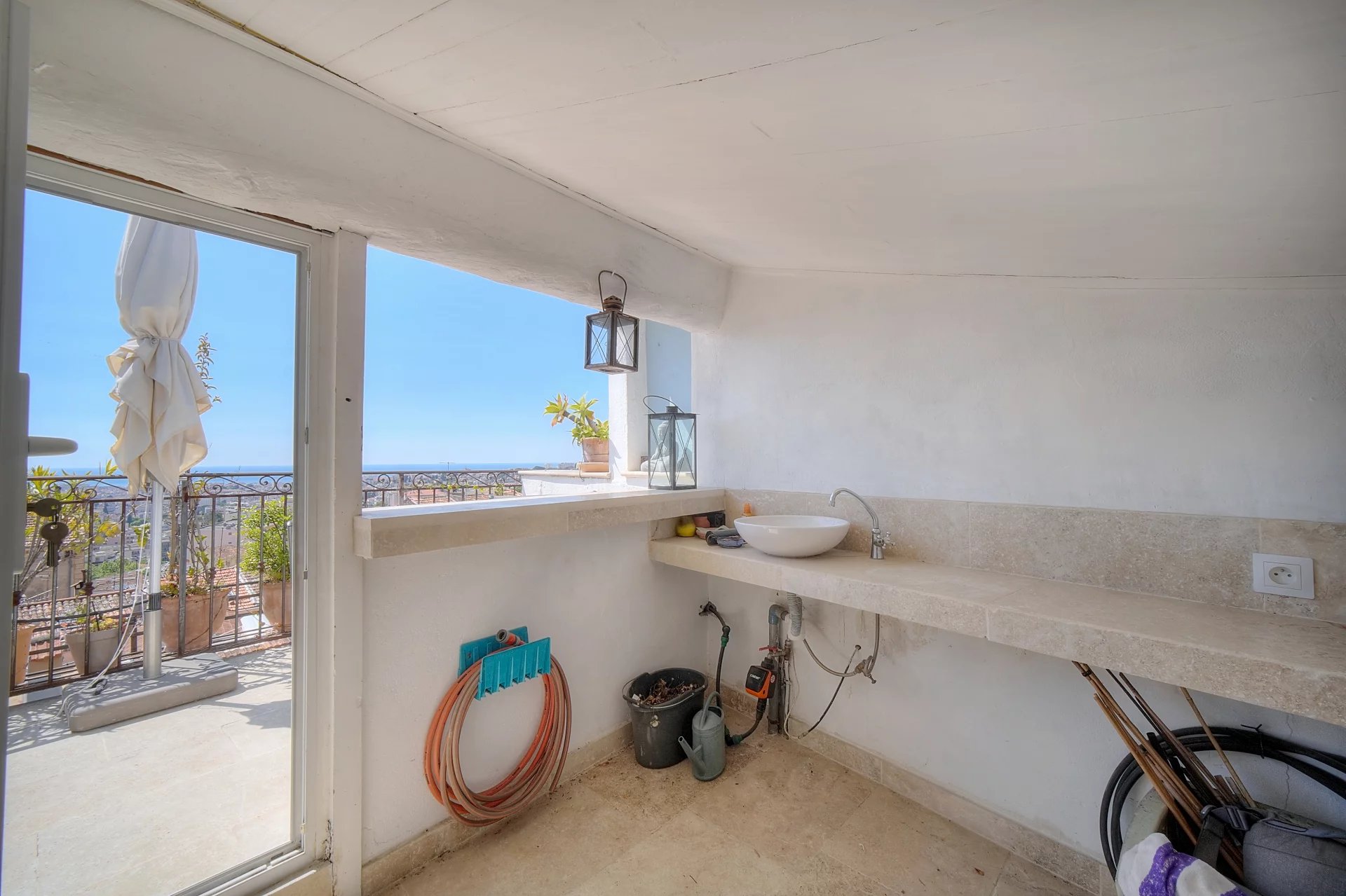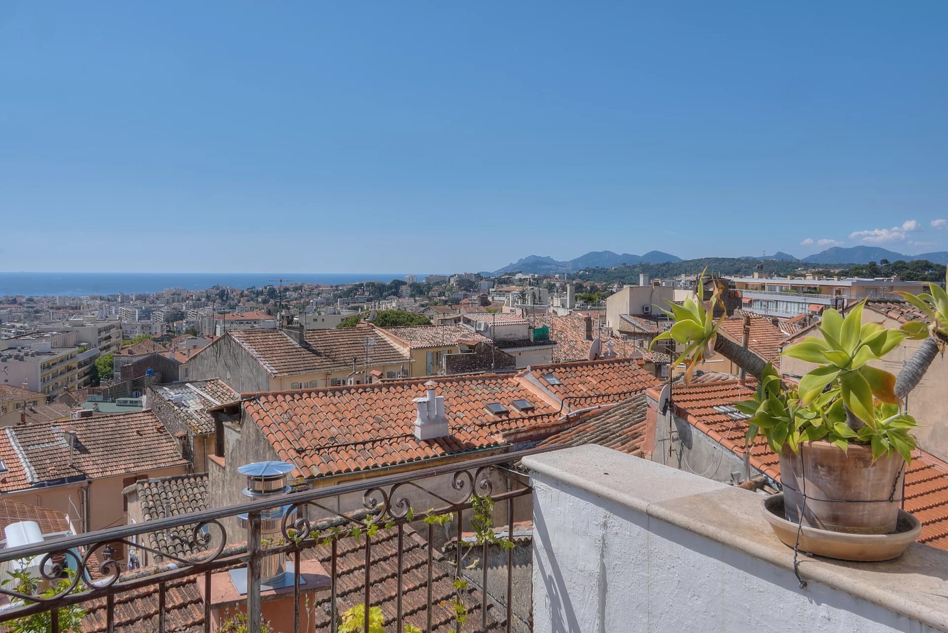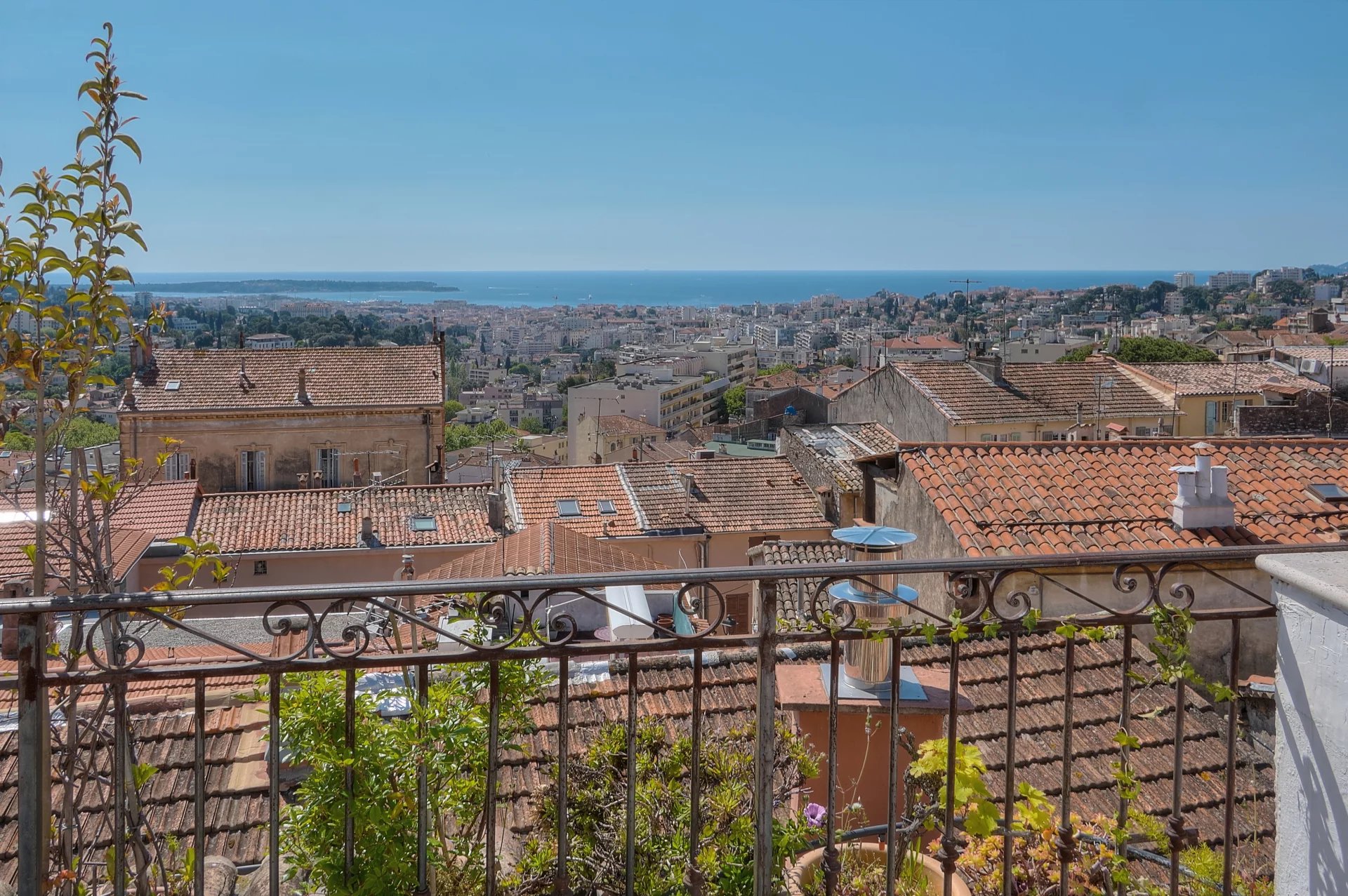 MAISON DE CHARME AVEC VUE MER Situé au sein du vieux village du Cannet cette belle maison de ville est distribuée par trois niveaux, comprenant deux chambres, et ses salles de douche, un grand séjour,cheminée,sa cuisine ouverte et surtout un toit terrasse avec une vue mer exceptionnelle sur toute la baie de Cannes et du village. Cette maison totalement rénovée offre des prestations de qualités, parquet plein , hauteur de plafond et calme absolue. Parking à proximité et à pieds de toutes les commodités.