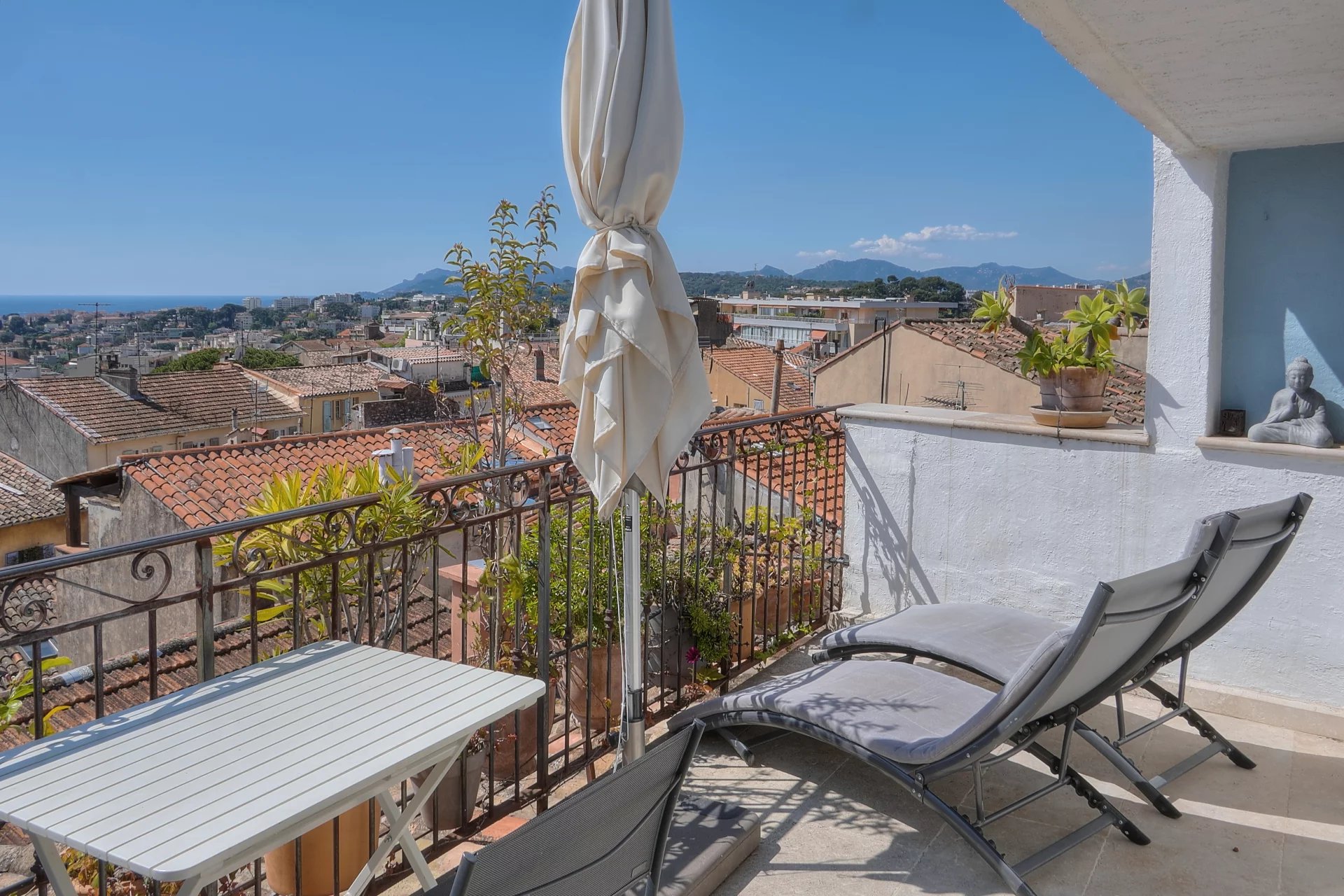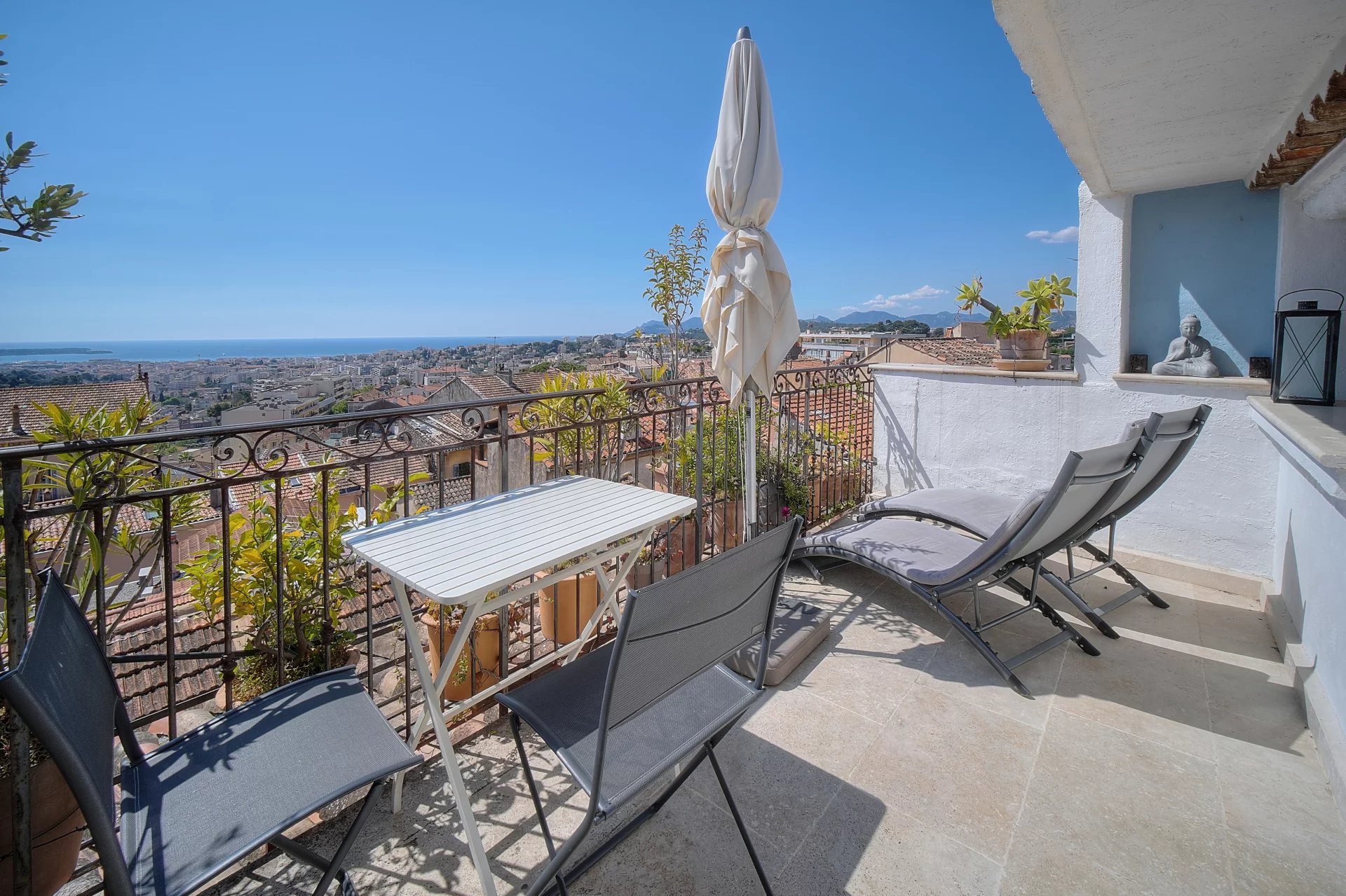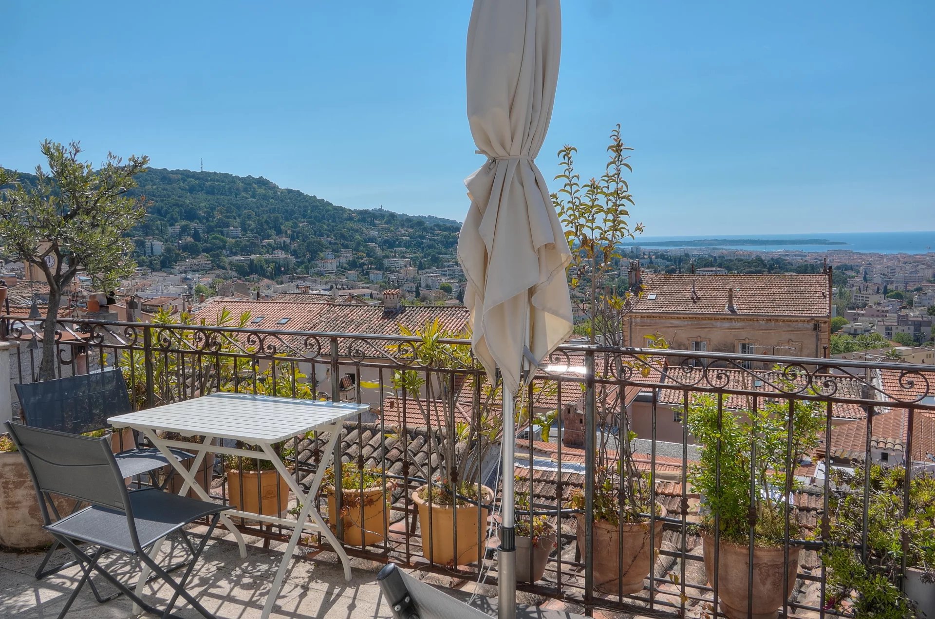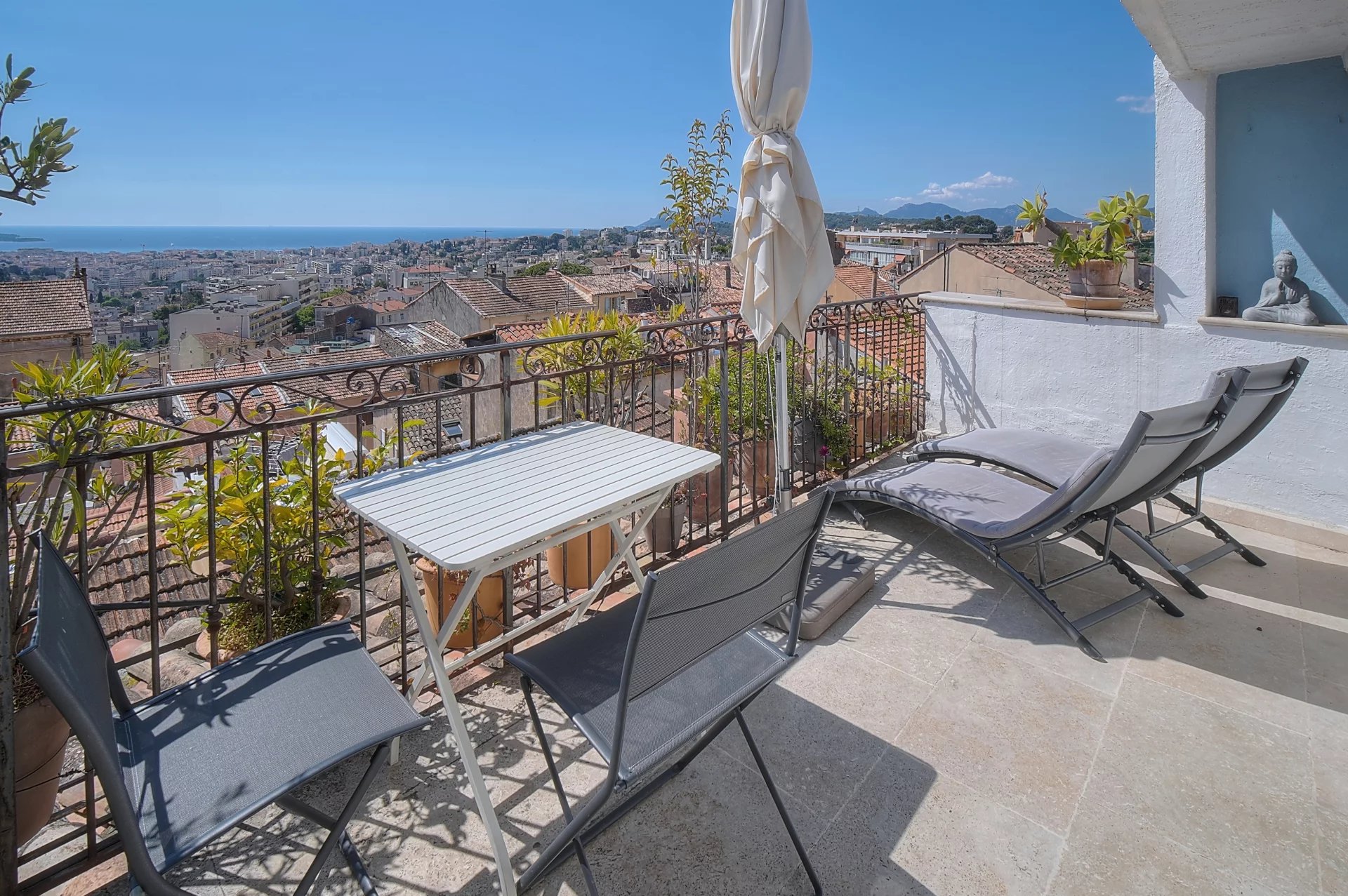 MAISON DE CHARME AVEC VUE MER Situé au sein du vieux village du Cannet cette belle maison de ville est distribuée par trois niveaux, comprenant deux chambres, et ses salles de douche, un grand séjour,cheminée,sa cuisine ouverte et surtout un toit terrasse avec une vue mer exceptionnelle sur toute la baie de Cannes et du village. Cette maison totalement rénovée offre des prestations de qualités, parquet plein , hauteur de plafond et calme absolue. Parking à proximité et à pieds de toutes les commodités.