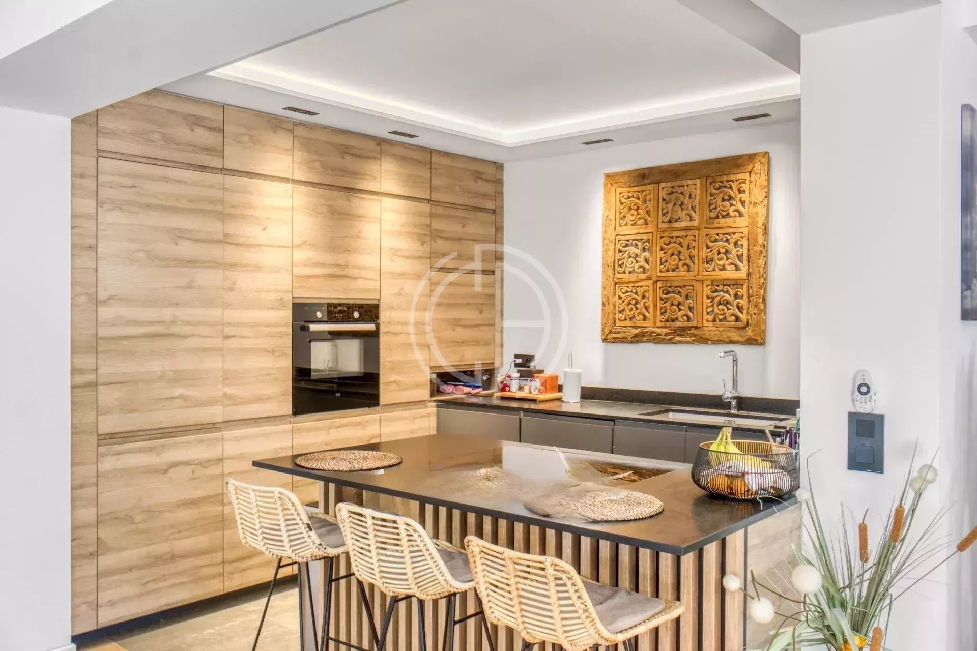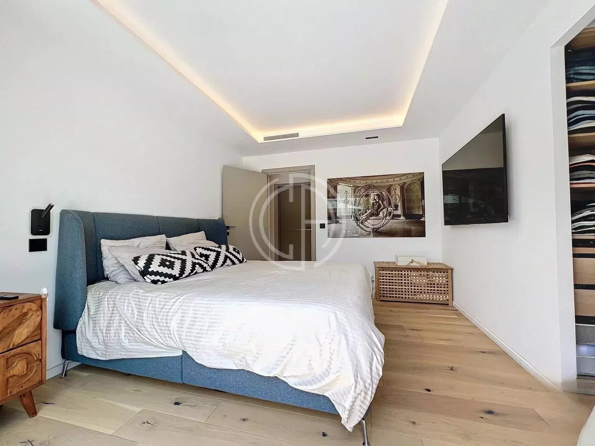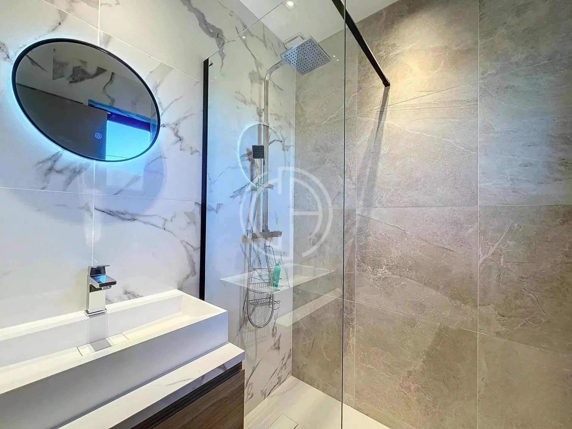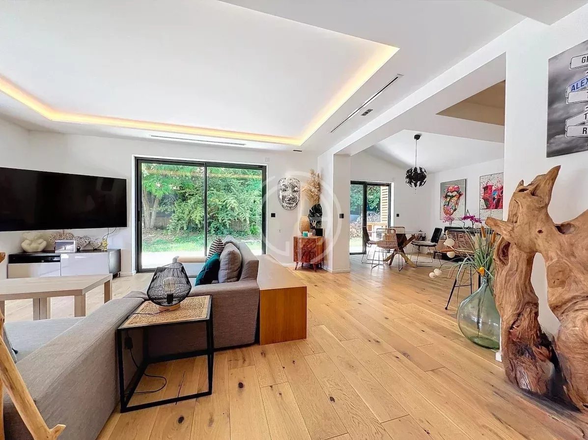 Dans un domaine fermé, à proximité des commerces, villa de plain-pied d'une superficie d'env. 125m2 implantée sur un terrain plat de 1440m2 avec piscine au sel. Cette villa entièrement rénovée se compose d'un large salon-séjour de 42m2 avec cuisine ouverte, de 4 chambres - 3 salles de bain dont 1 chambre master avec son dressing et sa salle de bains. Cave en sous-sol. Huisseries en aluminium, clim gainée, parquet massif En complément : 1 abris pour 2 voitures et de nombreuses places de parkings. Facile d'accès, à pied d'un petit centre commercial avec boulangerie, boucher, caviste, coiffeur Rare, à visiter sans tarder Le jardin est plat, sans aucun vis-à-vis et comprend plusieurs espaces détente.