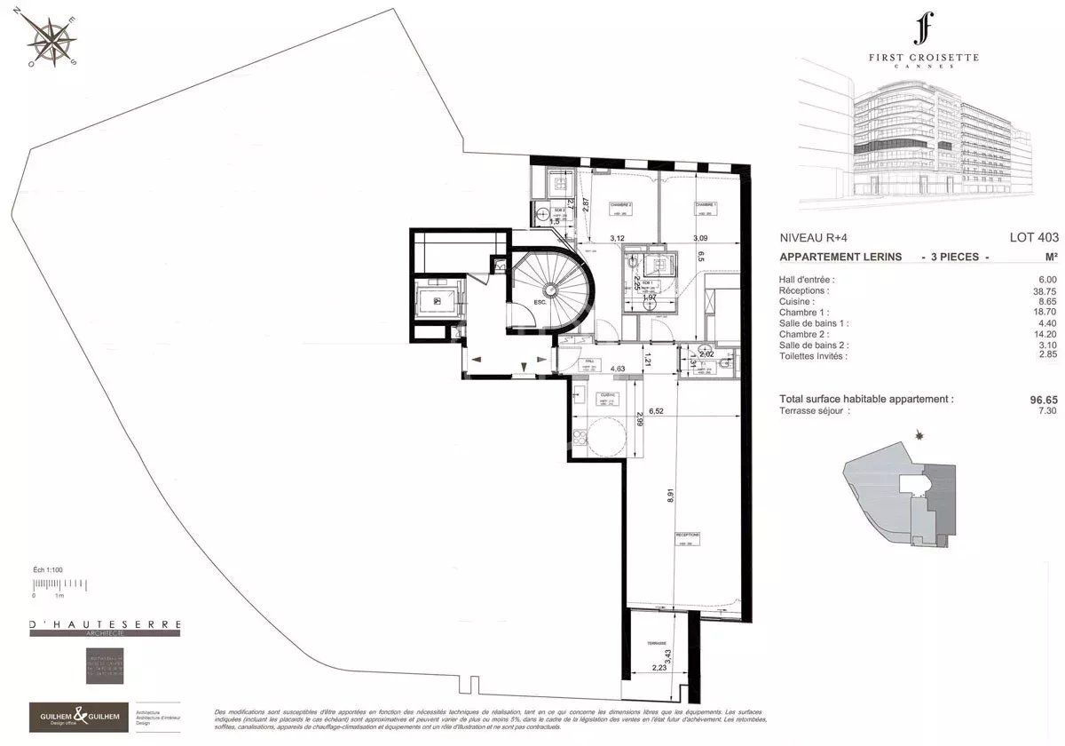Collection d’Azur vous présente cette nouvelle résidence de très haut standing à l’architecture affirmée située au cœur de la Croisette, à quelques pas du Palais des Festivals et du Vieux Port. L'appartement 3 pièces d'environ 96.65 m² situé en 4ème étage est constitué d'un salon avec larges baies vitrées, une cuisine ouverte entièrement équipée, de 2 chambres en suite et une terrasse d'environ 7.30 m². Cet ensemble élégant, offre des finitions raffinées et luxueuses pour un confort optimal. Un magnifique SPA privatif, sauna, hammam, salle de massage, salle de sport. Garage et Cave. Service de conciergerie 7/7, sécurité 24/24 et parkings en sous-sol. Frais de notaire réduits. Les informations sur les risques auxquels ce bien est exposé sont disponibles sur le site Géorisques : www.georisques.gouv.fr
