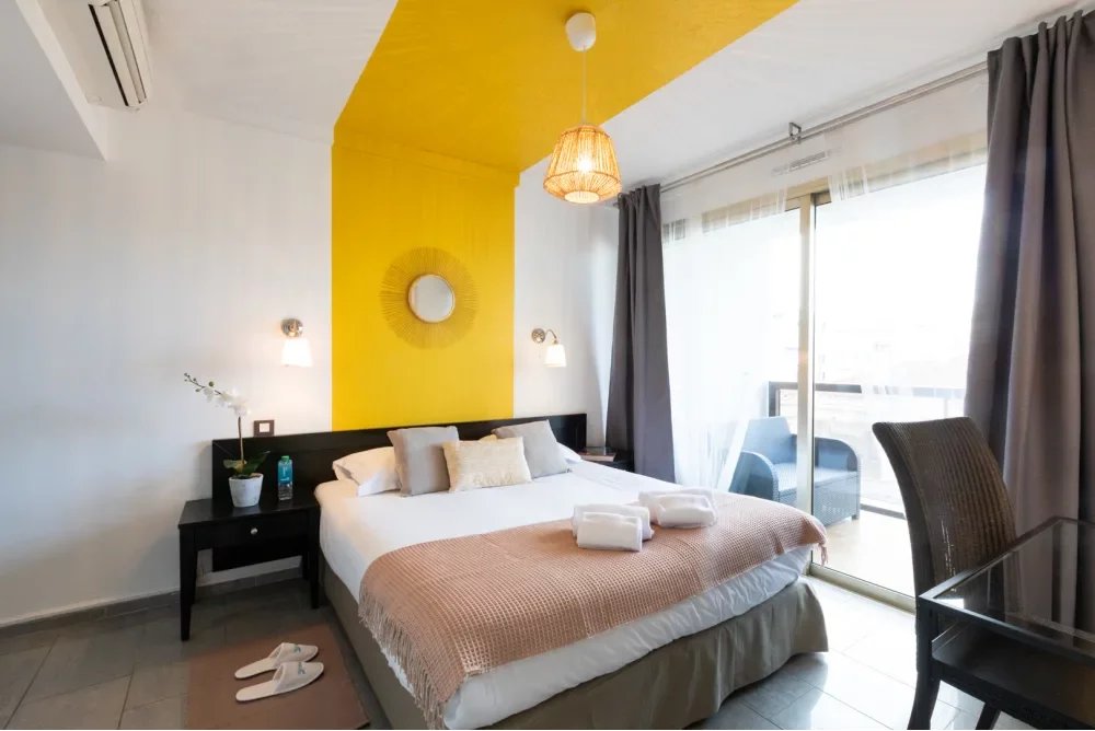 JUAN LES PINS- à quelques pas des Plages, gare, Palais des Congrès, commerces et commodités, ce 2 Pièces de 40m² décoré dans un style moderne et confortable vous plaira de suite. l'appartement comprend un séjour avec kitchenette très lumineux grâce a ses larges baies vitrée, une chambre avec placard , une salle de bain avec wc. Une belle Terrasse de 12m² ayant VUE MER latérale complète ce bien. Possibilité d'acquérir un Parking en sus du prix.