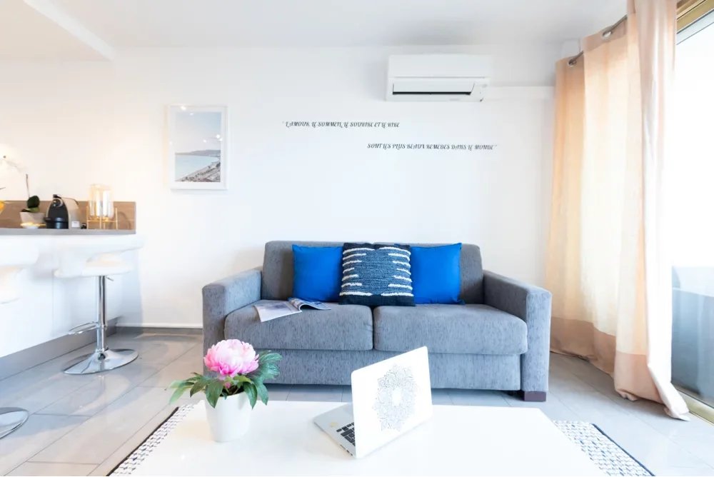 JUAN LES PINS-cœur de ville et à deux pas des Plages, gare, Palais des Congrès, commerces et toute commodités, nous vous proposons un appartement de 37m² comprenant un grand lieu de vie avec cuisine américaine équipée et un espace nuit très confortable ouvrant sur une Terrasse de 12m² VUE PANORAMIQUE et mer latérale. Une salle de bain avec wc complète cet bien rare à la vente. Possibilité d'acquérir un parking en sus du prix.