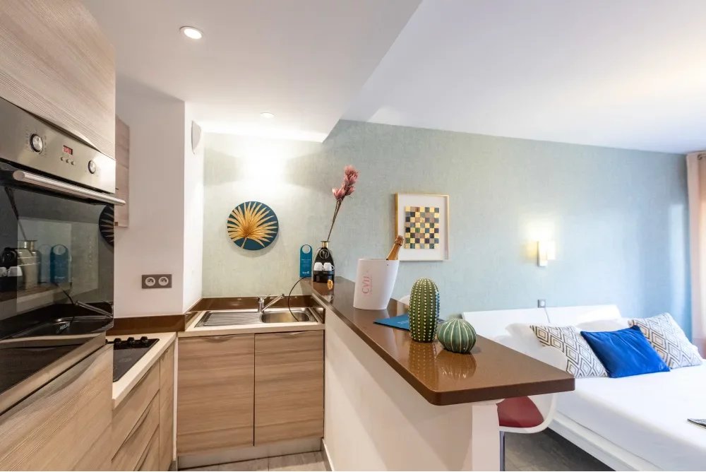 JUAN LES PINS BORD DE MER - à quelques pas des plages, gare, Palais des congrès, commerces et commodités appartement moderne et lumineux de 25m² ouvrant sur une belle terrasse de 13m². Idéal pour pied à terre ou investissement locatif. Possibilité d'acquérir un parking en sus du prix.