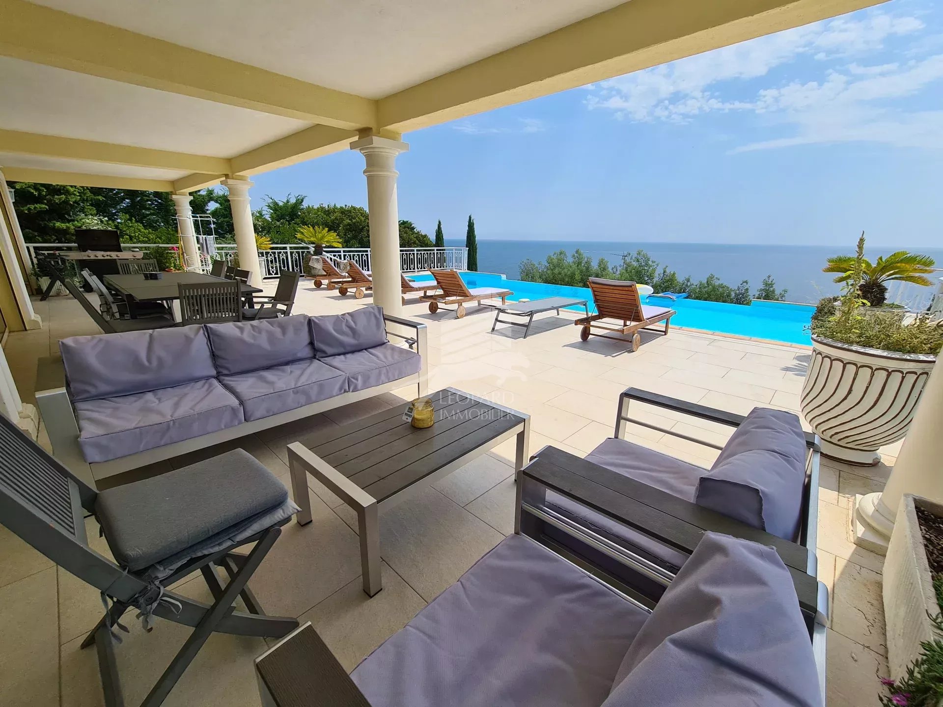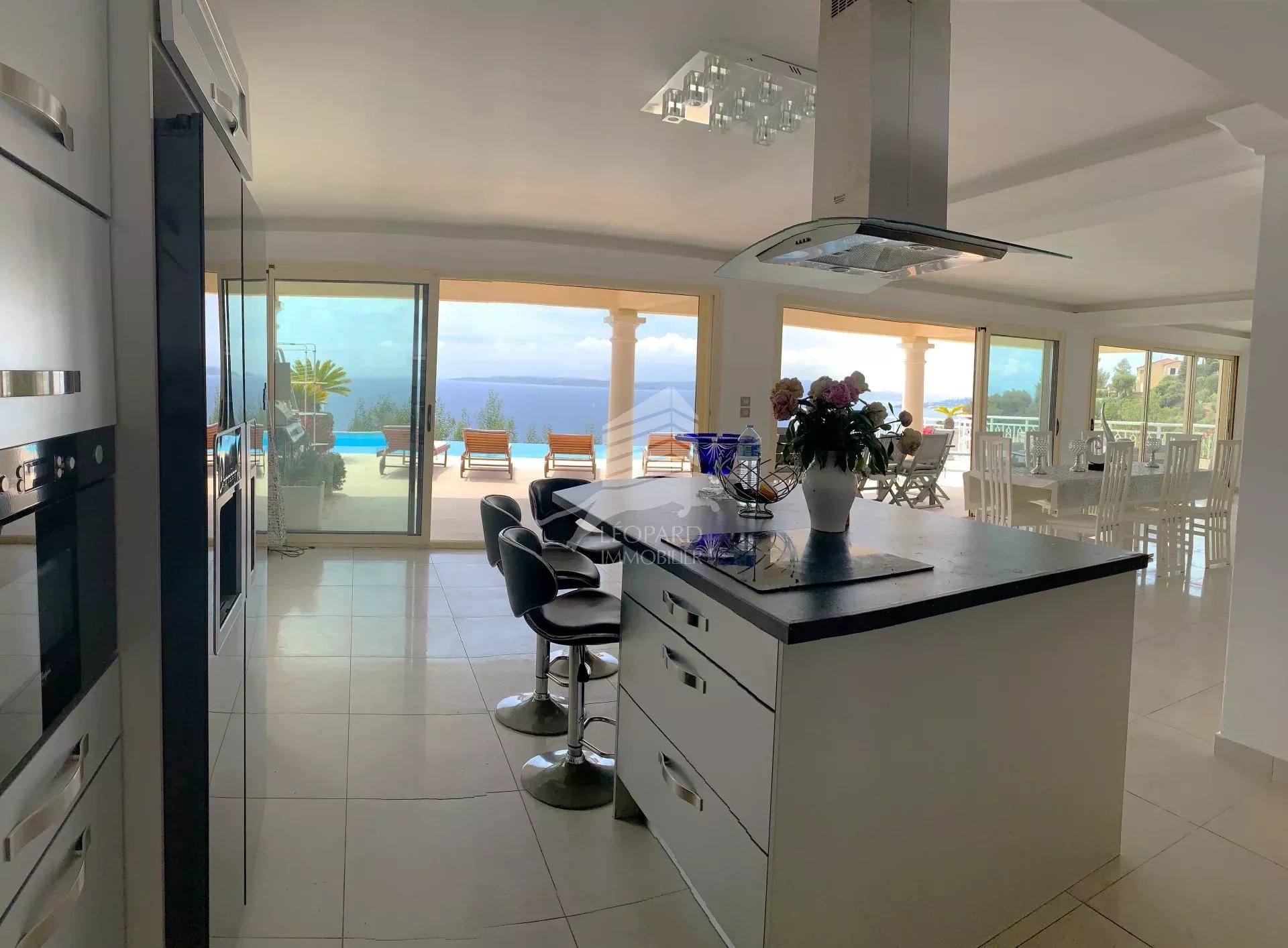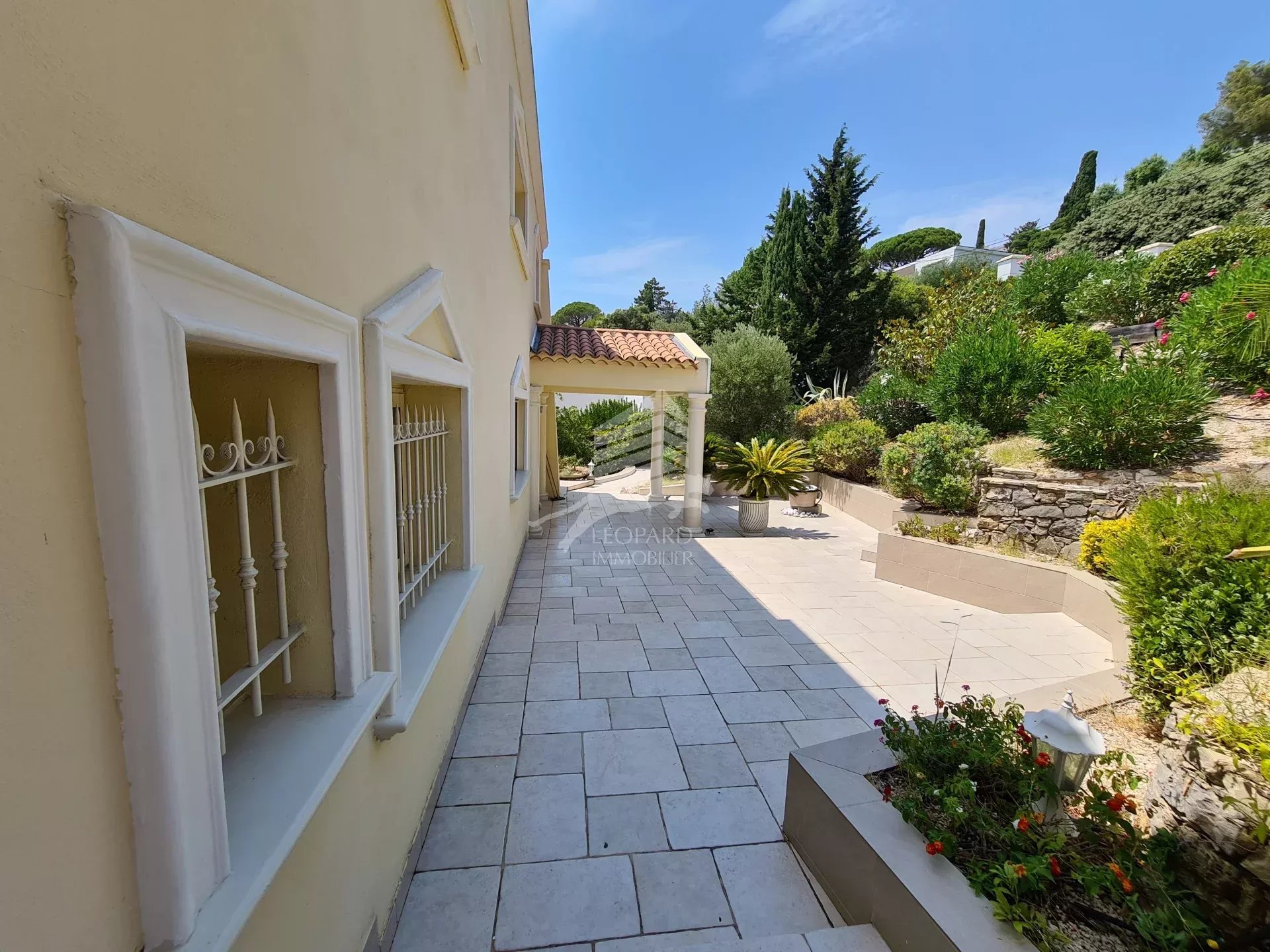 Dans le golfe de Saint-Tropez, cette magnifique maison de style colonial sur 3 niveaux vous offre une vue mer spectaculaire. Nichée sur les hauteurs des Issambres, au calme, avec un intérieur spacieux et lumineux, vous trouverez au rez-de-chaussée un grand séjour / salle à manger et une cuisine ouverte entièrement équipée donnant sur une belle terrasse et piscine à débordement, un bureau, une chambre en suite et les toilettes invités. A l'étage, 3 belles chambres donnant sur une terrasse exposée sud, 2 salles de bains et 1 salle d'eau. Au sous-sol, un grand garage de 200m² pouvant accueillir 4 voitures, une cave à vin, une buanderie et possibilité d'un studio indépendant. Excellent rendement locatif.