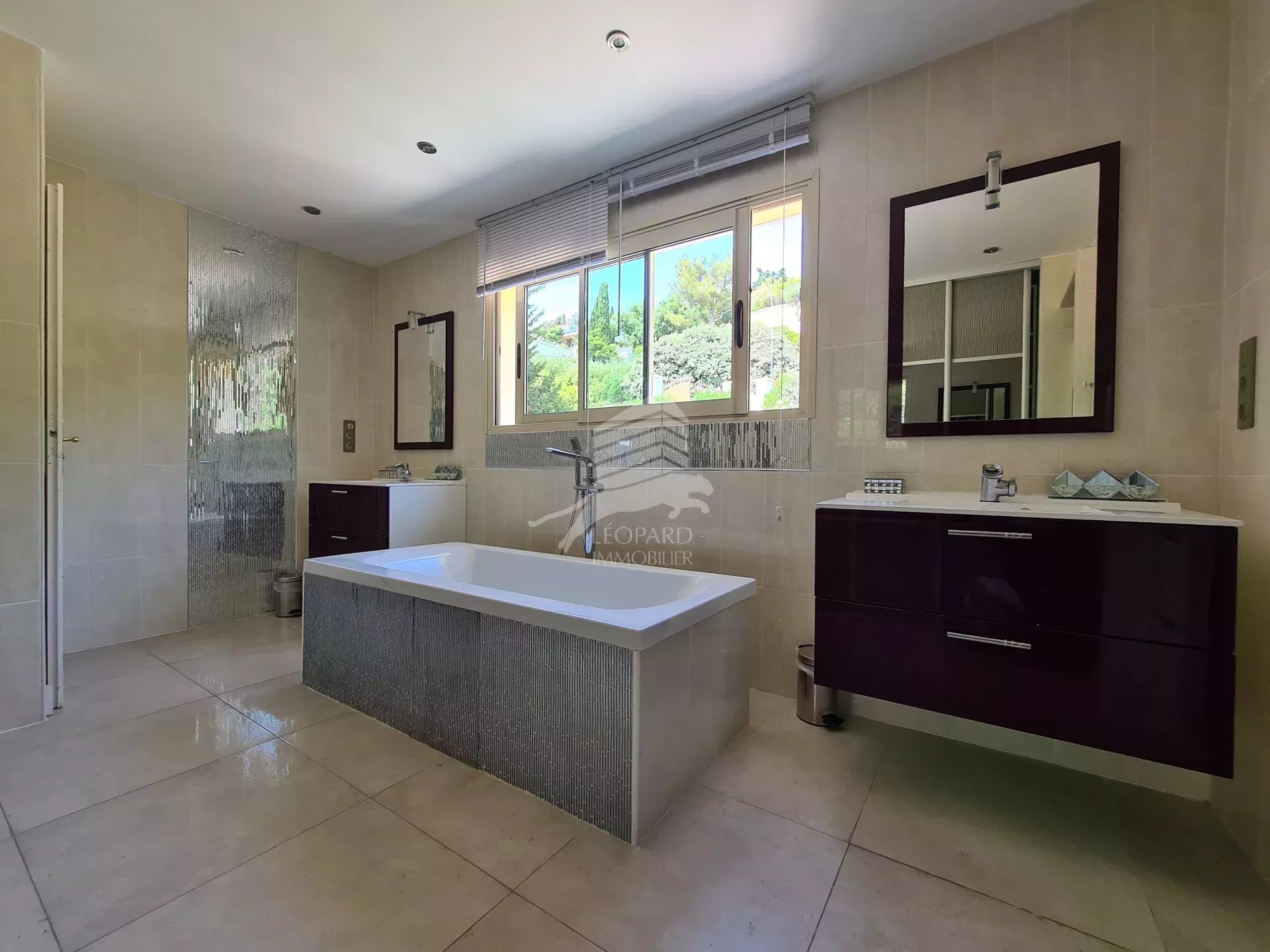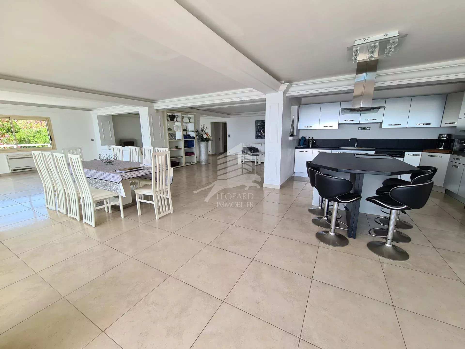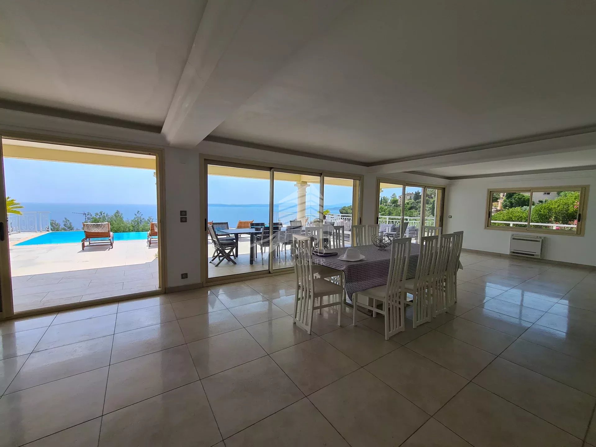 Dans le golfe de Saint-Tropez, cette magnifique maison de style colonial sur 3 niveaux vous offre une vue mer spectaculaire. Nichée sur les hauteurs des Issambres, au calme, avec un intérieur spacieux et lumineux, vous trouverez au rez-de-chaussée un grand séjour / salle à manger et une cuisine ouverte entièrement équipée donnant sur une belle terrasse et piscine à débordement, un bureau, une chambre en suite et les toilettes invités. A l'étage, 3 belles chambres donnant sur une terrasse exposée sud, 2 salles de bains et 1 salle d'eau. Au sous-sol, un grand garage de 200m² pouvant accueillir 4 voitures, une cave à vin, une buanderie et possibilité d'un studio indépendant. Excellent rendement locatif.
