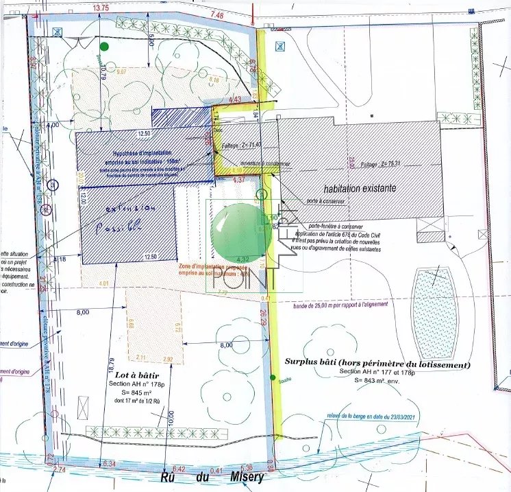 EN EXCLUSIVITE - Ce terrain arboré de 828 m² près des écoles, des terrains de sport et d’un parc municipal de 2 hectares est situé dans une impasse avec seulement 5 pavillons. Il a 21 m de façade et le rû en fond de parcelle avec barrière. Zone PLU UR2 Bâtiments de France avec 40 % d'emprise au sol. Façade sur rue. Pour plus de renseignements contactez-nous ou passez à l'agence Point Vert du village.