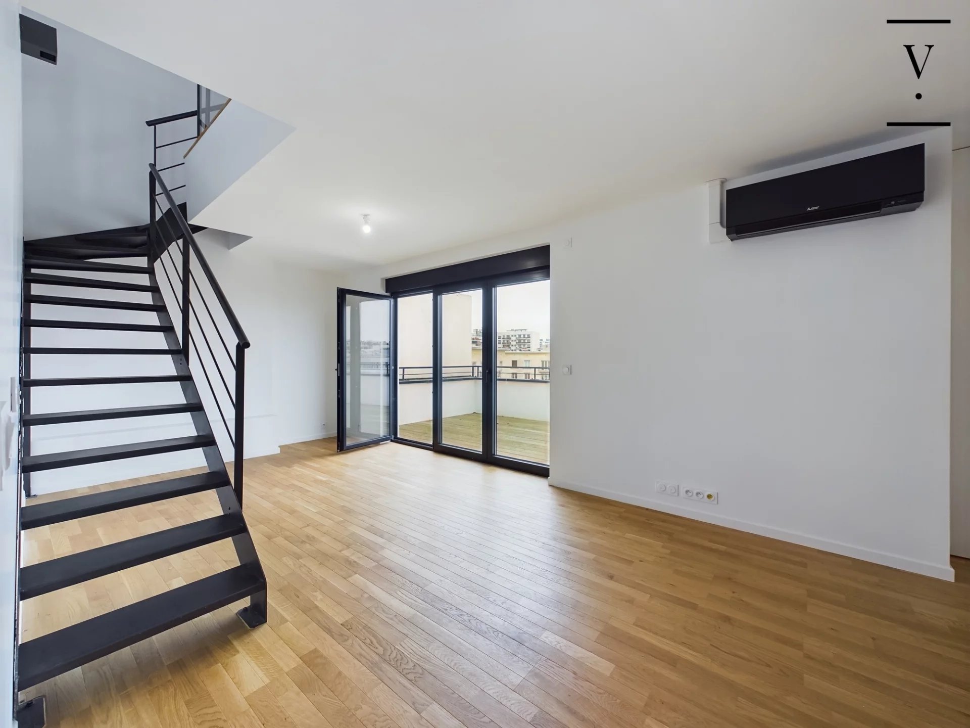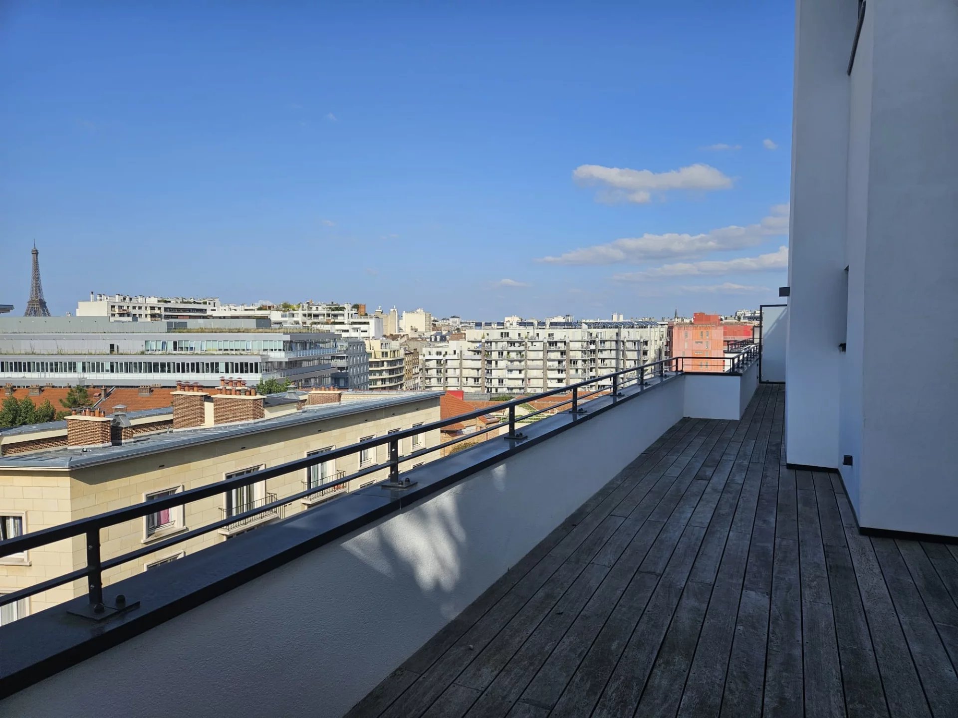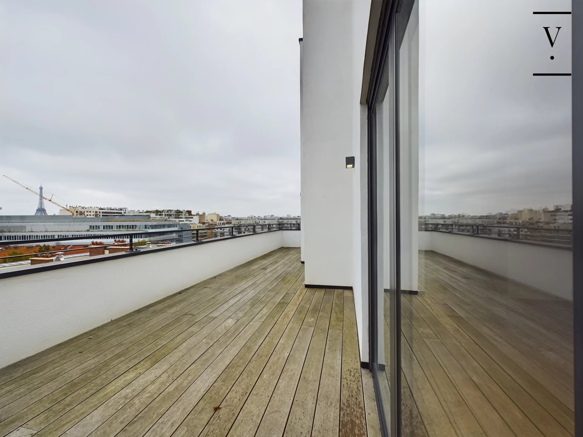 Villaret Immobilier vous propose un Penthouse duplex de 194 m2 loi Carrez, situé aux deux derniers étage d'un immeuble de standing récemment rénové. L'appartement se compose au premier niveau d'une suite parentale avec dressing, sa salle d'eau et WC, d'une chambre avec sa salle d'eau privative, de deux chambres, d'une salle de bain, d'une buanderie ainsi qu'un salon cosy avec un bel escalier qui conduit au dernier étage avec un salon/salle à manger de 71m2, d'une cuisine et une terrasse en roof top de 58m2 avec vue sur la Tour Eiffel. La suite parental bénéficie également d'une belle vue sur la Tour Eiffel et donne accès a une terrasse filante de 41m2. Deux places de parking en sous-sol et une cave viennent compléter ce bien exceptionnel.