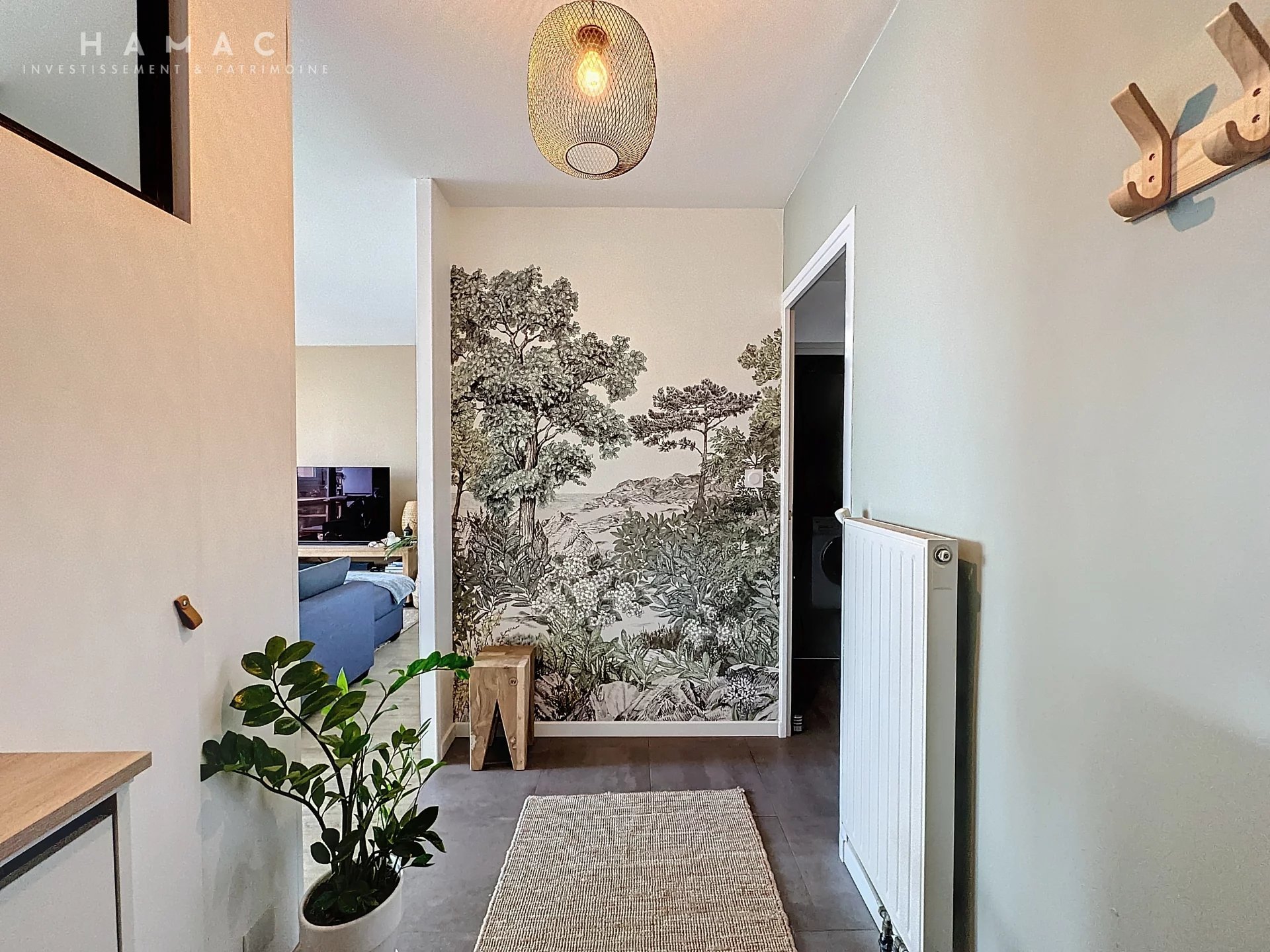 En franchissant la porte d'entrée, vous serez accueilli par un hall d'entrée lumineux qui mène à toutes les pièces de l'appartement. La pièce à vivre principale est à la fois conviviale et baignée de lumière naturelle. La cuisine, entièrement aménagée et équipée est un espace fonctionnel qui est ouvert sur la pièce de vie.