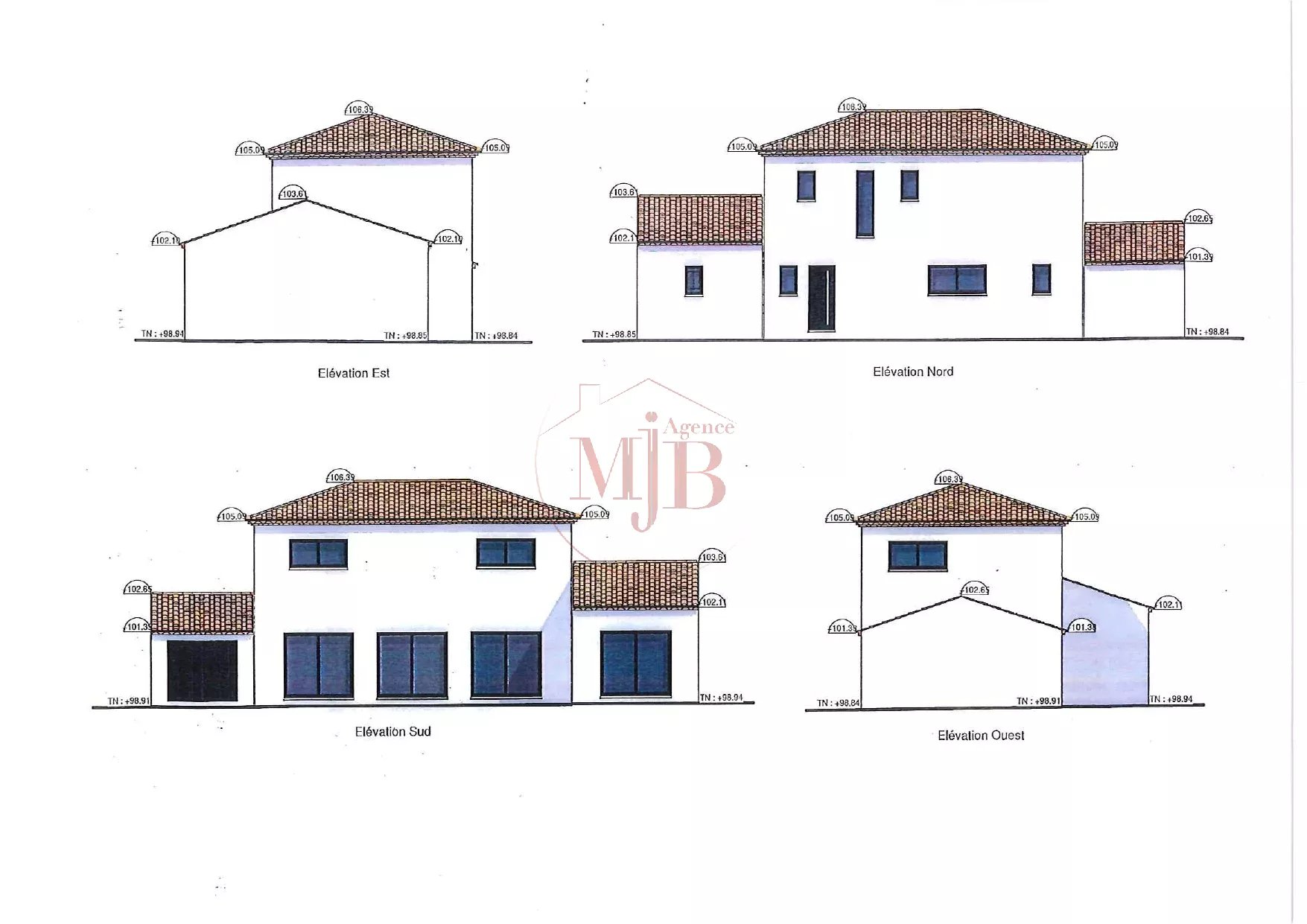 Dans quartier résidentiel très recherché, à proximité de toutes commodités (écoles , commerces et aussi chemins de randonnées ), au calme absolu sans aucune nuisance , superbe terrain plat , en position dominante d'une surface de 1100 m2 , vendu avec Permis de Construire et recours des tiers obtenus . La construction se réalise sur deux niveaux selon la distribution suivante : en rez de chaussée un salon séjour 50 M2 environ , une belle suite parentale de 27 M2 , un cellier , WC et garage , à l étage trois chambres , une salle de bain et WC .