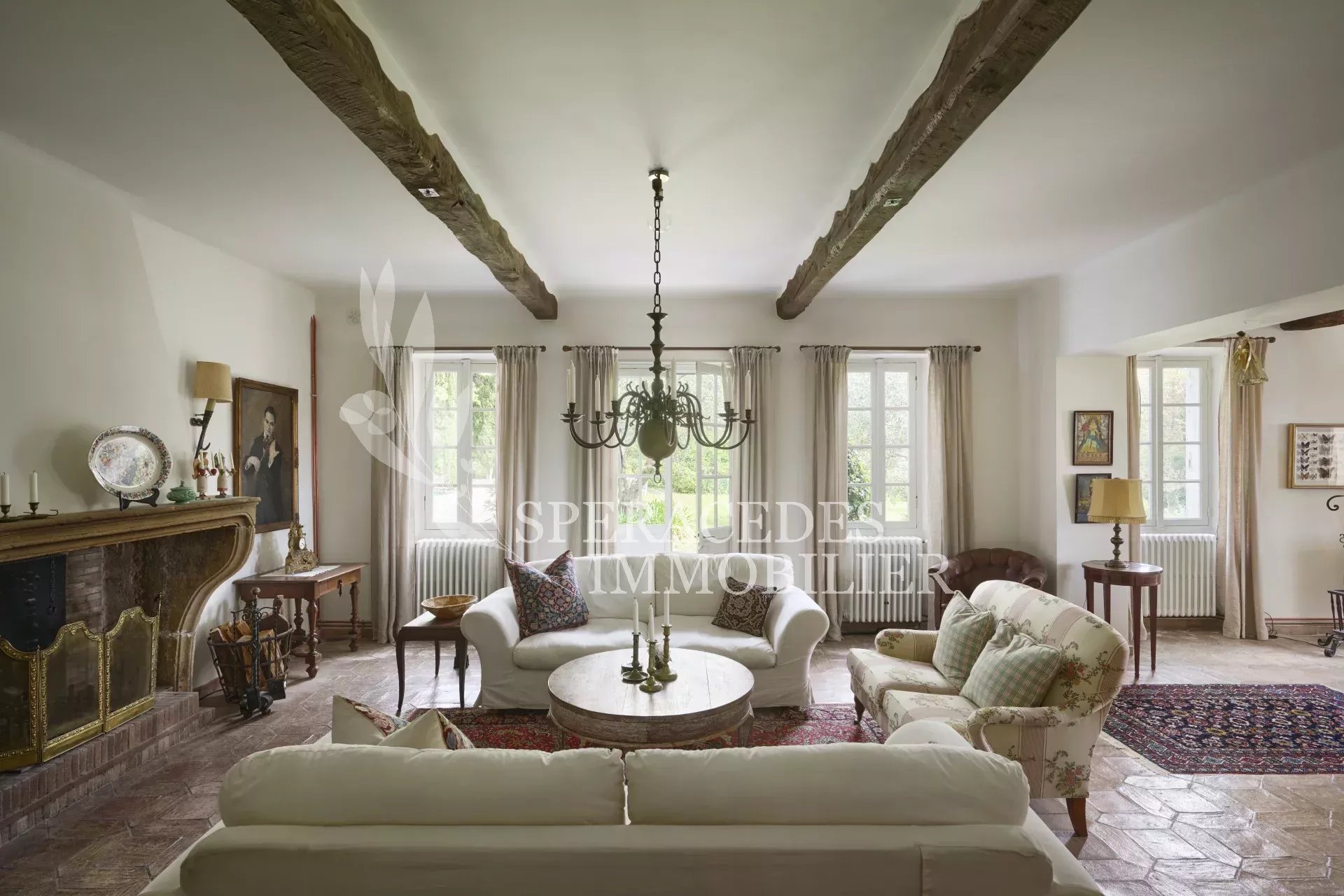 Située au coeur d'un magnifique jardin de 2.5ha au calme absolu et sans-vis-à-vis, cette propriété d'exception, impeccablement entretenue, comprend : Une superbe bastide du XVIII ème de 470m² composée essentiellement d'une spacieuse cuisine de 55m², d'une salle à manger, d'un double séjour, d'une orangerie, d'une très belle cave à vin et de 8 chambres en suite. Une maison de gardien de 65m² avec 2 chambres. Une maison d'amis de 60m² avec 2 chambres. Un pool house de 60m² Un garage de 21m² Piscine en mosaïque 5x12m, jeu de boules et nombreuses possibilités de parking. La propriété a été entièrement restaurée (toiture, pompe à chaleur, installations électriques).