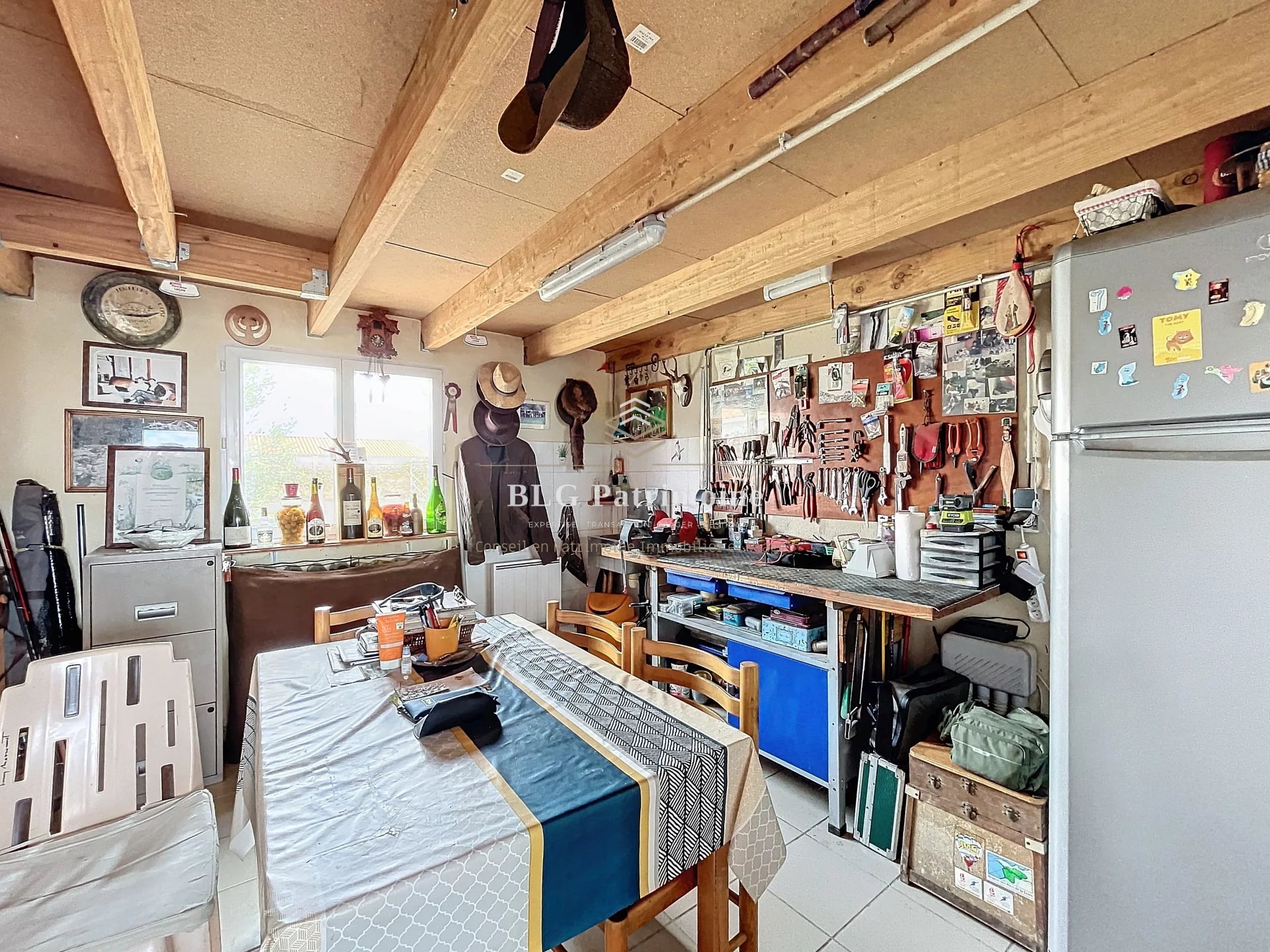 Le bien comprend également un grand préau pouvant accueillir deux voitures avec un atelier et une mezzanine.