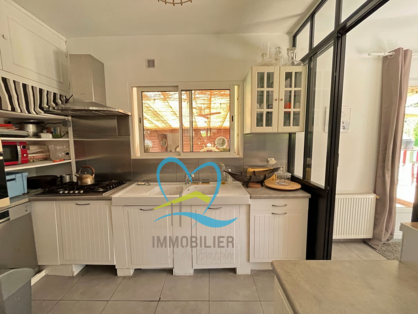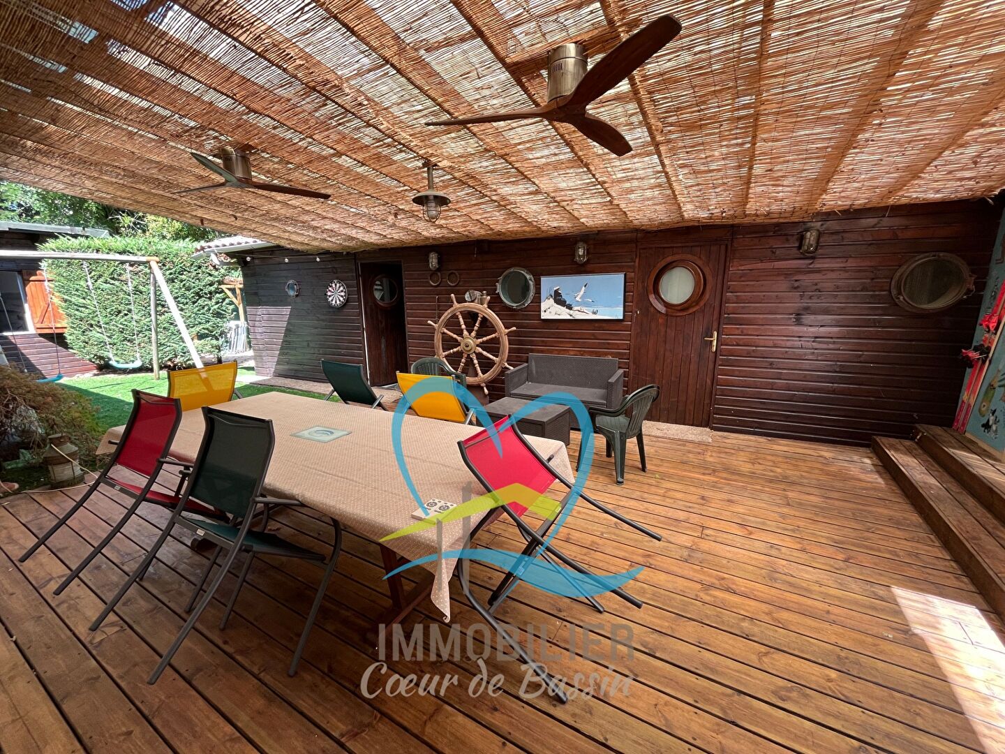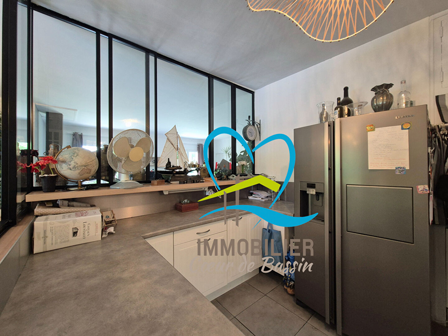 Immobilier coeur de bassin vous présente dans le quartier balnéaire du MAURET, côté bassin et commerces à proximité, une jolie maison qui vous offre le luxe d'une vie familiale à l'année dans un décor balnéaire. Dedans comme dehors , elle reste accueillante et chaleureuse en toute saison grâce à la climatisation. La pièce de vie dispose d'un beau séjour avec cheminée, d'une salle à manger adaptée aux grandes tablées et d'une cuisine verrière qui peut s'ouvrir ou se fermer. Et si une grande fête se prépare, la terrasse couverte équipée de grands ventilateurs peut recevoir de nombreux convives. Côté nuit, la maison est dotée de 3 chambres, d'une salle de bains avec wc et d'une suite parentale avec sa salle d'eau privative . Côté pratique : buanderie et WC indépendant. Quant à vos invités, ils disposent d'un studio chauffé, isolé, doté d'une salle d'eau avec wc plus une chambre cabine pour les petits loups ! C'est donc une grande maison conviviale de 7 pièces entourée d'un jardin intime et calme équipée d'une piscine, d'un atelier et d'un grand carport. En été le jardin s'anime et la cuisine d'été à proximité de la piscine facilite vos réunions festives. Votre souhait est de vivre côté bassin ? Contactez IMMOBILIER Coeur de bassin votre agence de proximité aux honoraires légers pour visiter (3.06 % honoraires TTC à la charge de l'acquéreur.)