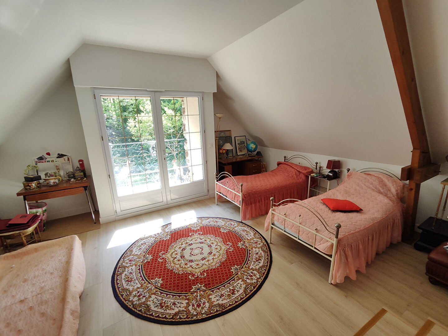 Vous rêvez d'un grand jardin, avec de nombreux arbres fruitiers et fleuris, (abricotier, cerisier, mirabellier, figuier) , des chênes, charmes, albizia, tamaris, lilas...pour votre famille, alors venez découvrir cette spacieuse maison familiale sur sous-sol total, très bien isolée (DPE en B), innovante avec son plancher chauffant basse température alimenté par la géothermie. La maison s'ouvre sur une belle entrée avec toilettes et vestiaire, menant au double séjour traversant très lumineux avec sa cheminée, de plain-pied sur la terrasse et le jardin, une vaste cuisine indépendante tout équipée, avec coin repas et arrière cuisine, une chambre avec sa salle d'eau attenante. A l'étage, palier avec placards, toilettes, salle de bains, 3 chambres (possibilité 4) (15/25 et 38m2) dont une avec salle d'eau attenante. Grenier aménageable au-dessus. Sous-sol total avec atelier de bricolage, cave à vin, grande cave, garage 3 voitures, zone de stockage. En plus parking extérieur pour 4 voitures. Une cuve de récupération d'eau de pluie de 3000 litres permet de diviser la facture par 2. A 5mn des écoles et de la Forêt. A 15mn à pied de la gare pour Paris St Lazare ou La Défense et du T13 pour Saint Germain en Laye RER A ou RER C de Saint Cyr L'Ecole. (3.20 % honoraires TTC à la charge de l'acquéreur.)