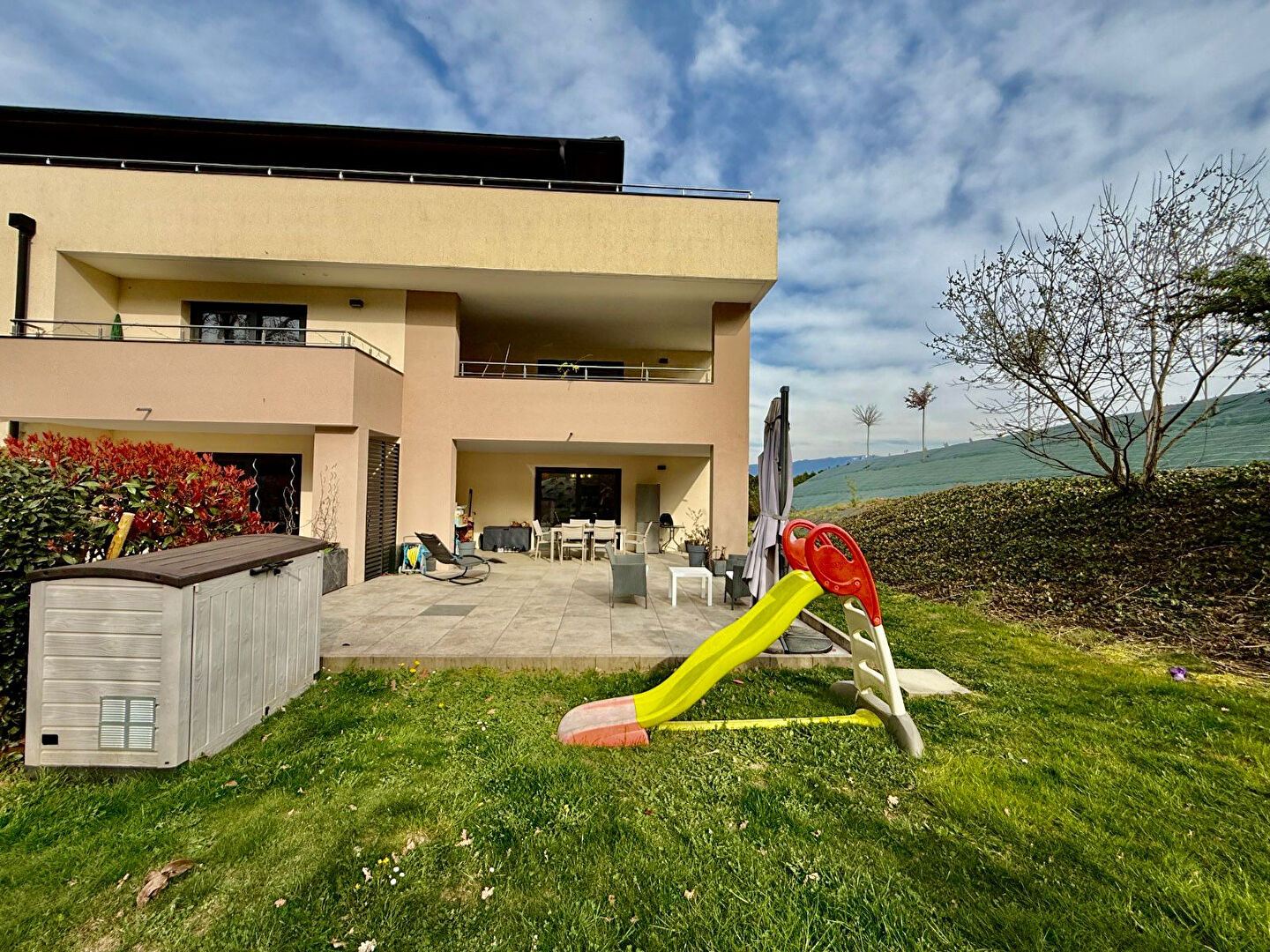 EXCLUSIVITE IMMODEC, Niché sur les premières hauteurs de RUMILLY, au sein d'une copropriété de standing construite en 2017 ce vaste et bel appartement offre le compromis parfait entre maison et appartement ! Grace à sa grande terrasse et son jardin privatif, vous pourrez profiter de la vie en extérieur sans les contraintes de l'entretien. Situé au calme tout en étant à 5min du centre ville et des commodités en voiture, il est le bien parfait pour celles et ceux à la recherche de la campagne à la ville. Sa belle pièce de vie lumineuse avec sa cuisine équipée le tout donnant sur la terrasse sont parfait pour une vie de famille. Le chauffage est assuré par une géothermie avec une base au sol, Menuiseries extérieures en aluminium double vitrage avec volets roulants motorisés, portes intérieures en bois plein. En annexes, vous retrouverez : Une cave, un garage et stationnement de copropriété aisé... Ce bien vous est proposé par l'agence IMMODEC. Pour tous renseignements complémentaires ou visites, n'hésitez pas à contacter votre agence LOCALE et INDÉPENDANTE. Nous nous ferons un plaisir de vous accompagner dans votre projet d'acquisition, vente ou investissement locatif !