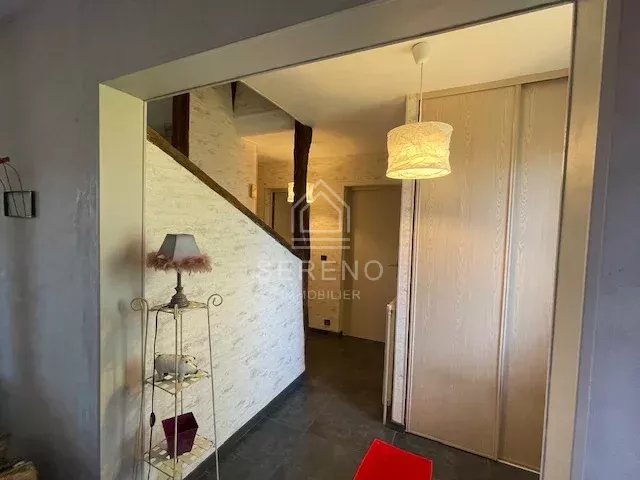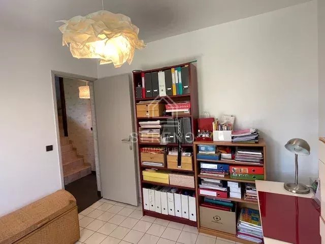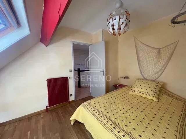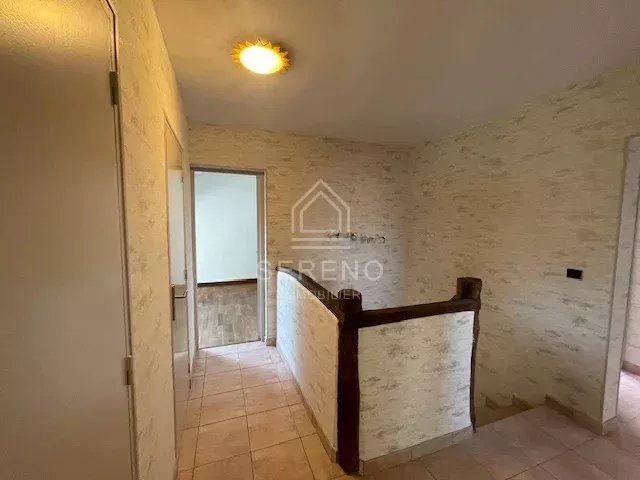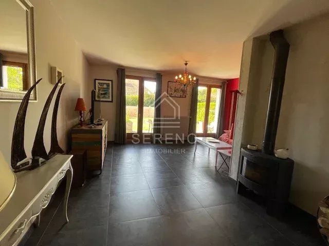 Au rez-de-chaussée et rez-de-jardin : entrée avec placards, séjour traversant de plus de 30m2 avec poêle à bois, cuisine aménagée de 12m2 mitoyenne au séjour, chambre-bureau de 8, 76 m2, salle d'eau mitoyenne, WC séparé, placards, rangements et accès au sous-sol. A l'étage, palier desservant 3 chambres dont une de plus de 17m2 au sol, lingerie pouvant servir de chambre, dressing, salle de bains et WC séparé. Sous-sol total, comprenant grand garage, buanderie et une pièce à usage de salle de jeux ou de chambre éclairée. Agréable jardin de 838m2, avec 2 terrasses et possibilité de vérandas, dont la principale à l'arrière de la maison exposée Sud/Ouest, ainsi qu'un chalet et abri au fond du jardin.