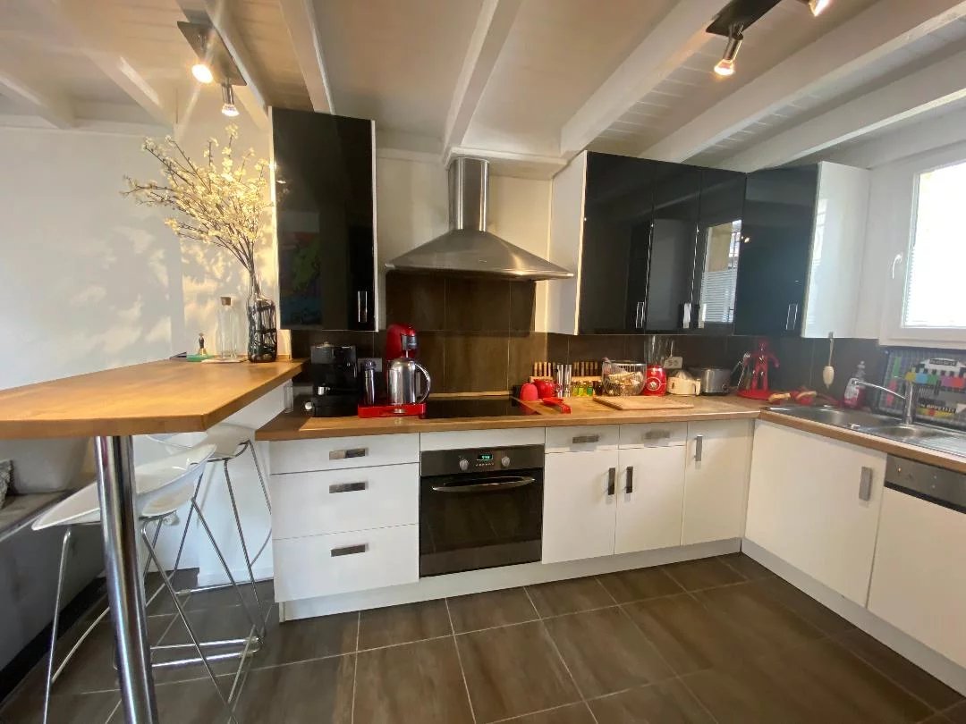 Cet adorable appartement enrobé dans un corps de maison en pierre, aux poutres apparentes, baignant dans une ambiance chaleureuse et au coeur d'un quartier extrêmement recherché, connaît une superficie de 95,48 m2. Une entrée vous mène d'un côté à une buanderie ainsi qu'un wc. De l'autre côté nous trouvons le salon/sam ouvert sur une vaste et élégante cuisine US entièrement aménagée et équipée. La chambre du rdc est dotée d'une salle d'eau munie de 2 vasques ainsi que de placards. L'étage offre 2 chambres judicieusement agencées ainsi qu'une seconde salle d'eau et un second wc.