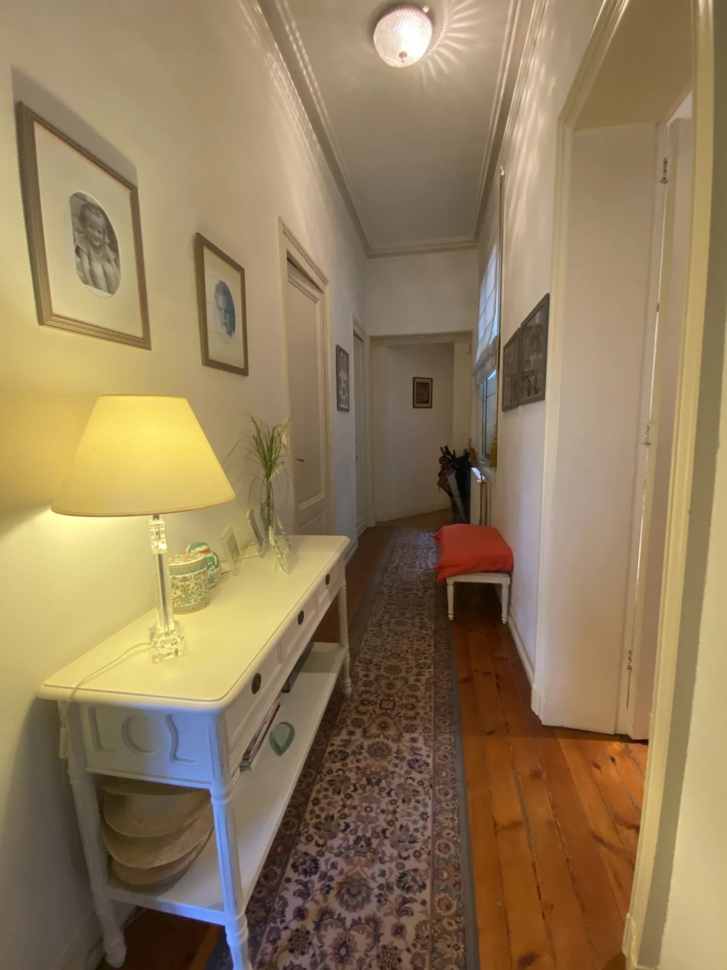 Il se compose d'une entrée desservant un salon/salle à manger donnant sur balcon filant, une cuisine indépendante dotée de sa souillarde, un couloir menant au coin nuit composé comme suit : 2 chambres dont une avec salle d'eau, un dresssing et une grande salle de bain dont l'accès se fait par 2 portes indépendantes. Une jolie cave voûtée de 16 m2 complète ce bien.