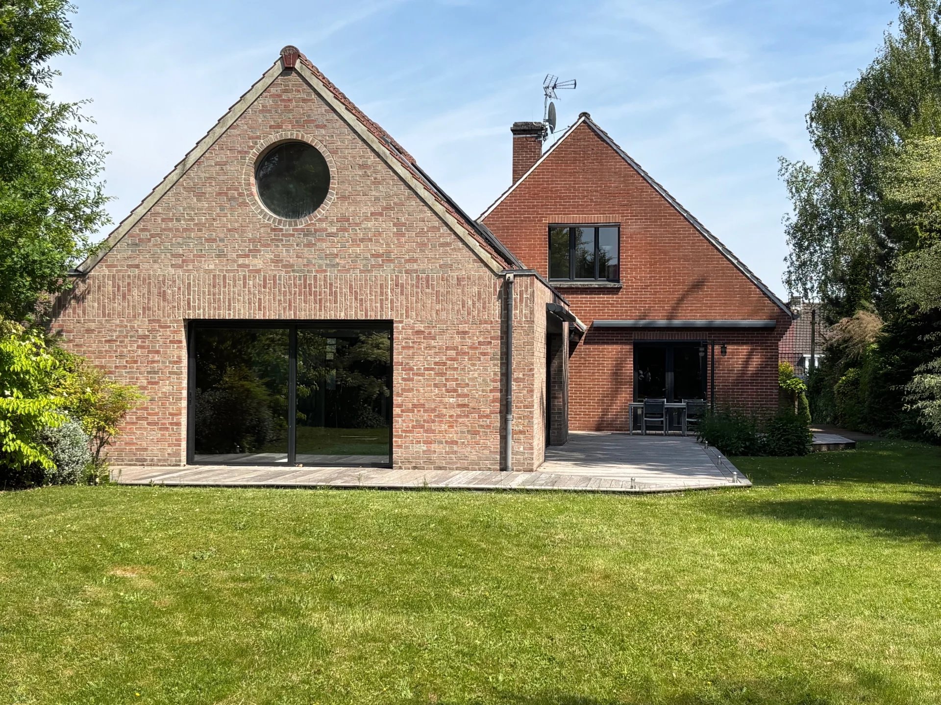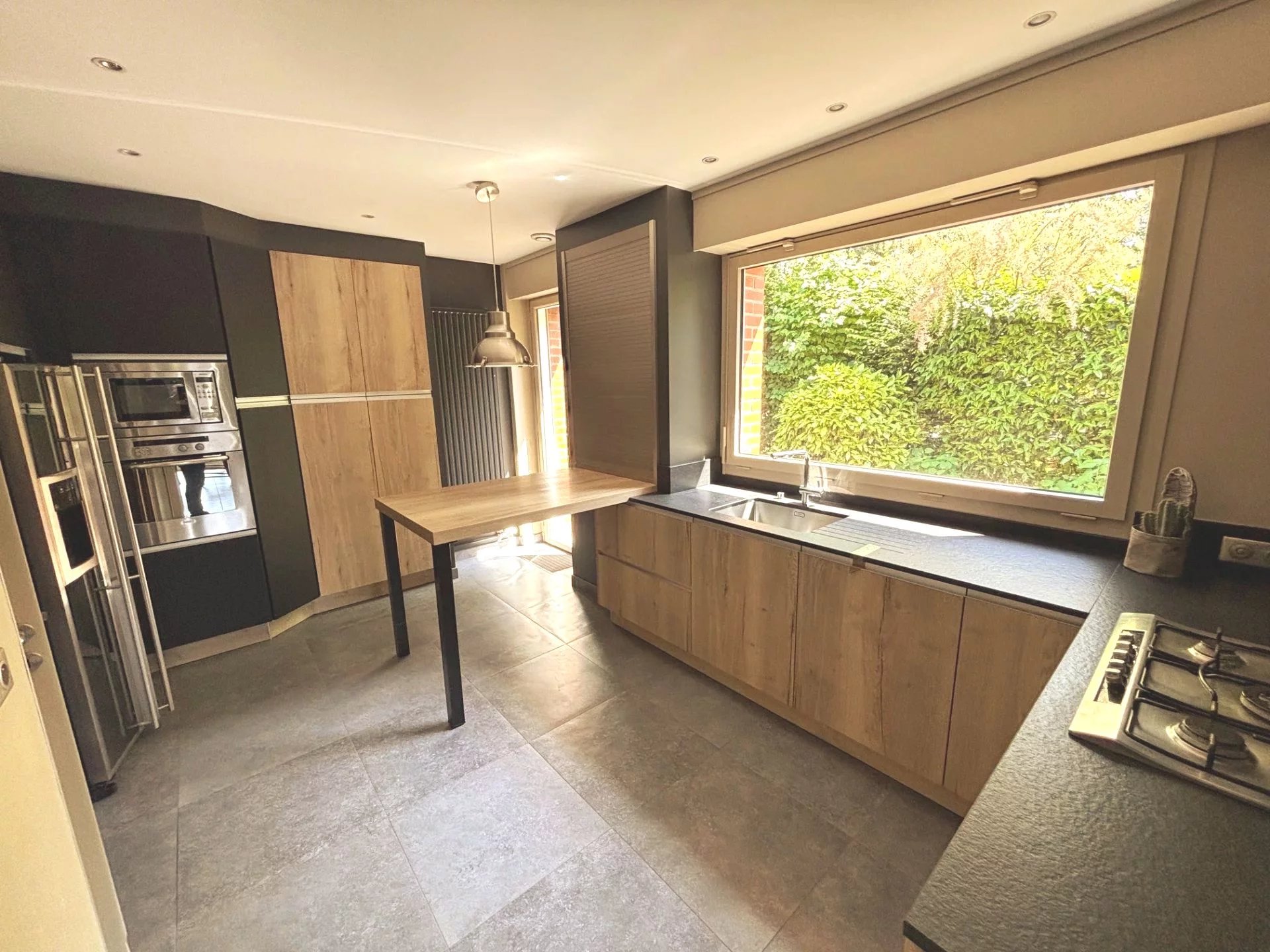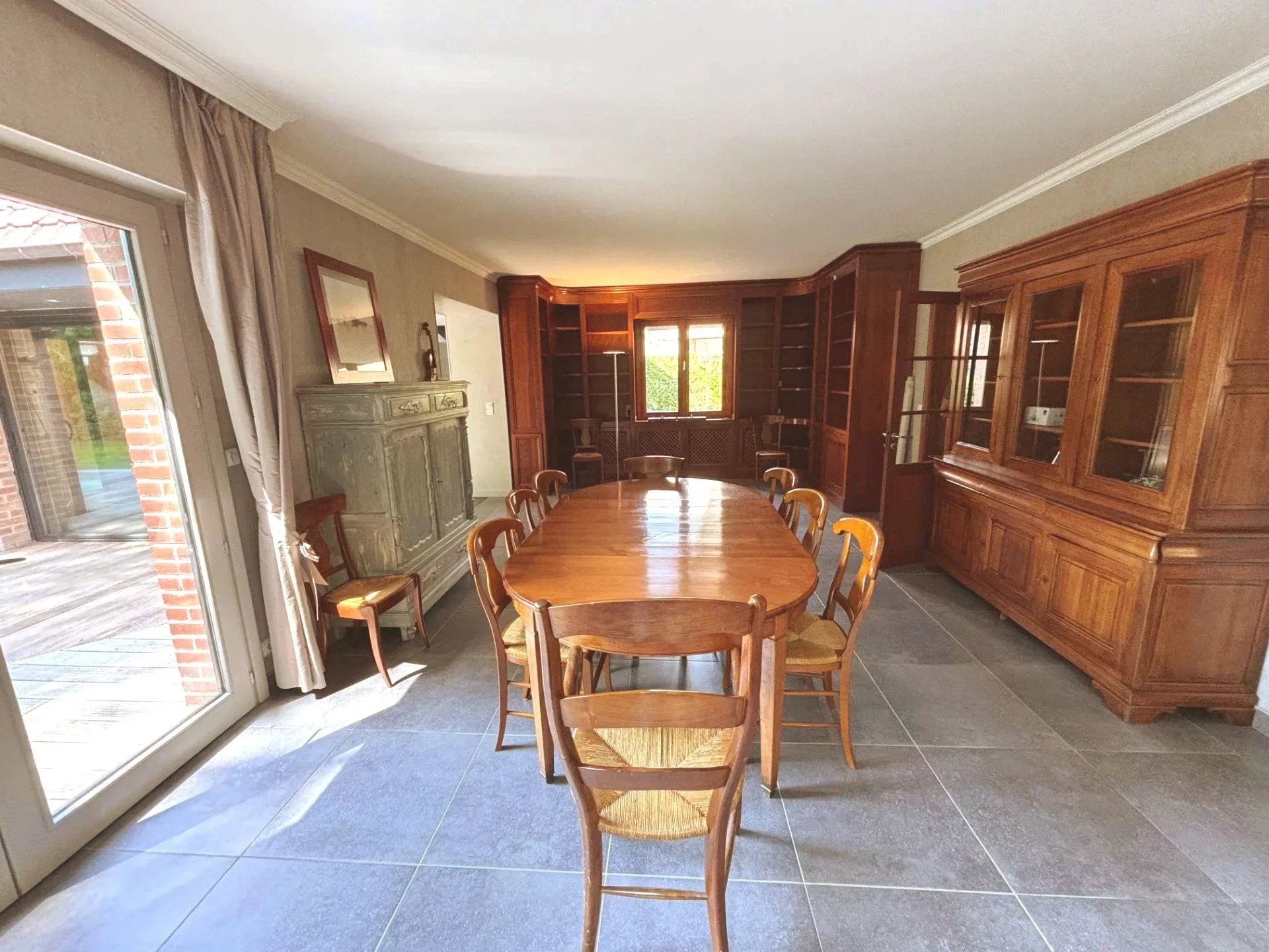 Toute votre attention pour cette magnifique demeure bâtie sur 1500 m² et située entre Roncq et Halluin. Vous serez séduits par ses volumes, sa luminosité et son jardin planté. Plus qu'une habitation, cette maison, disposant d'un accès handicapé, pourrait facilement accueillir des professionnels de santé et du bien être. Au rez-de-chaussée, une entrée dessert un séjour double comprenant une partie salle à manger avec bibliothèque et une partie salon avec coin bar, le tout sur plus de 70 m², une grande cuisine équipée de marque Barbry et un espace nuit composé d'une chambre et d'une salle de douche. Attenant au salon, sous un toit cathédrale, on retrouve un espace détente de plus de 90 m² bâti en 2005 avec piscine chauffée (8x3,5 mètres), spa, vestiaire et douche. L'ensemble est équipé de grandes baies vitrées donnant sur la terrasse et le jardin. A l'étage, un palier dessert 3 chambres dont un espace parental avec dressing et une salle de bain. Une cinquième chambre, accessible par le salon dispose d'un point d'eau. La maison dispose d'un sous-sol d'environ 100m² avec deux garages, une cave à vin, une chaufferie et un local technique pour la piscine. La maison est protégée par un portail automatique ouvrant sur 4 places de stationnement et un car port 2 voitures. A l'arrière de la parcelle, une terrasse de plus de 100 m² et un magnifique jardin arboré offrent un cadre de vie rare sur le secteur. L'état technique du bien est très bon, la maison est équipée de deux pompes à chaleur pour le chauffage et la piscine. Des panneaux photovoltaïques ont été posés sur l'extension. Toutes les menuiseries sont en double vitrage avec volets roulants électriques. Il ne vous reste qu'à apporter votre touche personnelle à la décoration afin d'apprécier et profiter de cette prestation unique. A voir sans tarder!
