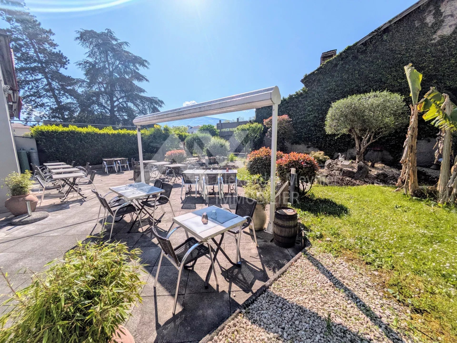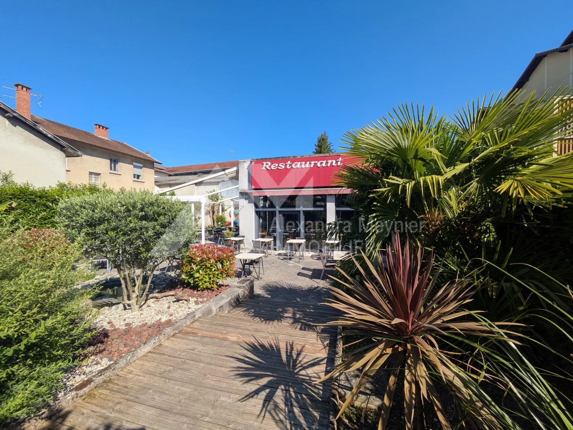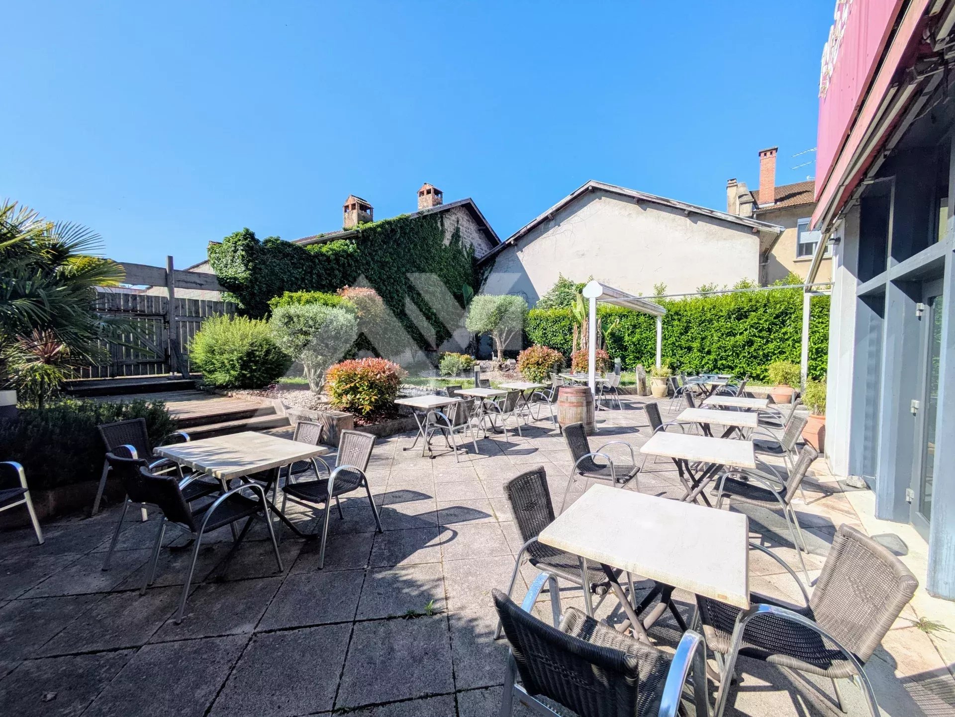 Bel emplacement et beau potentiel pour ces murs et ce fonds de commerce "restaurant-bar" situé à SAINT-MARCELLIN, proche de la gare et du centre-ville à pied. Ce tènement immobilier d'une superficie totale d'environ 400m² se compose de la façon suivante: La partie restaurant d'environ 293m² se situe en rez-de-chaussée. En parfait état, il comprend deux salles de restauration pouvant accueillir 100 couverts, une partie bar, une cuisine professionnelle équipée (liste de mobiliers sur demande), une pièce de stockage, sanitaires et un bureau. A l'extérieur, vous serez séduits par cette grande terrasse avec une capacité de 100 couverts, agrémentée de stores électriques haut de gamme et de son jardin joliment arboré. En sous-sol, une cave de 30m² à usage de stockage. A l'étage, un appartement de fonction d'une superficie habitable d'environ 67m², comprenant une pièce vie avec espace cuisine, deux chambres avec placards, salle d'eau, toilettes et une grande terrasse privative en situation dominante. L’établissement fonctionne toute l’année, clientèle fidèle et bonne réputation locale. Nombreuses places de stationnement à proximité. Façade neuve, électricité aux normes, double vitrage récent et licence IV. Ce restaurant restera en activité jusqu'à trouver son futur propriétaire. Possibilité de vendre uniquement les murs. Plus d'informations sur demande.