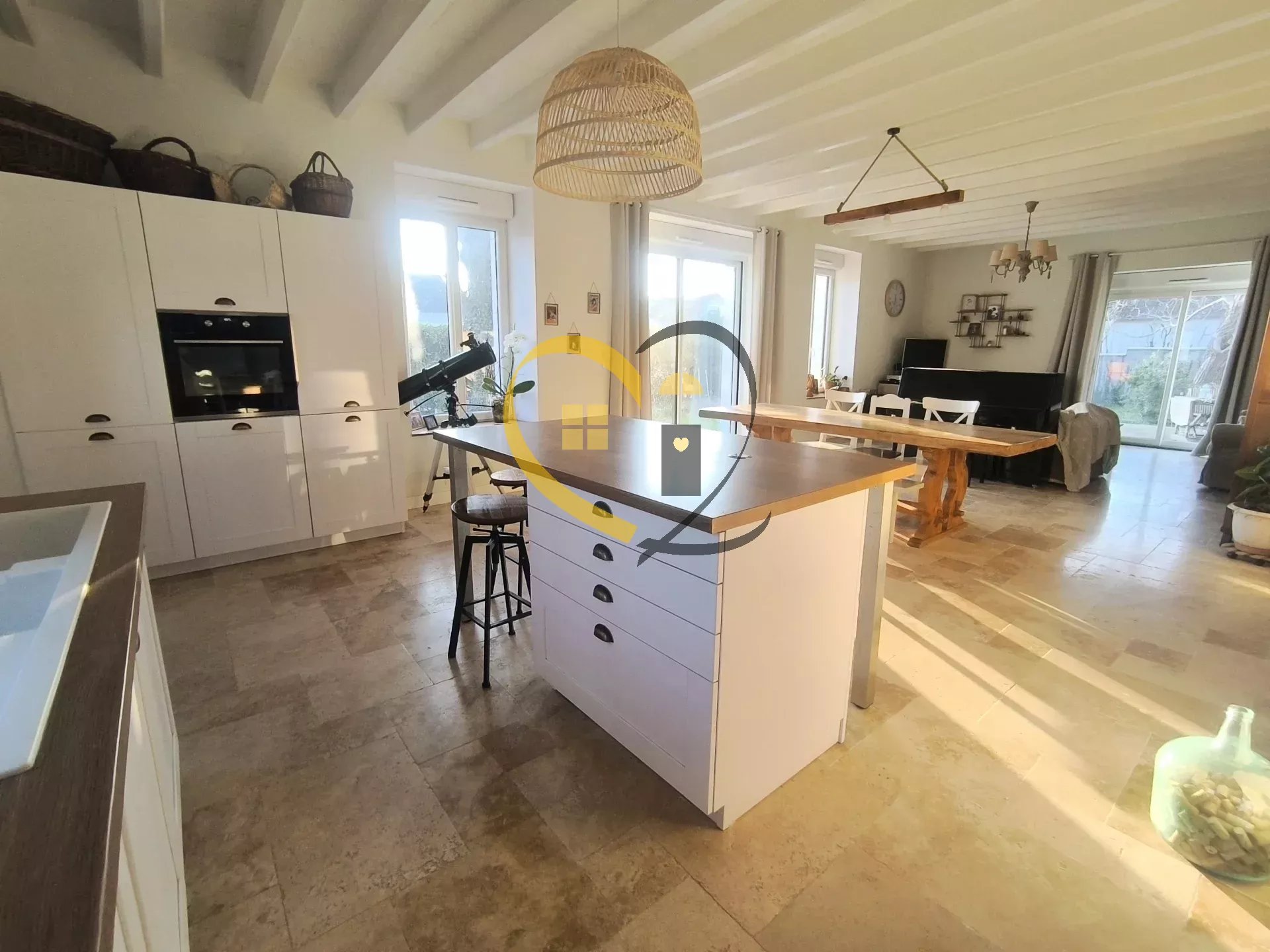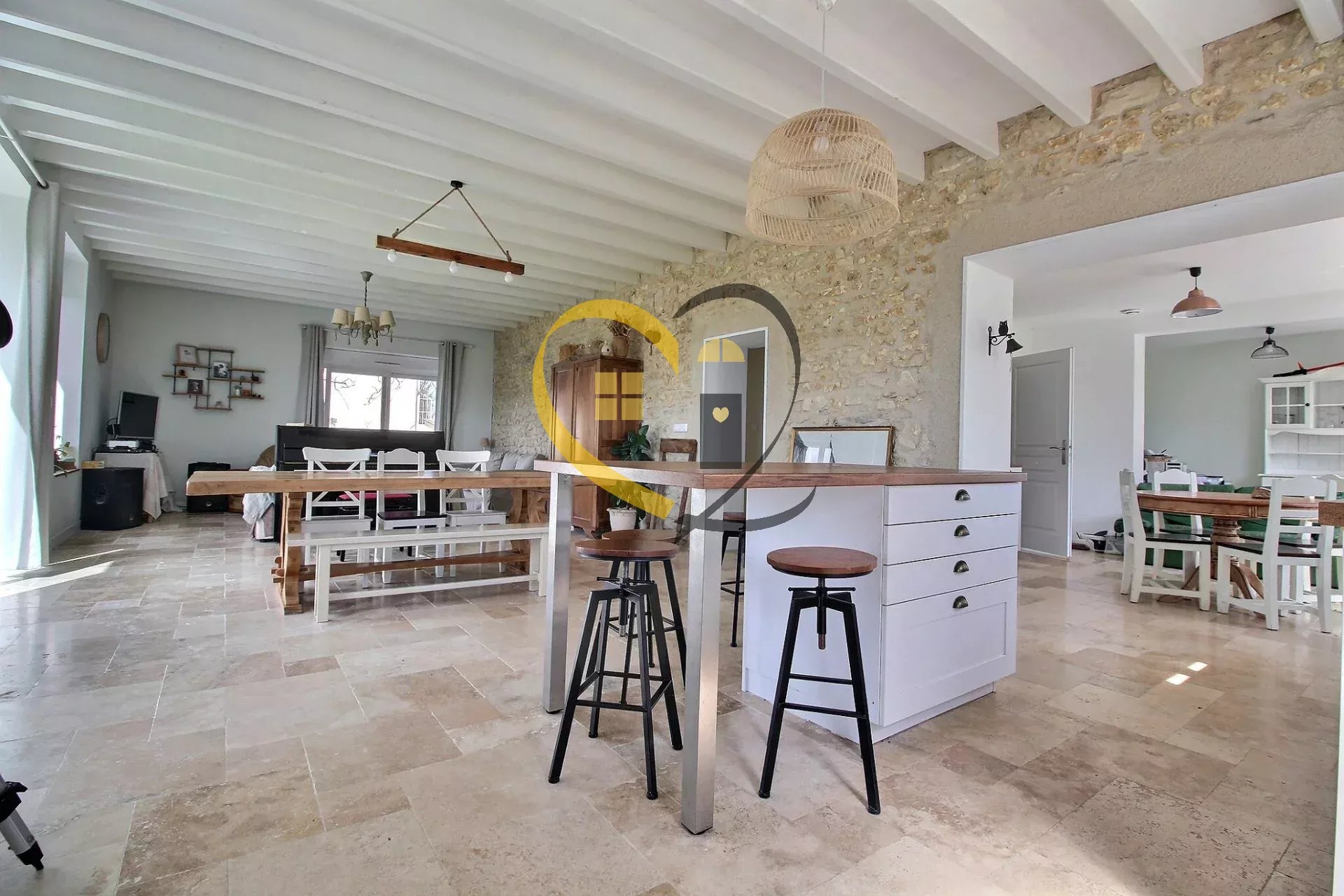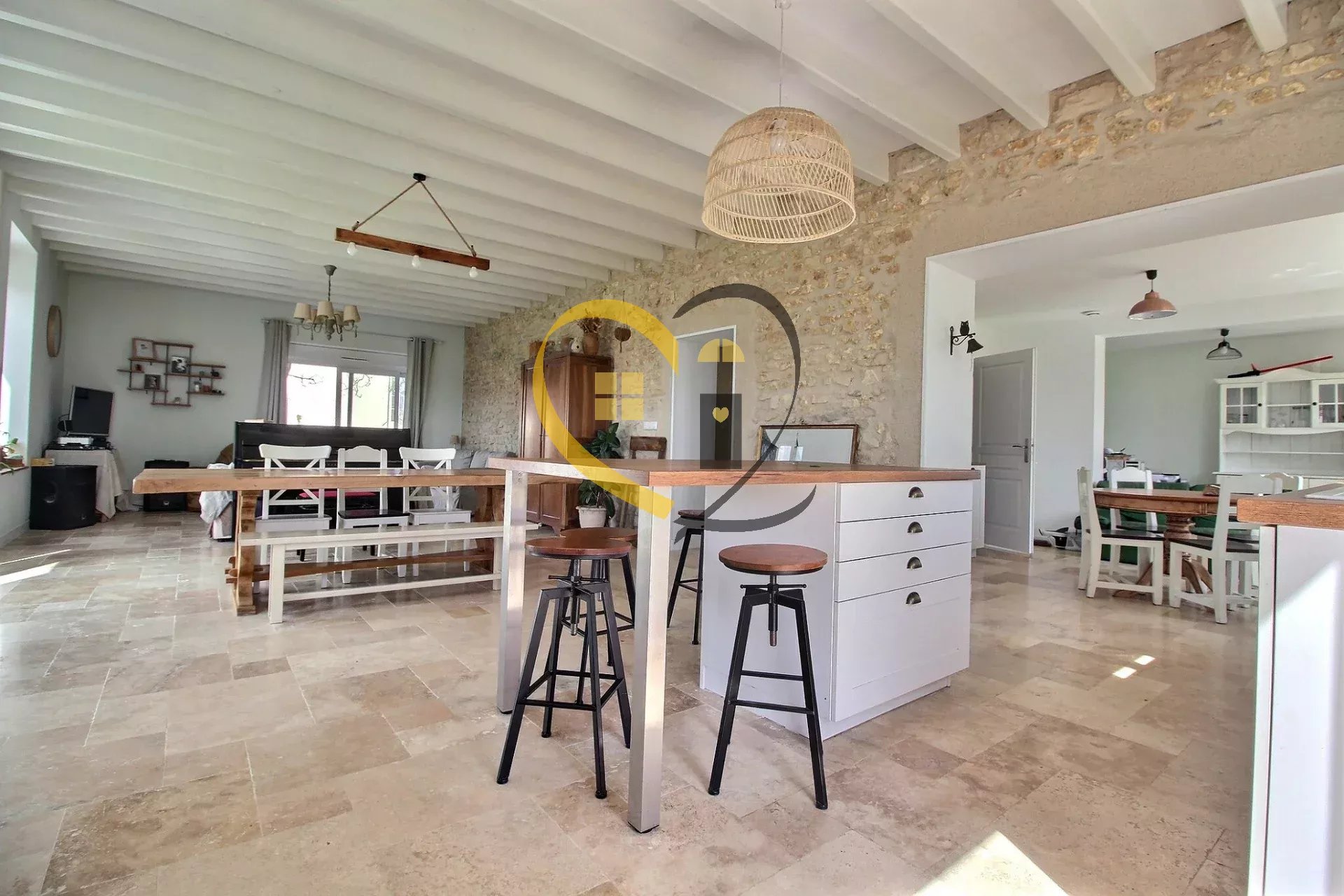 Venez visiter cette magnifique longère rénovée en 2019 de 254M2 idéale pour une grande famille avec ses 7 chambres située à Bourges sur un terrain de 1565M2 avec une cave. Une dépendance avec un toit terrasse et un espace ouvert sous un ancien hangar. Une grande entrée, une pièce dressing où vous pouvez déposer vos vestes et chaussures, une grande buanderie avec une arrivée directe du vide linge de la salle de bain de l'étage, un couloir qui dessert un grand espace ouvert qui se compose d'un salon avec un mur en pierre donnant sur une terrasse en bois par une baie vitrée, une cuisine ouverte très lumineuse équipée et aménagée avec un ilot central ainsi qu'une salle à manger donnant sur l'extérieur. Une suite parentale avec son dressing et salle de bain plus douche à l'Italienne et WC en travertin plus un WC et lave main séparé, le tout avec chauffage au sol et travertin. Un bel escalier très lumineux grâce à une belle ouverture vous conduit à l'étage tout en parquet et climatisation réversible où vous découvrirez 6 grandes chambres. Une salle de bain avec douche à l'Italienne, un WC séparé ainsi qu'une salle de douche et un accès à la terrasse à aménager au-dessus de la dépendance. Les menuiseries sont en PVC blanc à l'intérieur et gris à l'extérieur avec volets électriques. Pompe à chaleur et toiture de 2019. Terrain clôturé et arboré. A visiter absolument pour un beau projet familial. Pour des photos supplémentaires et des informations détaillées telles que les mesures et la taxe foncière. veuillez visiter notre site web Pour planifier une visite ou accéder à la visite virtuelle n'hésitez pas à contacter Annabel. votre agent disponible 7j/7 Les informations concernant les risques associés à cette propriété peuvent être consultées sur le site web Géorisques. Agent commercial (Entreprise individuelle) honoraires TTC Charges propriétaires
