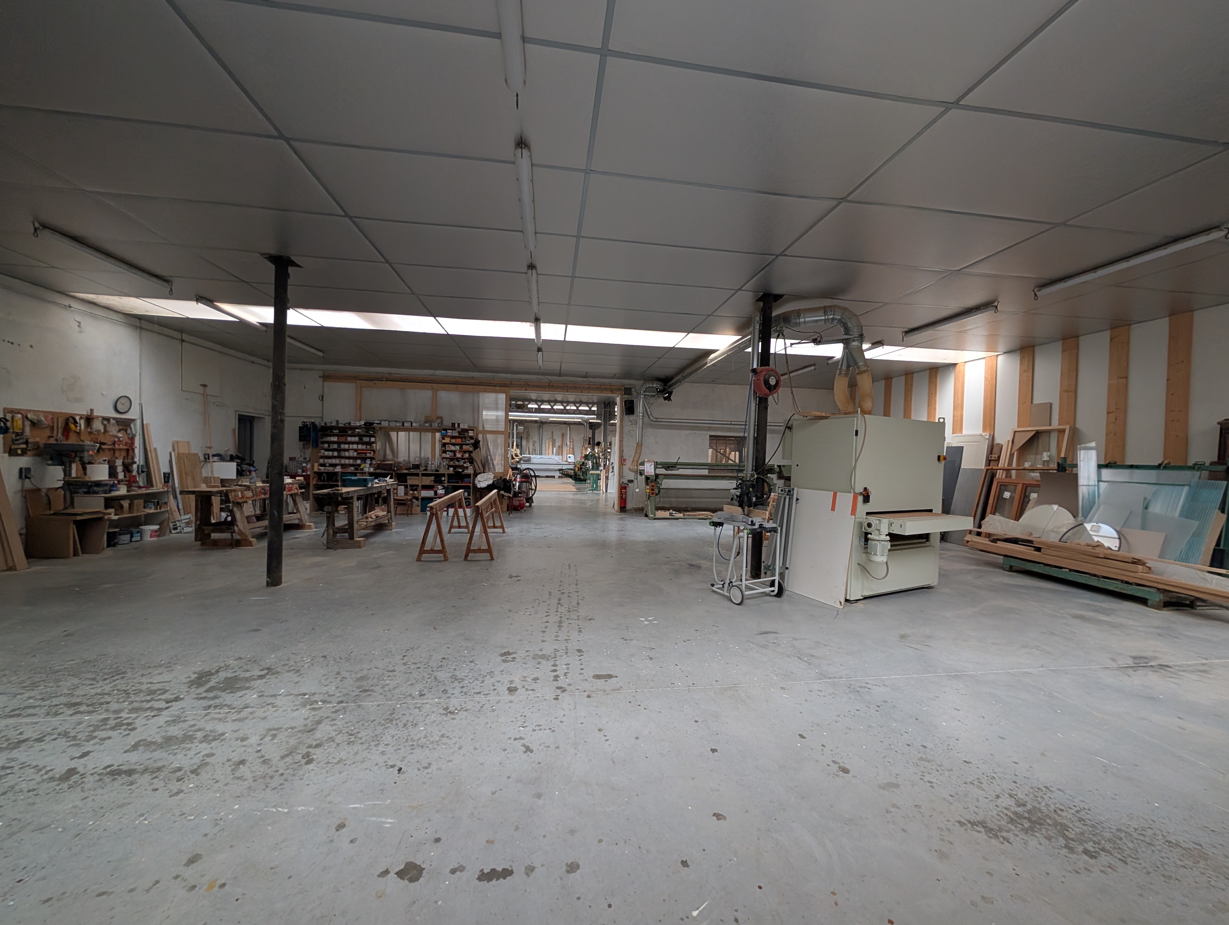 Le bâtiment de 830m2, équipé, vous sera loué et si besoin vendu. Local : un abri à bois, deux ateliers, 1 bureau, 1 grenier, 1 réserve et un coin cuisine/repos. Le batiment se situe sur une parcelle de 1269m2, permettant du stationnement privatif et un grand portail de 12m. Le prix de la location est de 1400? mensuel.