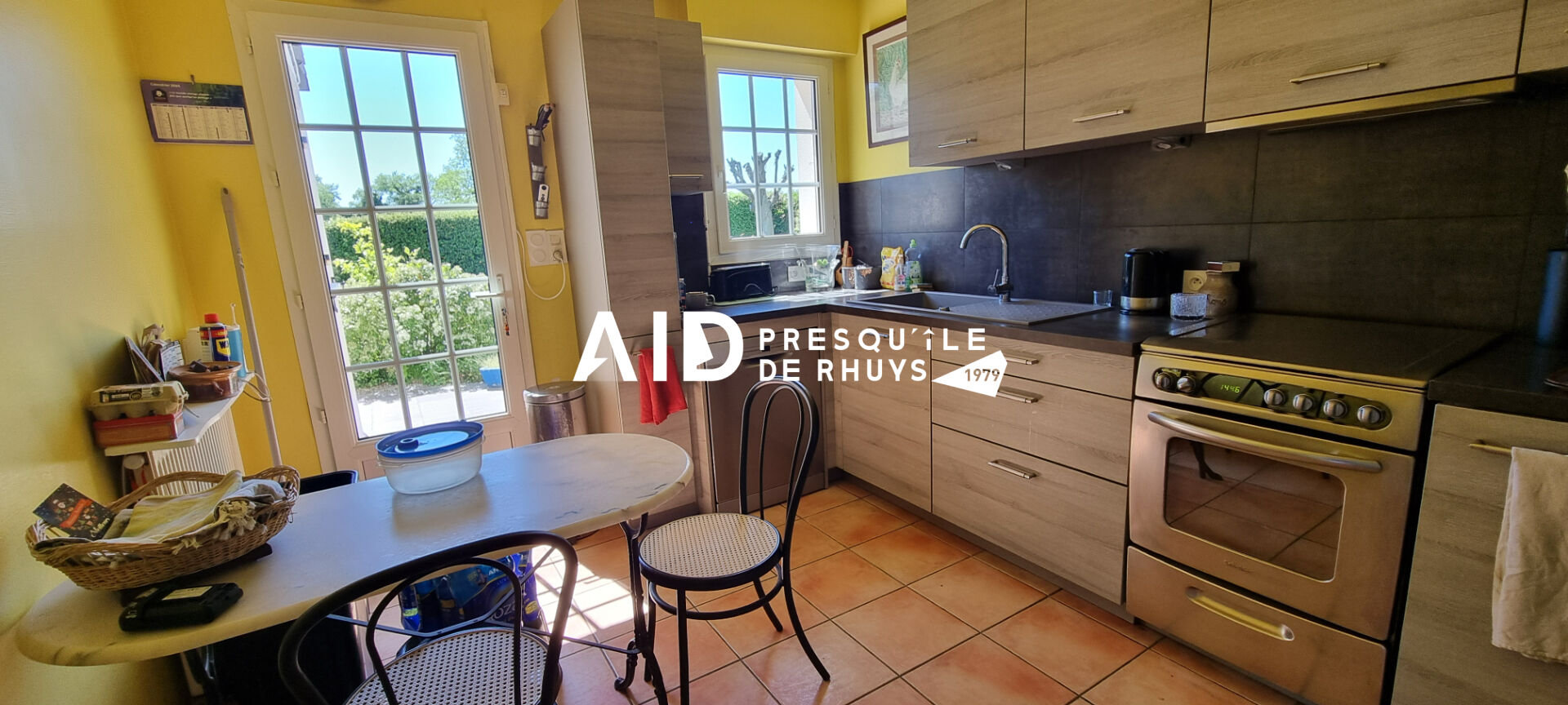 Nichée dans une impasse résidentielle prisée, à proximité immédiate du Golfe, cette jolie maison néo-bretonne saura vous séduire par son agencement fonctionnel, son exposition idéale plein Sud, et son cadre paisible, sans vis à vis. Au rez-de-chaussée, une entrée accueillante dessert une lumineuse pièce de vie ouvrant sur une terrasse carrelée, ainsi qu'une cuisine indépendante, aménagée et entièrement équipée récente. Un dégagement avec placard mène à l'espace nuit, composé d'une chambre, d'une salle d'eau et de toilettes séparées. A l'étage, vous trouverez trois chambres confortables, une salle de bains et un second WC. Implantée sur un terrain clos et joliment paysagé, la maison bénéficie également d'un garage indépendant, parfait pour le stationnement ou le rangement. (5.00 % honoraires TTC à la charge de l'acquéreur.)