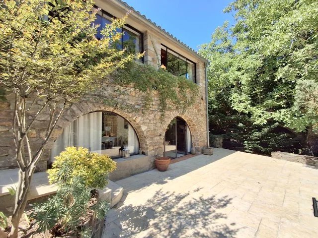 Mas A VENDRE Sud Ardèche, 07460/EN EXCLUSIVITE, Proche BANNE, A 2 minutes des commodités, joli mas en pierres offrant environ 195m² habitable. Intérieur très cosy et chaleureux, comprenant une cuisine, salon-séjour, grande véranda, 3 chambres, salle d'eau, wc, en rez de chaussée, une grande pièce de vie avec chambre et salle d'eau. L'ensemble sur un terrain plat et arboré de 1600m² avec piscine. Ref/1525.