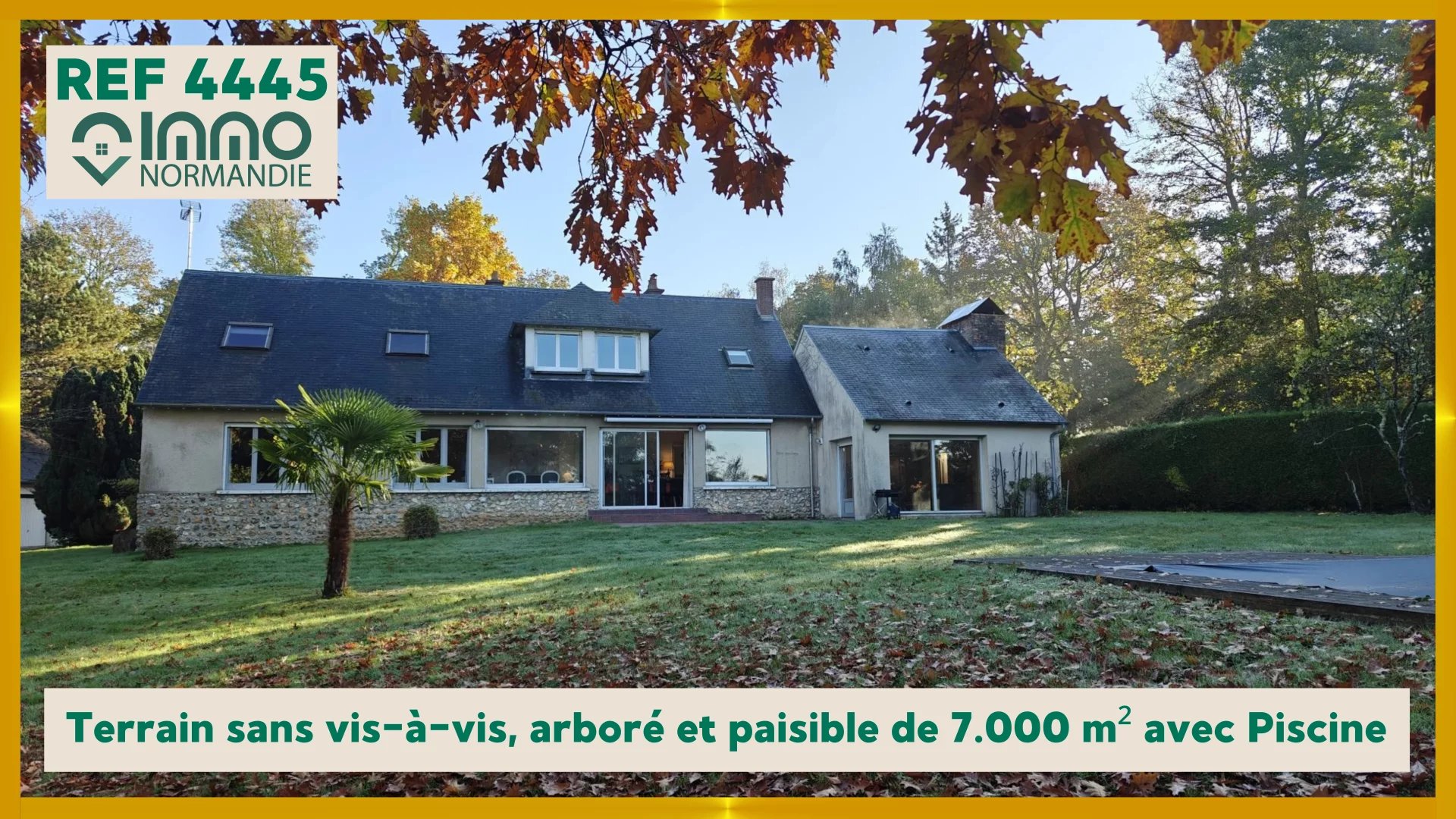 Venez découvrir cette magnifique propriété située dans un cadre privilégié en lisière de foret, qui offre l'espace dont vous avez besoin et une vue imprenable sur la vallée de la Risle, grâce à son grand salon/séjour baigné de lumière naturelle et sa vue panoramique, agrémenté de larges baies vitrées. Cette maison spacieuse et fonctionnelle saura vous séduire par ses volumes généreux et son ambiance chaleureuse. Accueillez votre famille et vos amis avec ses 7 chambres, son bureau, ses 2 salles de bains. Ce bien unique, alliant confort et tranquillité, est parfait pour une grande famille ou pour ceux qui recherchent un cadre de vie agréable à proximité de la nature, tout en disposant de nombreux espaces de vie intérieurs et extérieurs. N’attendez plus, venez visiter cette belle propriété au charme indéniable, située à deux pas de la nature tout en restant proche des commodités. Ce bien est composé comme suit : Rez-de-chaussée : Un vaste salon/séjour, second salon idéal pour moments de détente cuisine aménagée et équipée, couloir desservant 3 belles chambres, salle de bains, WC séparé À l'étage :4 chambres supplémentaires, un bureau, espace lingerie, seconde salle de bains avec WC. Extérieur : Terrain sans vis-à-vis, arboré et paisible d’environ 7.000 m² Dépendance comprenant un double garage et un espace de vie À l’étage de la dépendance, 2 grandes pièces pouvant être aménagées selon vos envies. Piscine creusée de 12 m par 6 m, idéale pour les moments de convivialité en famille ou entre amis Cave avec espace chaufferie fioul, double vitrage, tout à l'égout.