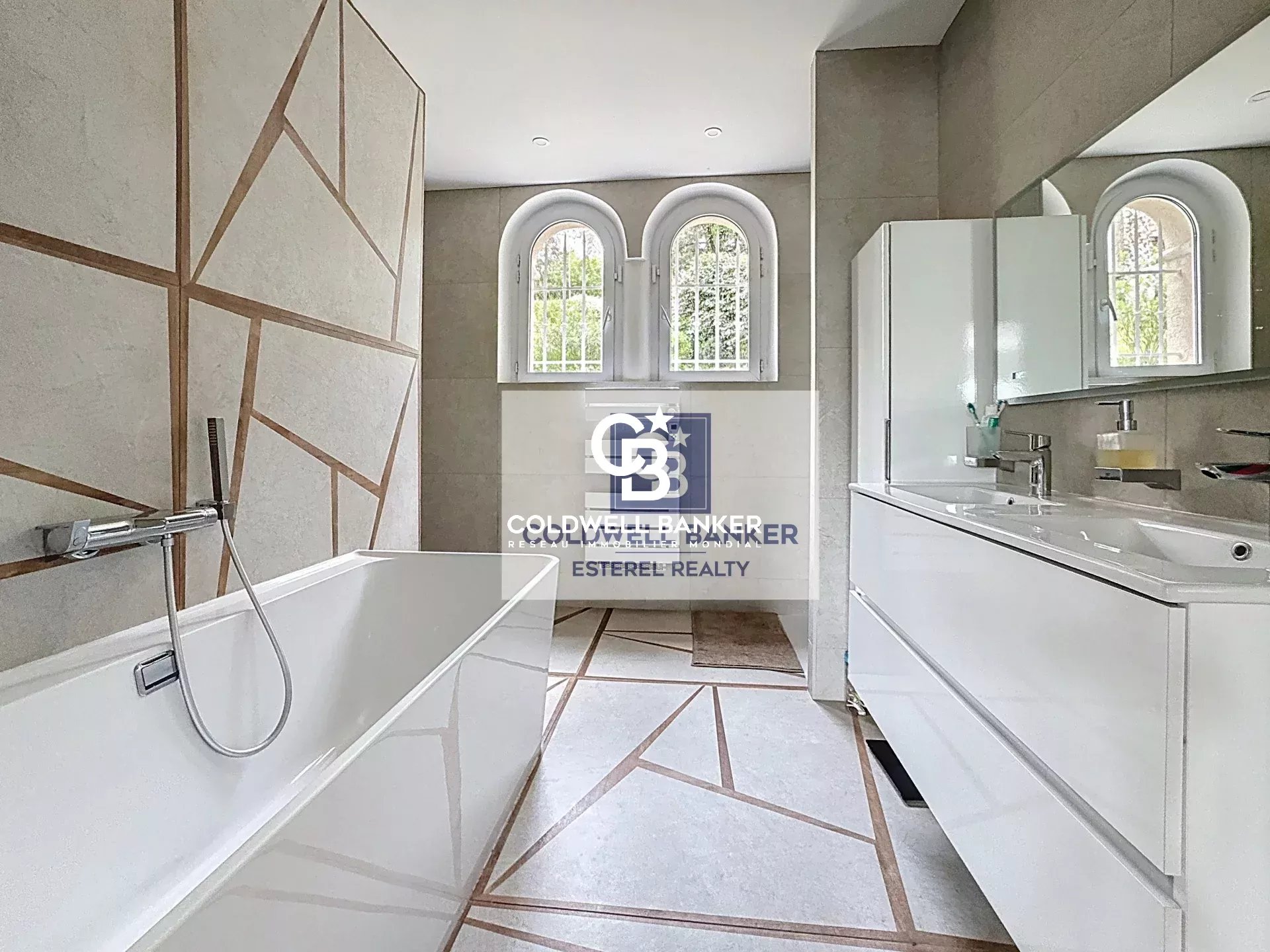 Dans l’intimité préservée d’un domaine privé, cette villa de standing rénovée avec un soin absolu incarne le luxe discret et l’art de vivre provençal dans toute sa noblesse. Les volumes généreux, les matières nobles et la lumière omniprésente créent une atmosphère rare, à la fois apaisante et inspirante. La vaste pièce à vivre de 76 m², baignée de lumière et ouverte sur le jardin, offre un cadre de sérénité où chaque détail a été pensé pour sublimer le quotidien. La suite parentale de plain-pied est un véritable cocon de confort et de raffinement avec ses deux dressings sur-mesure et sa salle de bain au design contemporain, et douche à l'italienne, À l’étage, deux chambres lumineuses s’ouvrent sur une belle terrasse offrant une vue panoramique. Une pièce polyvalente — salle de jeux ou bureau selon vos envies — complète cet espace, ainsi qu’une seconde salle de bain, un WC indépendant et un accès à un solarium exceptionnel. À l’extérieur, un jardin arboré aux essences méditerranéennes entoure une élégante piscine, véritable invitation à la détente. En complément, un grand garage en sous-sol, une cave et de vastes espaces de rangement apportent une réelle commodité, optimisant le confort au quotidien. Luxe discret, douceur de vivre et raffinement sont ici réunis, dans l’une des plus belles régions de France.