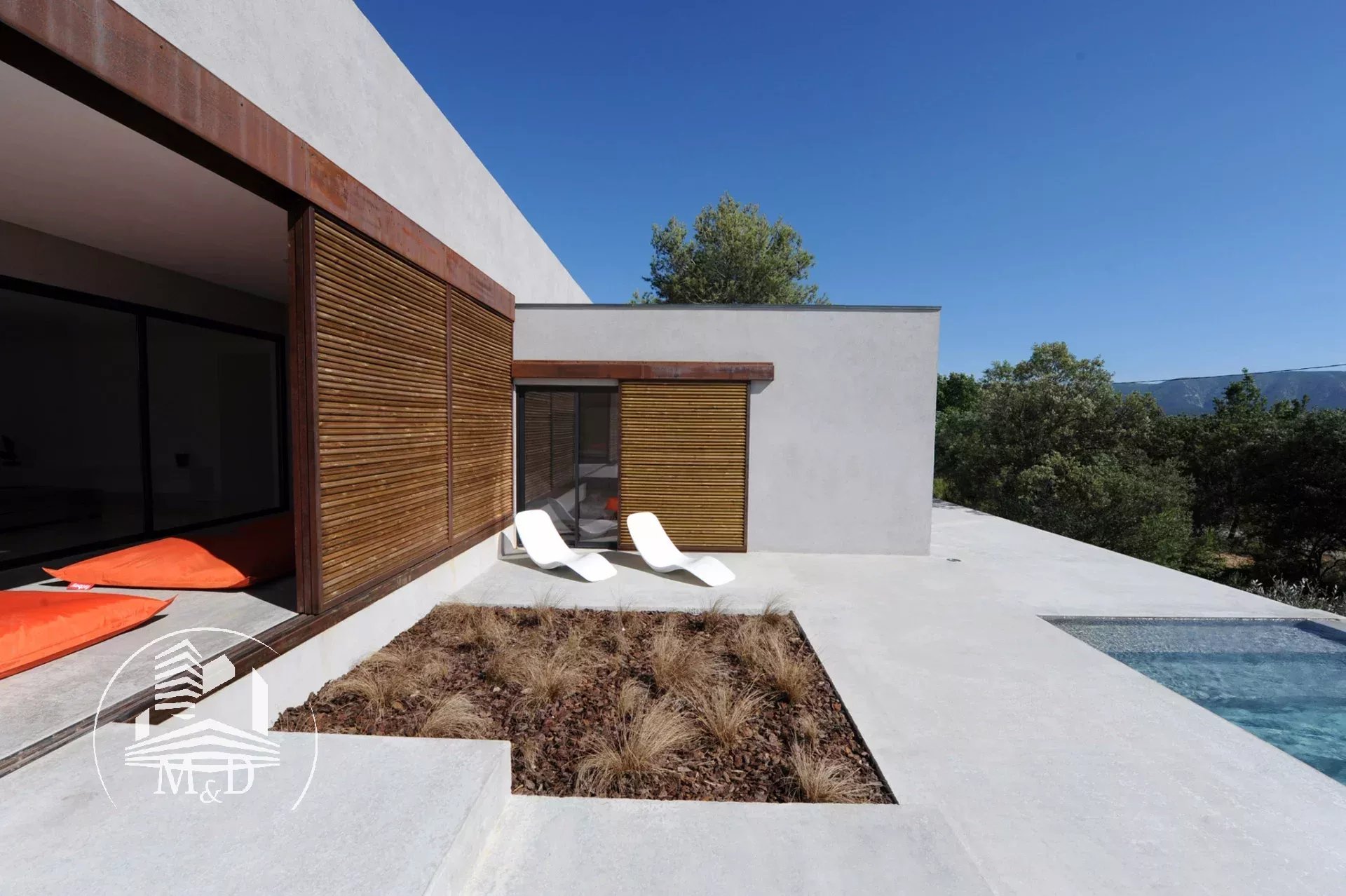 Construction sur mesure avec prestations de qualité au choix: domotique, chauffage au sol avec pompe à chaleur, climatisation réversible, volets roulants électriques en alu, menuiseries en alu gris anthracite, piscine... Plus d'infos sur notre site.