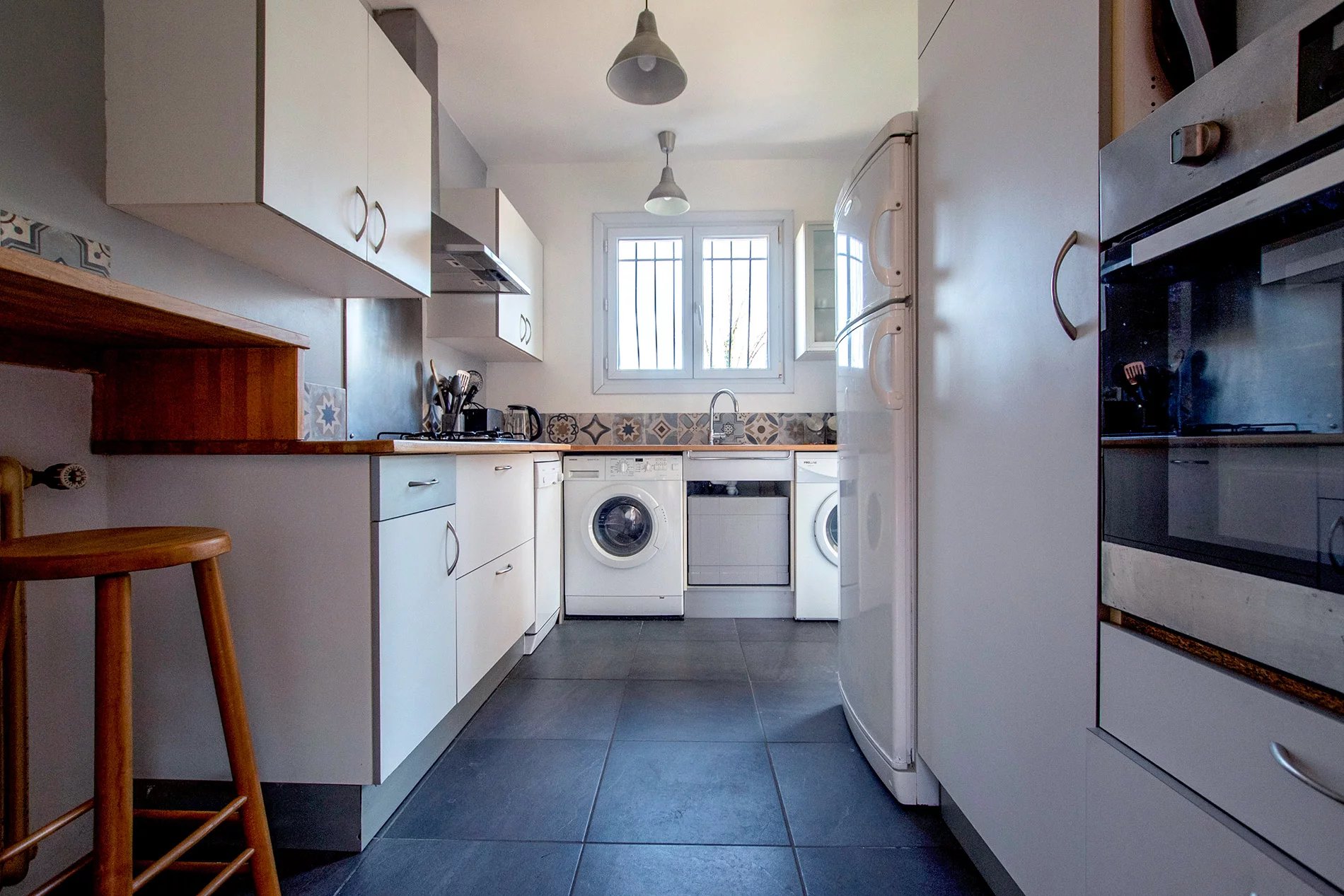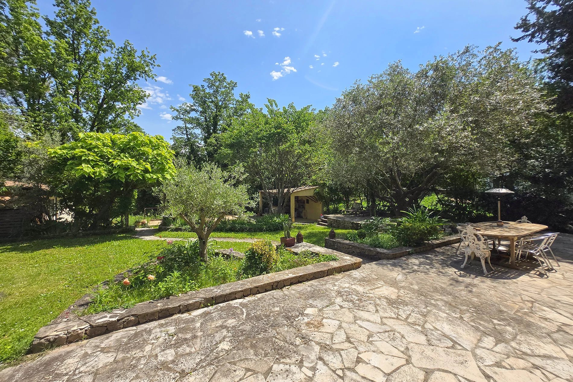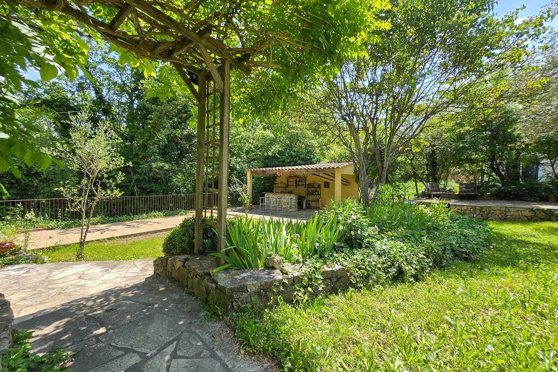 Une villa indépendante de 6 chambres à vendre située dans un quartier résidentiel recherché entre Valbonne et Plascassier. D'une superficie d'environ 170 m², la propriété se trouve sur un terrain partiellement paysagé de 1 819 m² dont la moitié est laissée en forêt naturelle menant à la rivière. La villa est composée de deux appartements séparés avec la possibilité de les relier en créant une ouverture intérieure ou de les laisser comme deux logements séparés offrant une opportunité de revenu locatif. Au rez-de-chaussée, vous trouverez un spacieux appartement de quatre pièces comprenant un salon, une cuisine, une buanderie, trois chambres, une salle de douche et des toilettes séparées. L'étage supérieur offre un autre appartement de quatre pièces comprenant un hall d'entrée, un salon, une cuisine séparée donnant sur une terrasse, deux chambres, un bureau et une salle de bains avec toilettes. La propriété dispose également d'une cuisine d'été, d'un atelier et de plusieurs places de parking. Le vaste jardin offre un grand espace extérieur pour profiter de la nature. En principe, il est possible d'avoir une piscine (autorisation définitive et autorisation du service d'urbanisme).