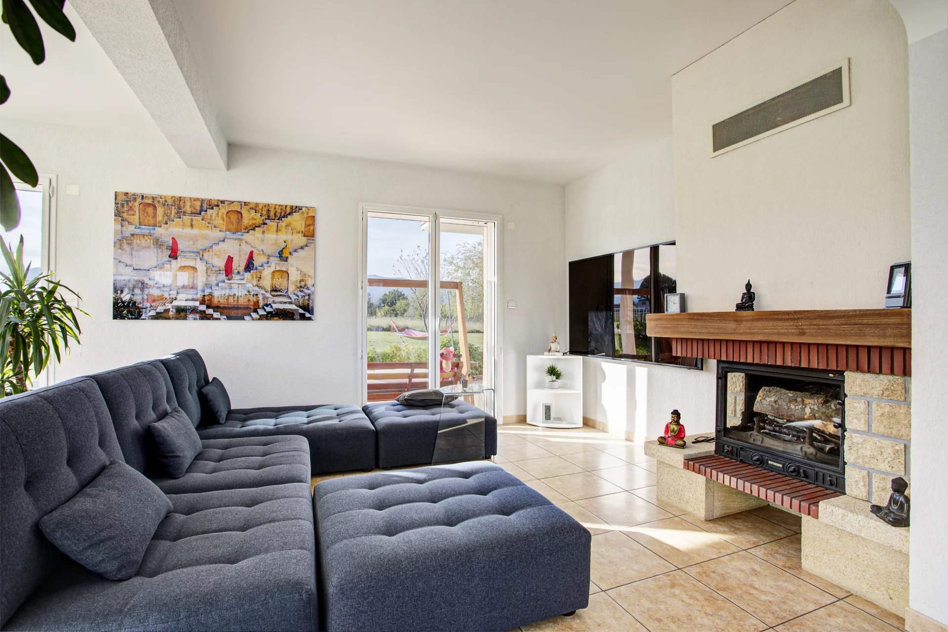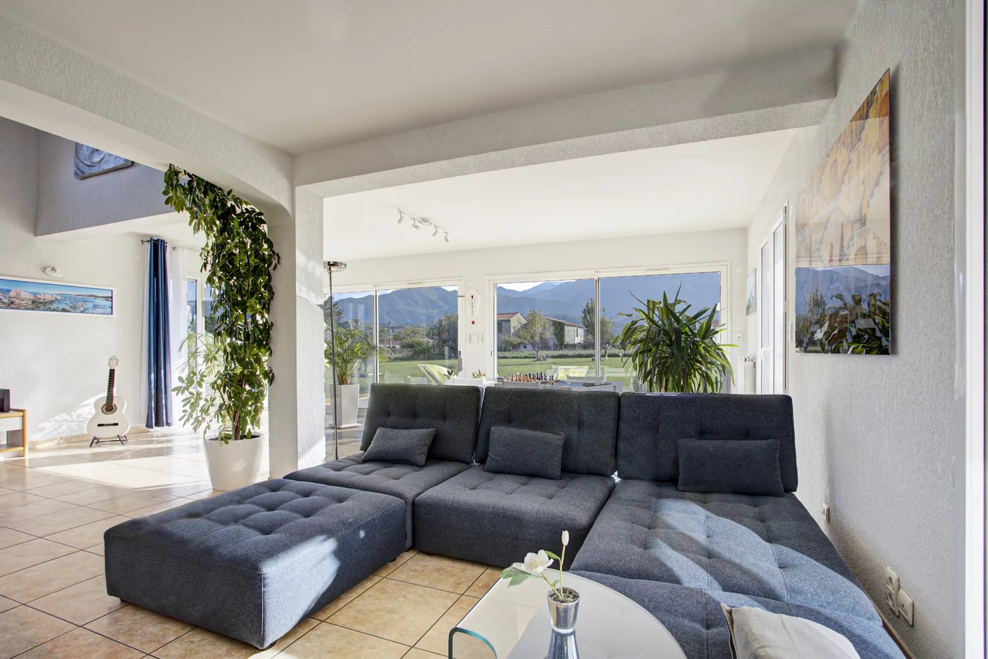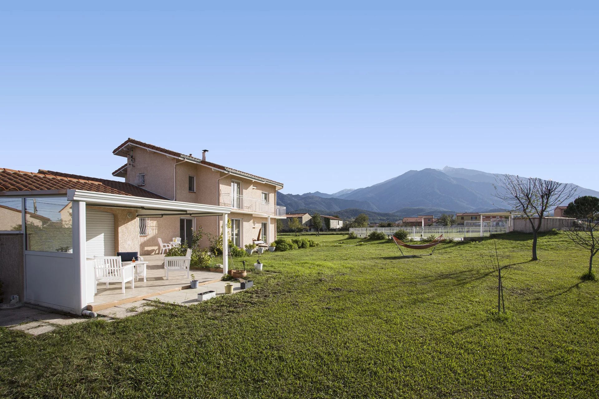 La maison se compose, au rez-de-chaussée d'un hall d’entrée desservant un grand séjour avec cheminée ouvrant sur une belle terrasse face au Canigou, d'une cuisine dînatoire, d'une chambre, d'un WC et d'une buanderie de 25m².