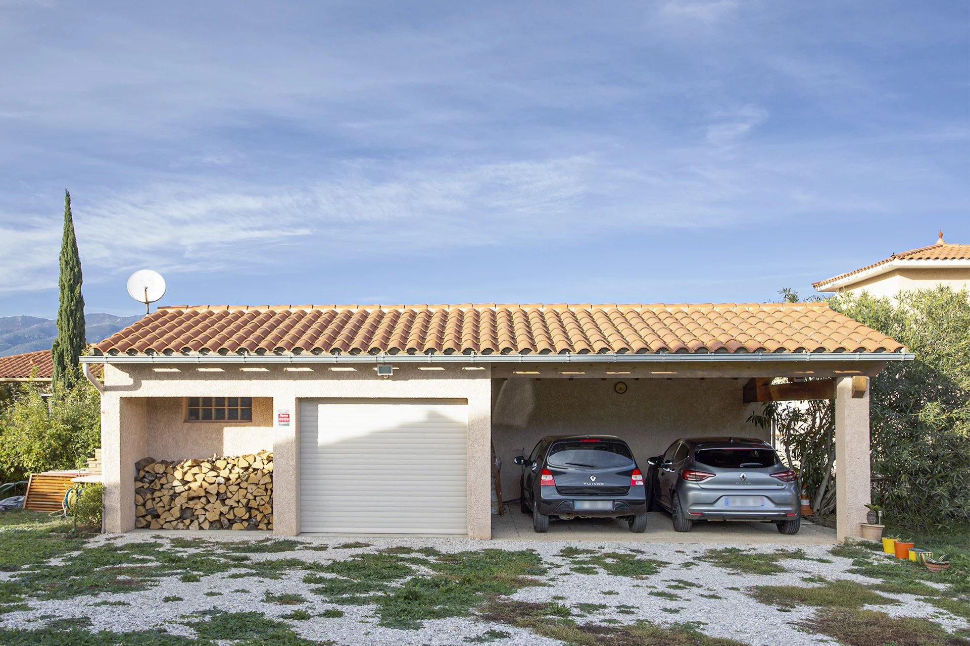 Sur le côté de la maison se trouve un terrain constructible de 2000m² environ qui permet d'imaginer la construction d'une deuxième villa.
