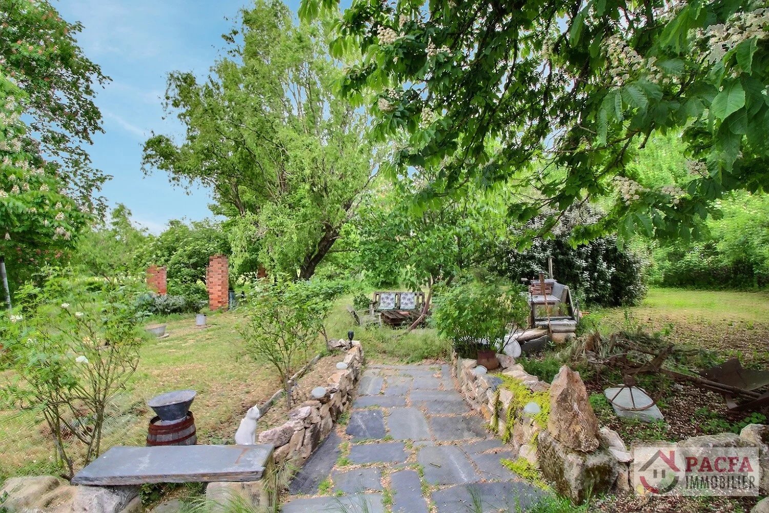 Il se développe sur un terrain arboré (marronnier, glycine, sureau, figuier...) de 4995 m² avec puits et vue imprenable sur la campagne environnante.