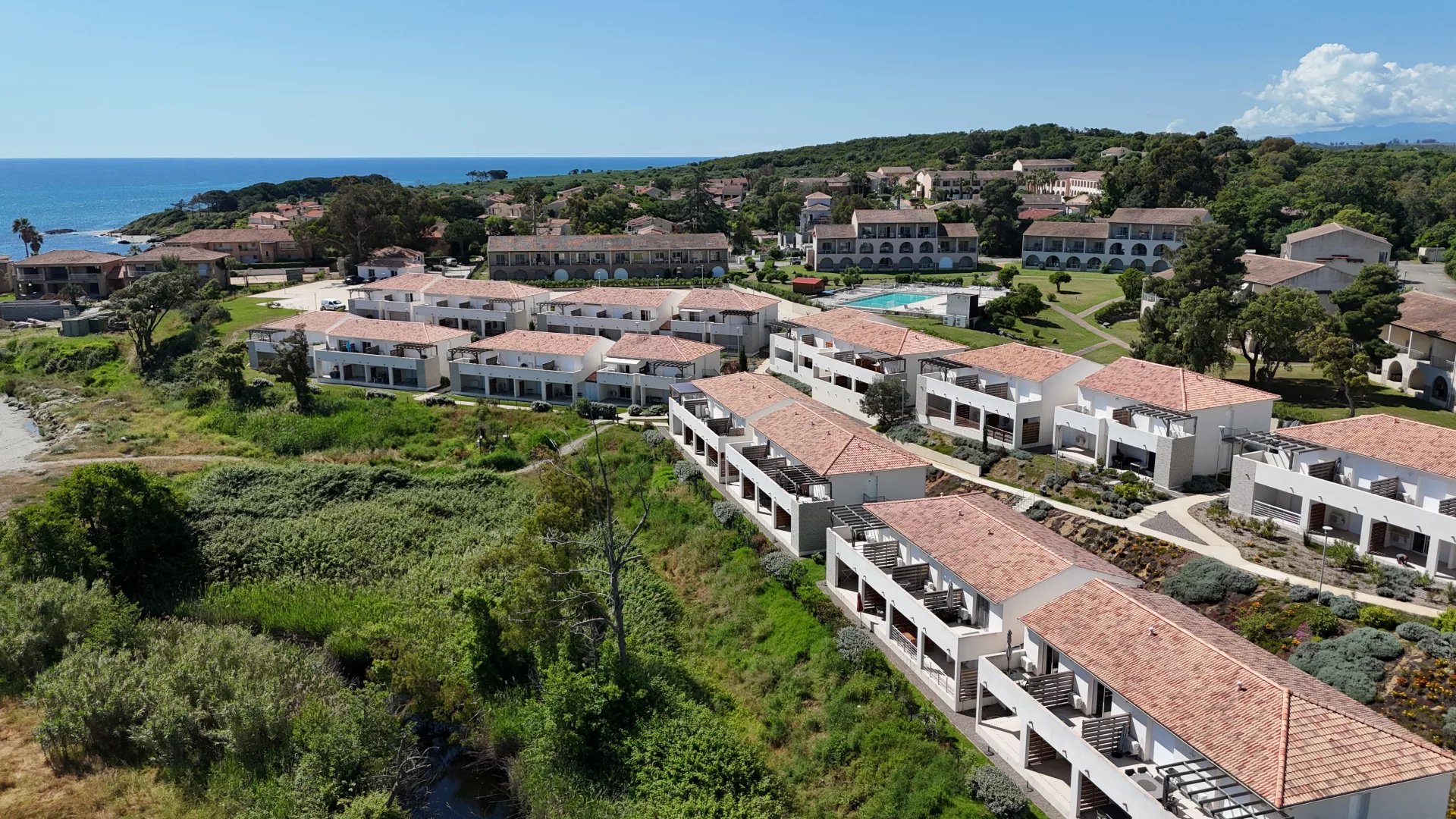 Exclusivité de vente Marine de Bravone. Très bel Appartement pleine vue mer, de Type T2 bord de plage. Une entrée, un coin repas et sa cuisine équipée, un salon et sa terrasse de 10 m², un cellier, une salle de douche, un wc, une chambre avec placard. Résidence sécurisée par un portail, Piscine et parking privé, plage à pied 100 m. Logement en excellent état, meublé, climatisé situé au 1er et dernier étage.