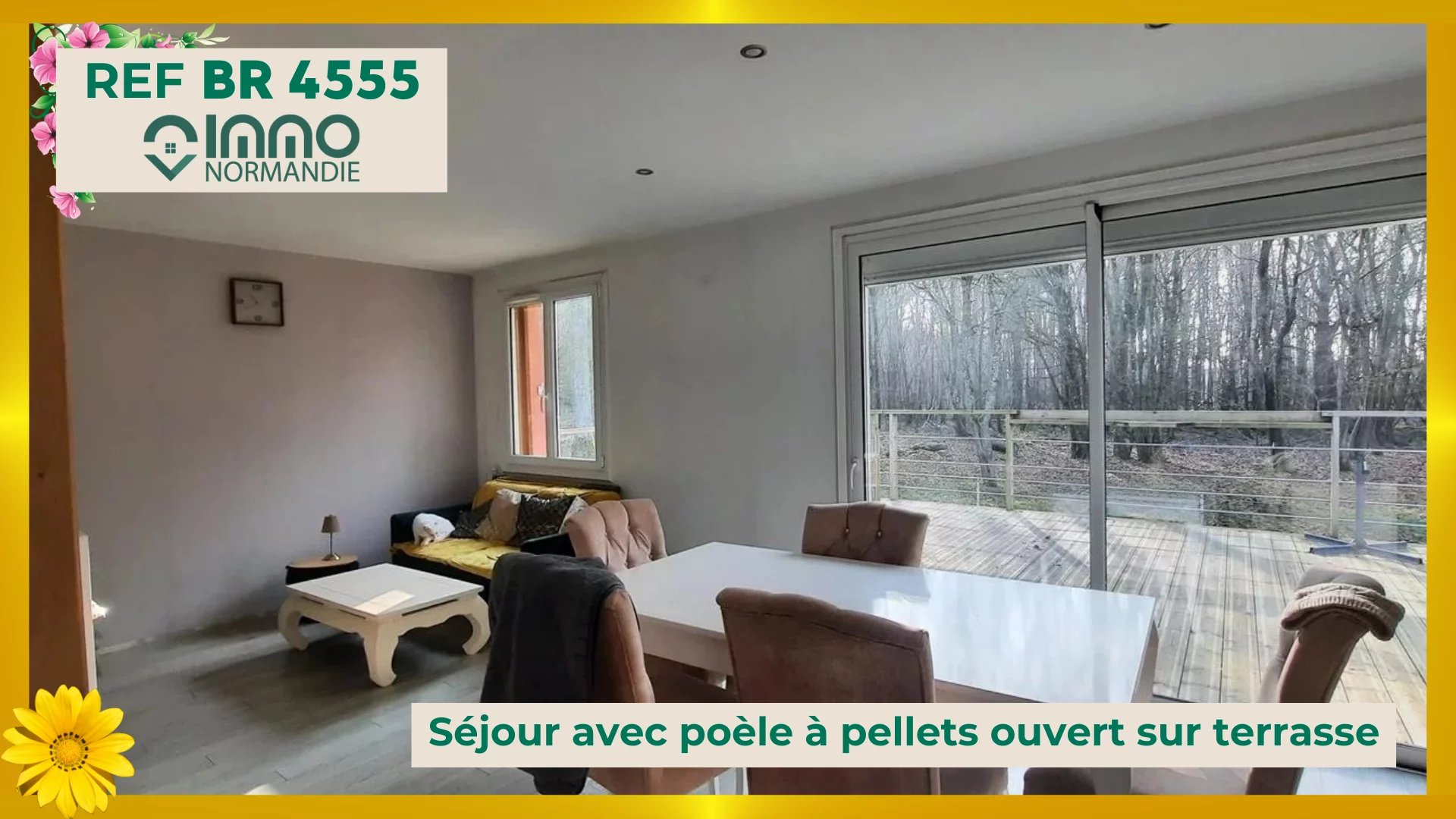 Dans la campagne de Bernay (17 minutes). Pour amoureux de la nature avec commerces et commodités à proximité. Nichée dans un cadre boisé, cette maison chaleureuse construite sur sous-sol complet vous propose de plain-pied : - Une entrée - Un séjour avec poêle à pellets (granulés) - Une cuisine ouverte - Une belle terrasse à niveau de 30 m² - 4 chambres - Une salle de bain - toilettes séparées - Accès au sous-sol par l'intérieur - Plusieurs bâtiments sur le terrain A l'abris des regards - Calme et tranquillité Contact : Nathalie ROMUALD - 06.87.05.20.63 - entrepreneuse individuelle ( E.I) agissant en sa qualité d'agent commercial inscrite au Registre Spécial des Agents Commerciaux, sous le numéro RSAC 804 802 353 00016