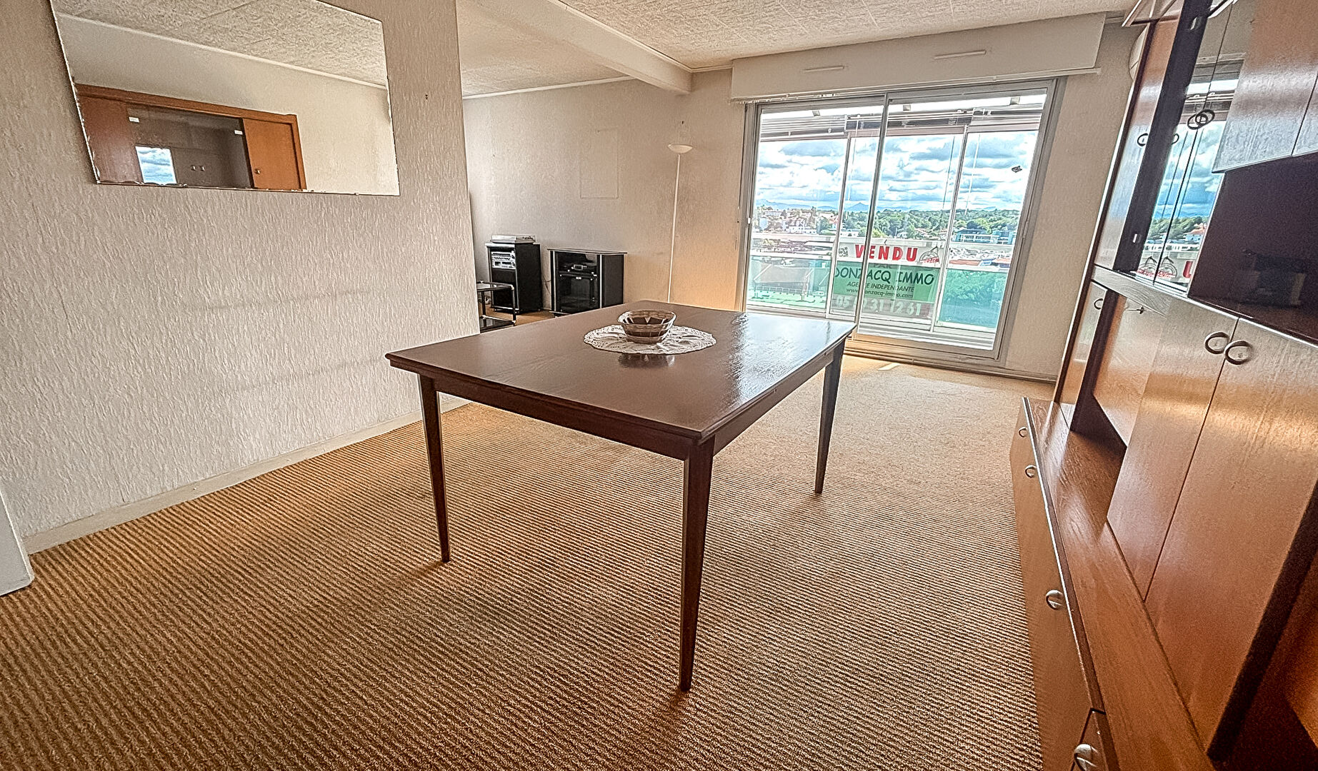Anglet BAB², Exclusivité Donzacq Immo A la résidence Dous-Bos, idéalement située, avec vue panoramique et à deux pas de toutes les commodités, commerces et ligne Tram'bus, découvrez ce joli T4 de 101 m² habitables (88,79 m² Loi Carrez), composé de 2 chambres et d'un double séjour avec possibilité de créer une 3ème chambre. L'appartement se situe au 6 ème et dernier étage d'une résidence bien entretenue datant de 1979. Résidence sécurisée très prochainement par une barrière. Ce bien rare, offrant une vue imprenable sur les montagnes du Pays basque, se compose de : Une entrée spacieuse avec placard, Deux chambres exposées à l'est, Un double séjour lumineux de 33 m² exposé plein sud, prolongé par une terrasse de 4 m² (possibilité de créer une 3 ème chambre), Une cuisine indépendante équipée de 13 m² avec cellier attenant, Une loggia de 8 m² avec vue sur la cathédrale de Bayonne, Une salle d'eau rénovée, un WC séparé et un dressing de 2,60 m². En complément : Une cave en rez-de-chaussée de 3,58 m², Possibilité d'acquérir un garage en supplément (17 m²). Atouts supplémentaires : Ravalement de façade récent, Charges annuelles : 1 688 euros, DPE : classe D, Honoraires de 3,64 % à la charge de l'acquéreur. Vidéo disponible sur simple demande à l'agence. Un bien rare au dernier étage, bénéficiant d'un emplacement privilégié, proche de toutes commodités. Un rafraîchissement permettra de créer un intérieur à votre image. A visiter sans tarder ! (3.64 % honoraires TTC à la charge de l'acquéreur.)