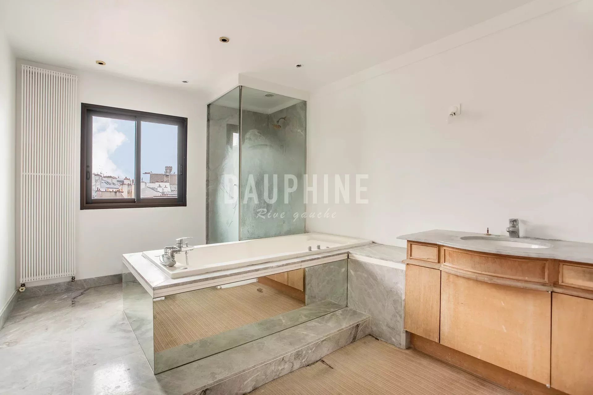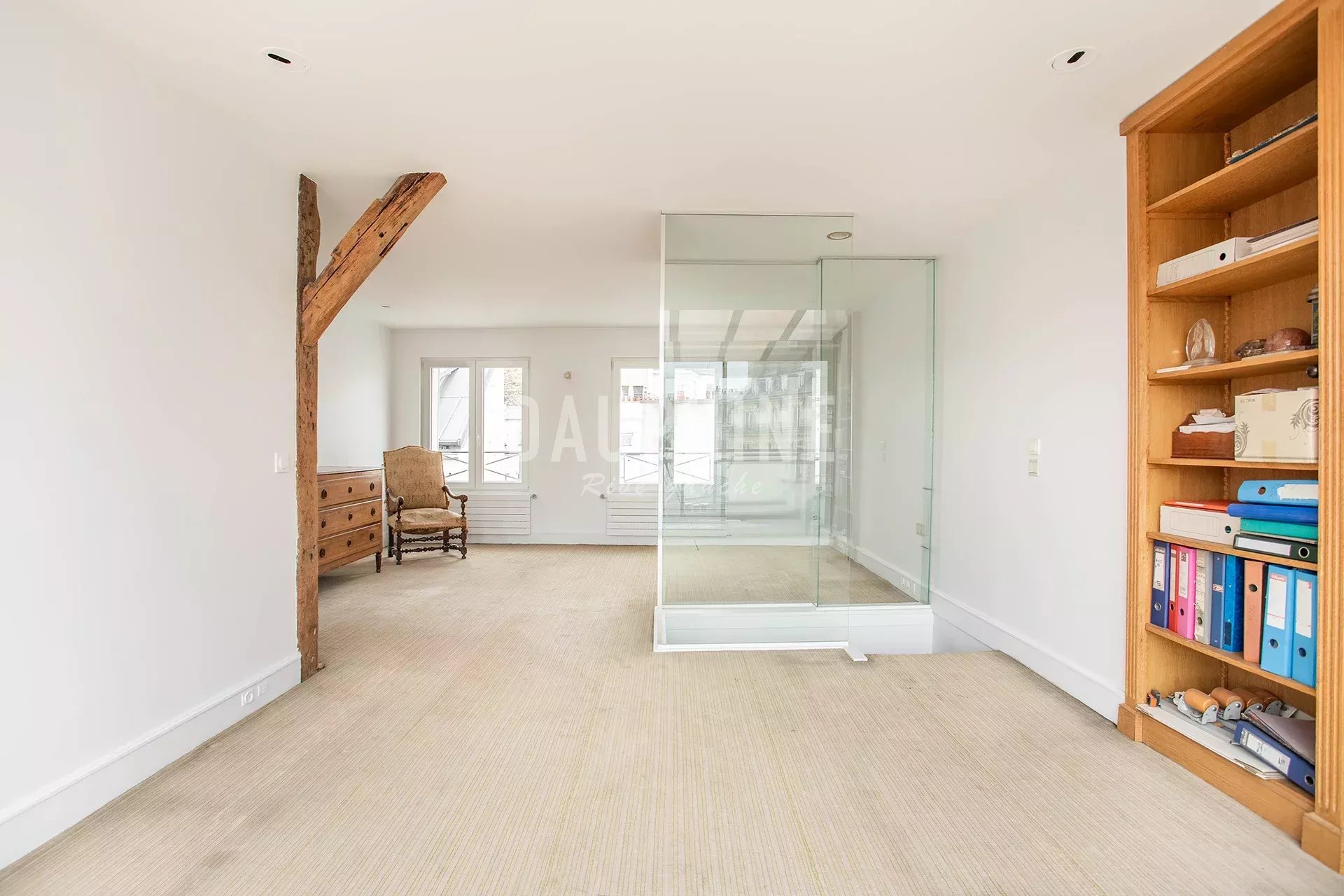 Découvrez ce somptueux triplex situé dans le prestigieux quartier de Saint-Thomas-d'Aquin, au cœur du 7ème arrondissement de Paris. Alliant charme classique et confort moderne, cet espace de vie de 245,59 m² offre un cadre de vie exceptionnel grâce à son côté atypique. Composé de cinq chambres spacieuses et de trois pièces de réception, cet appartement répondra parfaitement aux besoins d'une grande famille ou à ceux qui aiment recevoir. La pièce de vie principale est baignée de lumière naturelle et la véranda bénéficie de vues imprenables sur le quartier. L'agencement intelligent assure une circulation fluide entre les espaces conviviaux et ceux plus intimes. L'immeuble bénéficie également de commodités modernes telles qu'un ascenseur privé s'ouvrant directement sur le triplex pour un accès privilégié, ainsi qu'une climatisation intégrée pour un confort optimal toute l'année. Ce bien rare sur le marché parisien incarne le mariage parfait entre le cachet de l'ancien et le confort du contemporain, idéalement situé à proximité des commodités locales et des attractions culturelles.