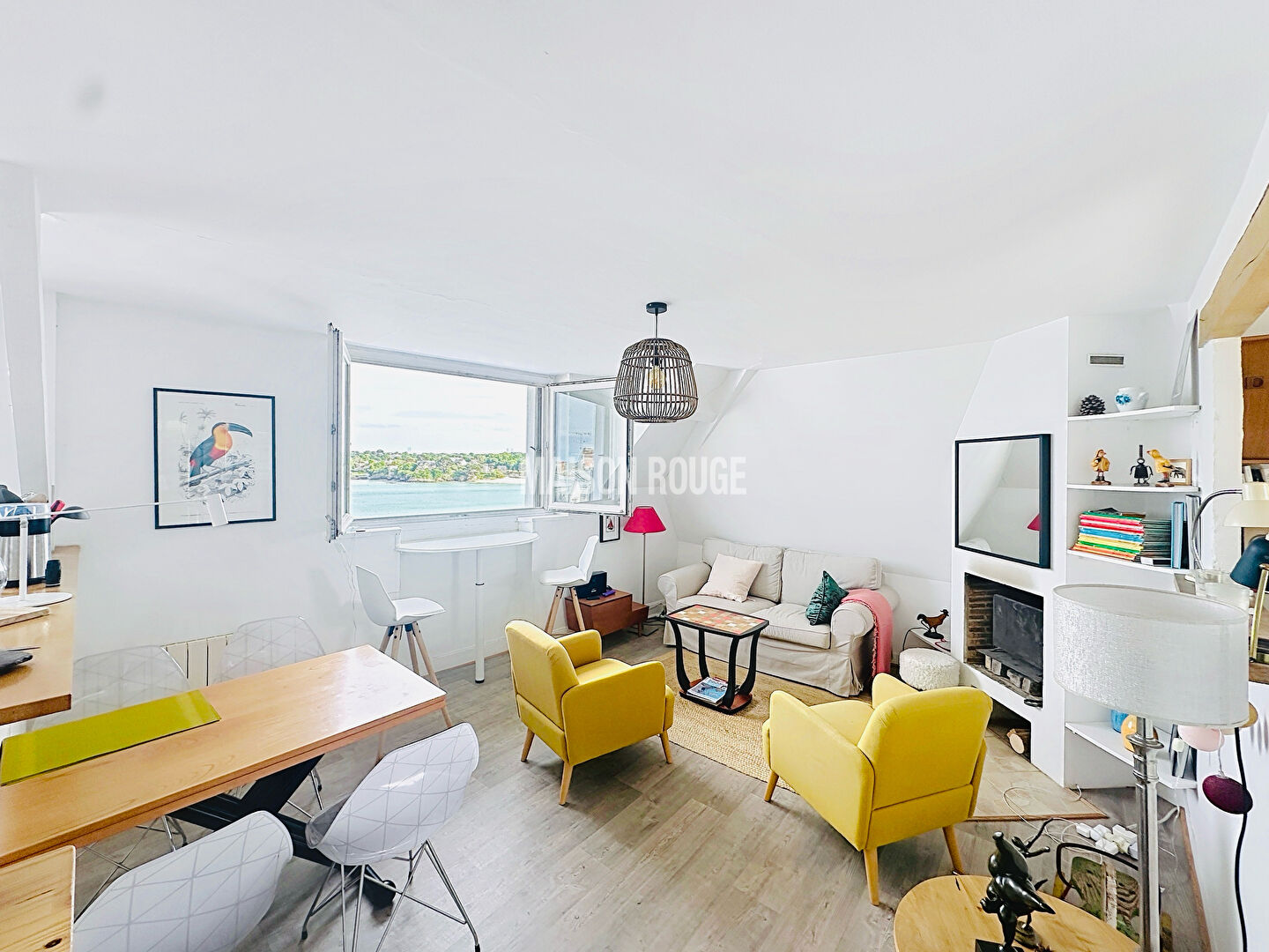 VUE MER - BALADE DE CLAIR DE LUNE - Appartement type 5 comprenant un hall d'entrée, une cuisine, un salon/séjour avec cheminée fonctionnelle (RARE !), deux chambres, un bureau, une salle de bain, une salle d'eau et un WC. A l'étage : un palier, deux pièces de couchage (hauteur inférieure à 1.80m). Une cave en sous-sol. Prix FAI : 555 440 euros dont 4.80 % honoraires TTC à la charge de l'acquéreur. Copropriété de 11 lots - dont 5 lots habitation. (Pas de procédure en cours). Charges annuelles : 220 euros. Gérald BAGOT (EI) Agent Commercial - Numéro RSAC : 814844403 - SAINT MALO.