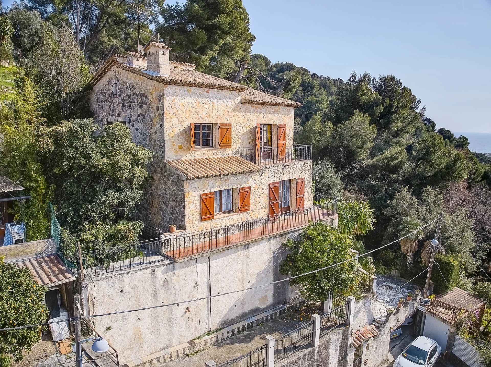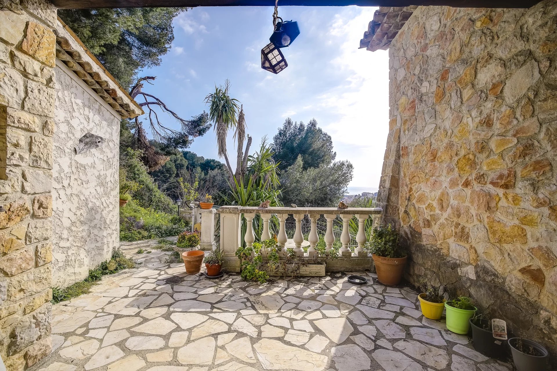 Nice Ouest début Madeleine Je vous propose cette magnifique demeure en pierre véritable sur 2 niveaux 130m2, composée d'un hall, un salon/ salle à manger 37m2 avec sa cheminée, une cuisine indépendante, salle de bain/salle d'eau, 2 toilettes, trois chambres, un bureau, une dépendance de 12m2. Sur une parcelle de 600m2 avec espaces verts et arbres fruitiers, plusieurs terrasses, des balcons. Nichée à 15minute du bord de mer, entourée de verdure, au calme complet et vue mer imprenable. A proximité des commerces transports, crèches/maternelles/écoles/collèges/supermarchés. GARAGE fermé 30m2 (2 véhicules) Parfait pour un projet familial ! Bien à rafraichir A visiter et saisir très rapidement