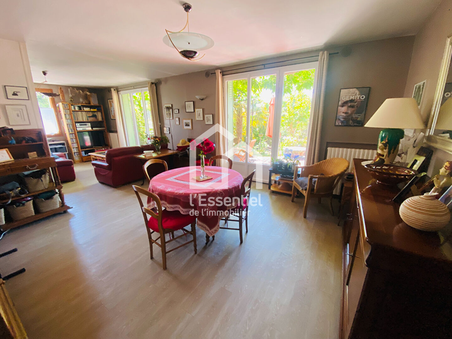 En plein centre-ville, gare, commerces et écoles 3 min à pieds, très bonne construction pour cette maison des années 50 élevée sur sous-sol, belle hauteur sous plafond de 2.60 m. Entrée avec placard de rangement, agréable séjour de 40 m² donnant sur terrasse et jardin exposés plein sud sans vis-à-vis (vigne, cerisier), cuisine équipée, un wc; A l'étage, trois belles chambres dont deux jouissant d'un balcon, une avec placard de rangement, l'autre avec dressing et sa salle d'eau privative créée récemment (douche à l'italienne) , une salle de bains refaite récemment ,water closet séparé wc . Menuiserie double vitrage aluminium, chaudière à condensation gaz de ville. Deux garages dont un avec porte séquentielle motorisée complètent ce bien d'exception . De beaux volumes, un agréable jardin.. Une qualité de vie à ne pas manquer !