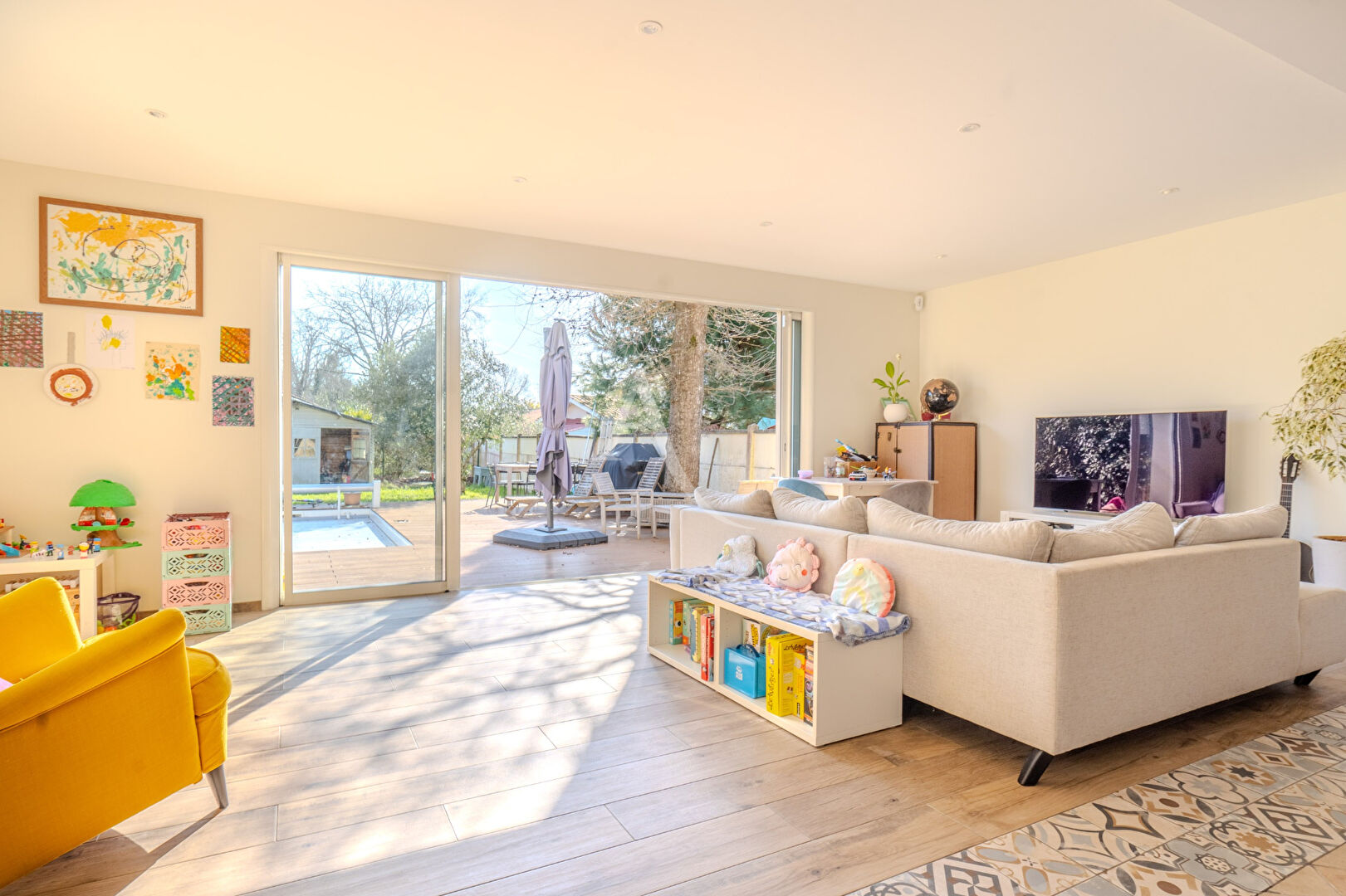 PESSAC ALOUETTE - A proximité des lignes de bus 4 et 77 et à 4min en voiture de la ligne de Tram B - Maison de ville contemporaine d'environ 130m² composée en rez-de-chaussée d'un grand séjour double avec cuisine ouverte équipée et aménagée - grande baie vitrée ouvrant sur le jardin sans vis à vis - une chambre - buanderie - WC; à l'étage, trois chambres dont une suite parentale avec sa salle d'eau, une salle de bains indépendante - le tout sur un jardin aménagé avec piscine et abri de jardin. Maison lumineuse et en bon état général. Vous pouvez contacter l'agence au 05.56.33.11.33. (4.13 % honoraires TTC à la charge de l'acquéreur.)