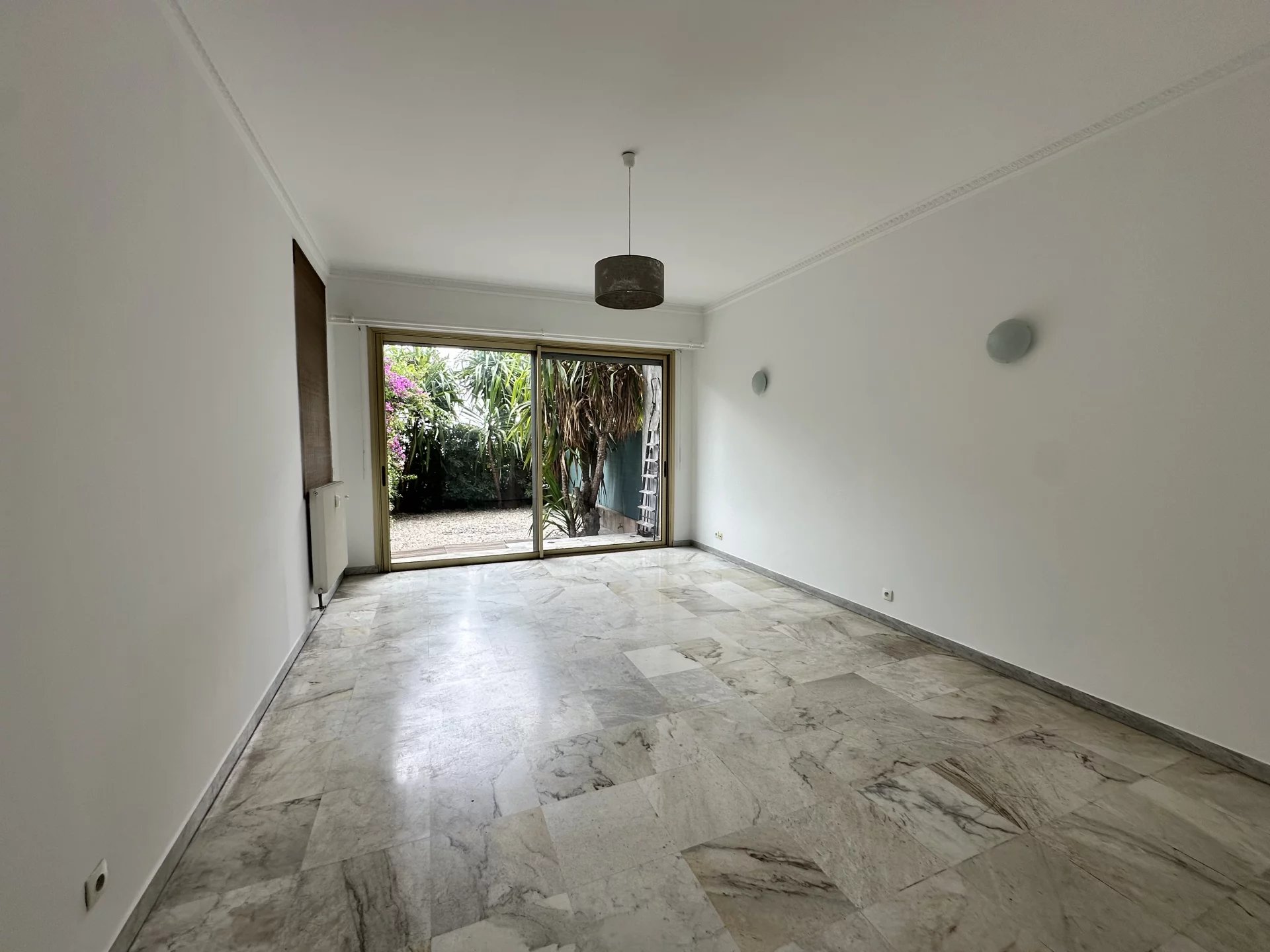 PROMENADE DES ANGLAIS. Très beau et grand studio, lumineux, en RDJ d'une superficie de 47 m2. Ce studio en très bon état se compose d'une grande pièce à vivre attenante à une cuisine semi-ouverte équipée et d'une salle de bain/wc. Cet appartement dispose également d'un magnifique jardinet / terrasse de 25m2 environ face à la mer.