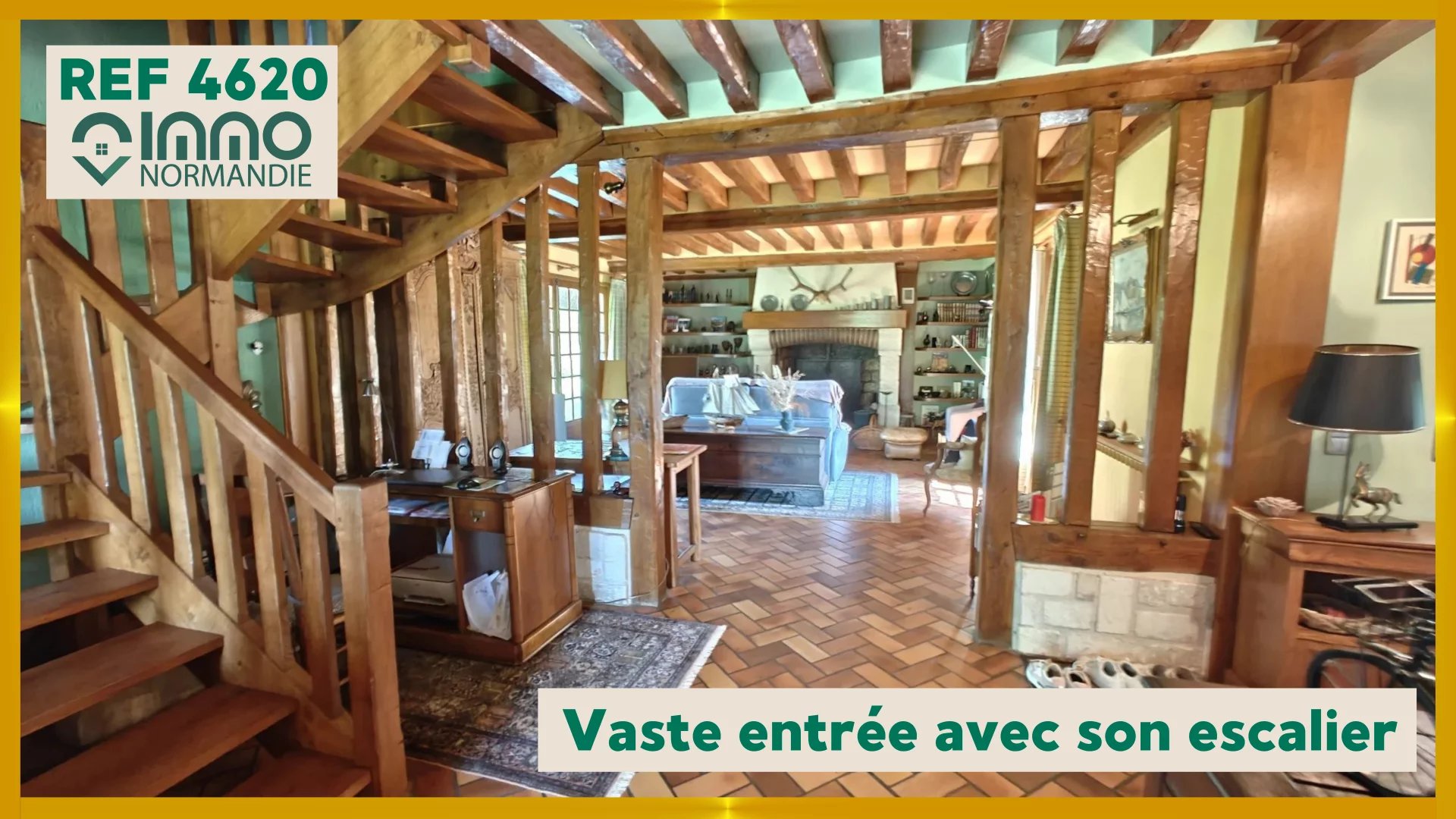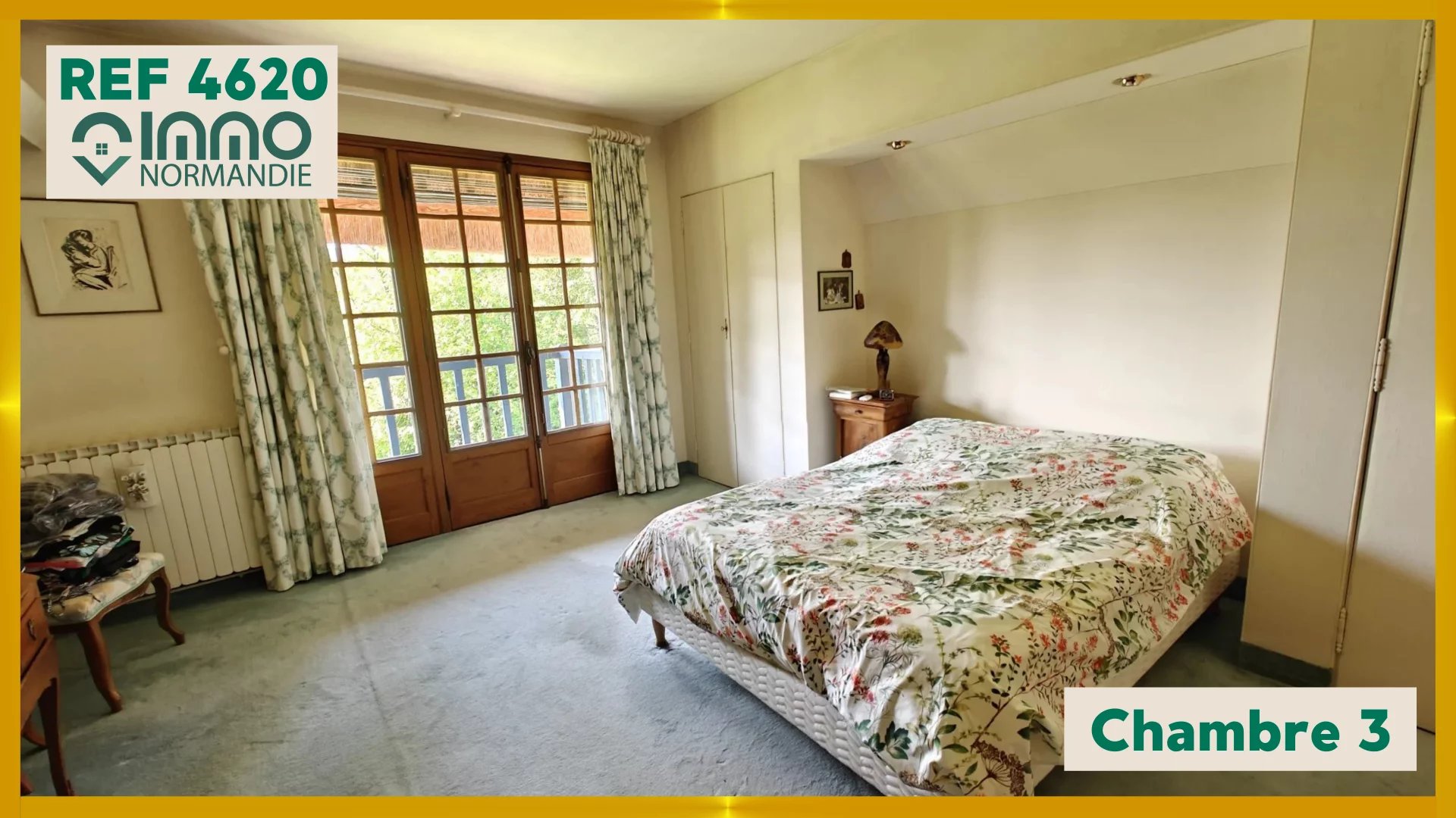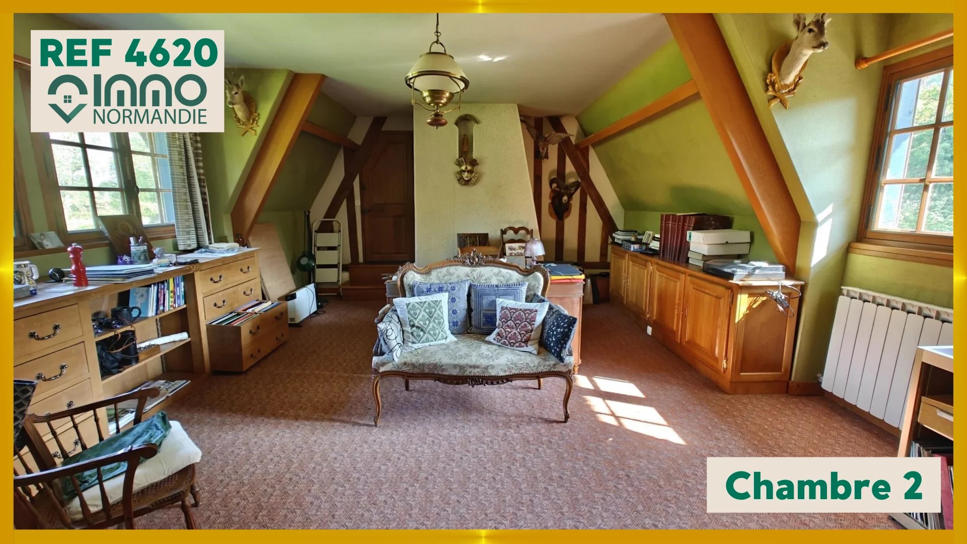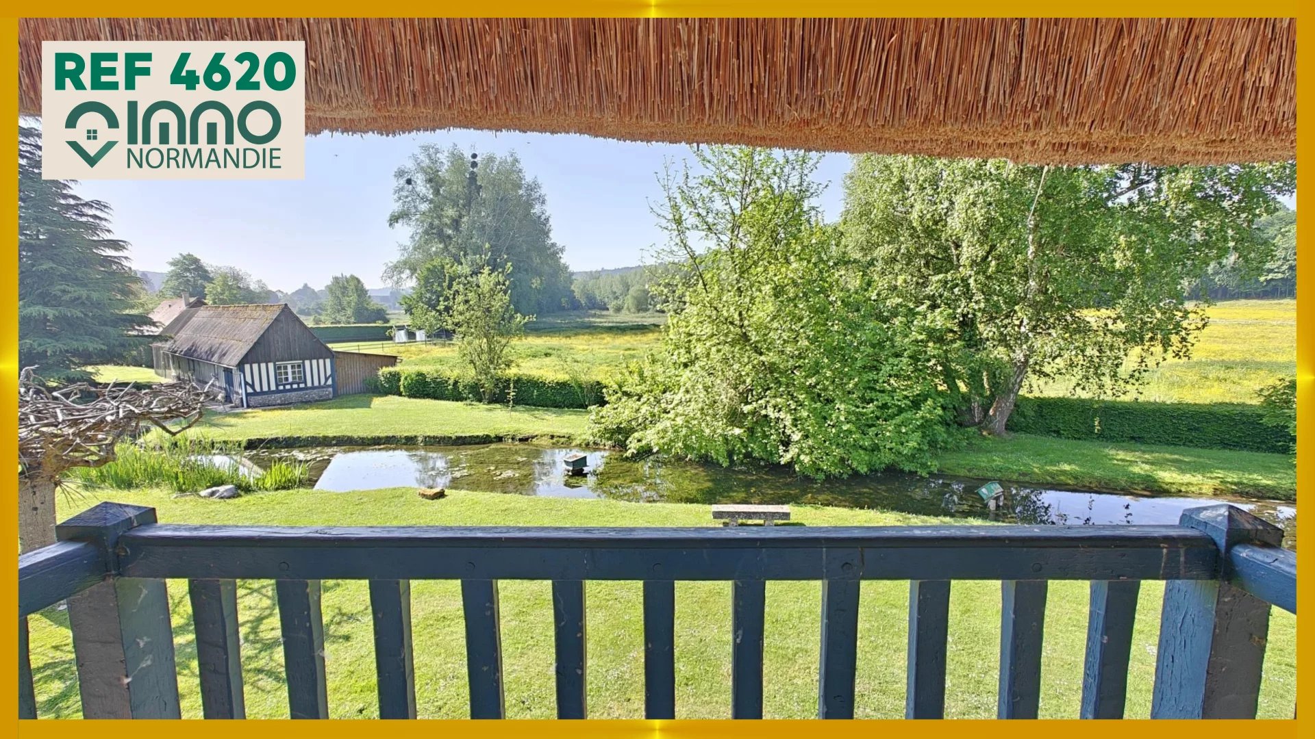 Chaumière Normande de 1972 au Bec Hellouin au cadre champêtre avec un beau panorama sur la vallée de la Risle et la Tour Saint-Nicolas de l'Abbaye. Au rez-de-chaussée : vaste entrée avec son escalier, salle à manger donnant sur une belle vue du parc arboré, séjour avec cheminée à foyer ouvert Normande offrant un espace de vie de 70m² environs, cuisine, arrière cuisine, WC séparé avec lave mains, chaufferie avec chaudière de 2023. A l'étage, palier qui va desservir 2 chambres, un bureau, salle de bains, WC séparé et une suite parentale avec salle de douche et WC. Terrain de presque 8.000m² avec point d'eau. Grande dépendance avec électricité à usage de rangement/atelier au beau potentiel. Survitrage bois, tout à l'égout récent, chauffage gaz propane.
